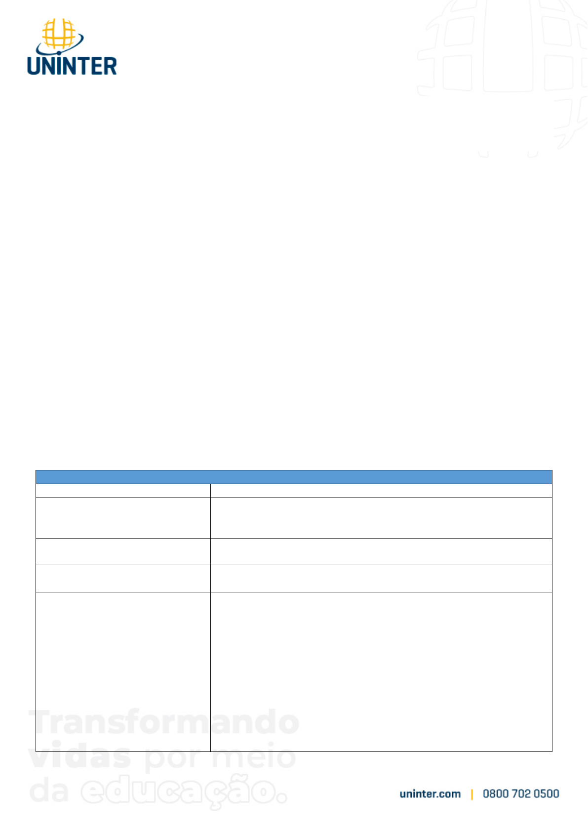PÓS-GRADUAÇÃO LATO SENSU PLANO DE ENSINO Disciplina: INTELIGÊNCIA PSICOMOTORA: A COMPREENSÃO DA RELAÇÃO CORPO/MENTE NA APRENDIZAGEM Carga Horária: 30 horas Professor responsável: Marcos Aurélio Iubel Ementa: Introdução sobre a relação corpo/mente. Funções motoras e processo cognitivo: o que o movimento revela sobre a aprendizagem. Dificuldades motoras e sua relação com a aprendizagem. Controle motor. Desenvolvimento infantil. Oficinas práticas. Bibliografia Básica BACIL, E. D. A.; MAZZARDO, O.; SILVA, M. P. Crescimento e desenvolvimento motor. Curitiba: Intersaberes, 2020. FONSECA, Vitor da. Desenvolvimento psicomotor e aprendizagem. Artmed, edição digital. 2009. GÓES, S. M. Controle e aprendizagem motora: introdução aos processos dinâmicos de aquisição de habilidades motoras. Curitiba: Intersaberes, 2020. Bibliografia Complementar ARANHA Go; SHOLL-FRANCO, Alfred. Caminhos da Neuroeducação. 2a. Ed. Rio de Janeiro: Ciências e Cognição. 2012. CÂMARA, S. A. S. (Organizadora). Psicomotricidade e trabalho corporal. São Paulo: Pearson Education do Brasil, 2016. CASTRO, A. Jogos e brincadeiras para Educação Física: desenvolvendo a agilidade, a coordenação, o relaxamento, a resistência, a velocidade e a força. 2. ed. Petrópolis, RJ: Vozes, 2014. MARINHO, H.R.B. Pedagogia do Movimento: Universo lúdico e psicomotricidade. Curitiba: Intersaberes, 2012. VIRGILIO, S. J. Educando crianças para a aptidão física: uma abordagem multidisciplinar. 2. ed. Barueri, SP: Manole, 2015. AVALIAÇÃO PROCEDIMENTOS CRITÉRIOS 1. Atividade Pedagógica online. (peso 4) Atividade online: realizada individualmente, com ou sem a presença do orientador educacional. Para realizar a atividade, acesse o LINK AVALIAÇÕES na página da disciplina. 2. Participação nos fóruns. Fórum para discussão de assuntos referentes à disciplina. Momento de interação entre os alunos de participação facultativa. 3. Tutoria. Entre em contato sempre que precisar para esclarecer dúvidas ou fazer solicitações através do link Tutoria. 4. Prova objetiva online em polo presencial. (peso 6) Realizada individualmente, com a presença do orientador educacional no polo de apoio presencial e sem consulta. Realização através do aplicativo instalado no computador do polo. Verifique o cronograma na página inicial do UNIVIRTUS. Instruções importantes: •A avaliação contém 10 questões objetivas, escolhidas pelo sistema randomicamente; •Confira se assinalou todas as questões; •Para cada questão, escolha somente uma das alternativas de resposta; •Você deverá concluir a avaliação em 1 (uma) hora; •O seu gabarito será disponibilizado logo após o término do prazo para realização desta avaliação.