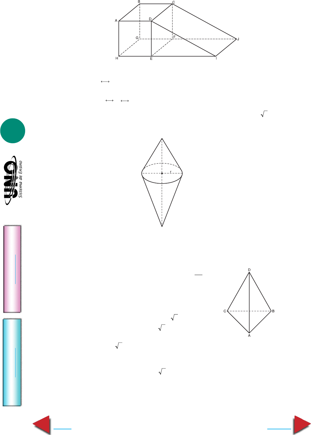d) ( ) Se DC = DE = a e EI = 2a, a área total do prisma C, D, E, F, J, I é a2 (5 + 5 ).
