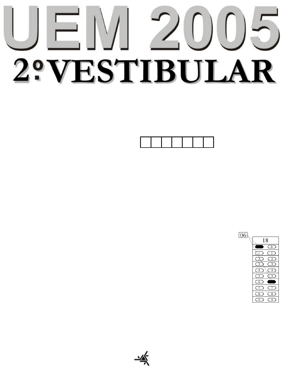 GABARITO 1 PROVA 1 GEOGRAFIA E HISTÓ RIA N.o DE INSCRIÇÃO: - NOME:______________________________________________________________ INSTRUÇÕES PARA A REALIZAÇÃO DA PROVA 1. Verifique se este caderno contém 30 questões e/ou qualquer tipo de defeito. Qualquer problema, avise, imediatamente, o fiscal. 2. Verifique se o número do gabarito deste caderno corresponde ao constante da etiqueta fixada em sua carteira. Se houver divergência, avise, imediatamente, o fiscal. 3. Sobre a folha de respostas. · Confira os seguintes dados: nome do candidato, número de inscrição, número da prova e número do gabarito. · Assine no local apropriado. · Preencha-a, cuidadosamente, com caneta esferográfica azul escuro, escrita grossa (tipo Bic cristal), pois a mesma não será substituída em caso de erro ou de rasura. · Para cada questão, preencha sempre dois alvéolos: um na coluna das dezenas e um na coluna das unidades, conforme exemplo ao lado: questão 18, resposta 06. 4. No tempo destinado a esta prova (4 horas), está incluído o de preenchimento da folha de respostas. 5. Transcreva as respostas somente na folha de respostas. 6. Ao término da prova, levante o braço e aguarde atendimento. Entregue este caderno, a folha de respostas e o caderno de Redação ao fiscal. UEM Comissão Central do Vestibular Unificado 2 UEM/CVU 2.º Vestibular/2005 – Prova 1 GABARITO 1 GEOGRAFIA 01 – Assinale o que for correto sobre as políticas de regionalização e de desenvolvimento regional, no Brasil. 01) A primeira divisão regional oficial do Brasil baseava-se no conceito de região natural, isto é, os elementos naturais como os climas, os solos e a vegetação serviram de base para a divisão do território em regiões. 02) No processo de desmembramento do estado de Goiás, foi criado o estado do Tocantins, que passou a pertencer à região Nordeste do Brasil, levando-se em conta, principalmente, os aspectos populacionais e geoeconômicos. 04) A região Centro-Sul, definida segundo critérios geoeconômicos, constitui o centro econômico do país, com o maior parque industrial e a atividade agropecuária mais desenvolvida. Porém destaca- se, também, por graves problemas sociais e ambientais como a falta de moradias, a criminalidade, o desemprego, o subemprego e a poluição ambiental. 08) A criação da Sudam, da Sudene, da Sudeco e da Sudesul, superintendências respectivamente associadas ao desenvolvimento da Amazônia, do Nordeste, do Centro-Oeste e do Sul, não foi suficiente para anular as disparidades regionais brasileiras que ainda persistem. 16) A Sudene teve um papel fundamental no desenvolvimento da agricultura e da pecuária no sertão nordestino, mas não interferiu no planejamento industrial do Nordeste. 32) Muitas empresas da Amazônia pertencem a empresários ou a grupos econômicos sediados no Centro-Sul, onde estão, também, os principais mercados regionais consumidores dos produtos fabricados no Norte do Brasil. O baixo poder aquisitivo de grande parte da população da Amazônia é um dos entraves à comercialização da produção industrial na região. 64) A Sudam implantou, na década de 1960, um programa de desenvolvimento regional inovador, que se baseava na proteção ambiental, no extrativismo organizado e no respeito à população indígena. 02 – Sobre a região Nordeste do Brasil e suas sub- regiões, assinale o que for correto. 01) A Zona da Mata corresponde a uma estreita faixa, originalmente coberta pela Mata Atlântica. O desmatamento da área começou com a extração de pau-brasil, continuou com o cultivo de cana-de-açúcar, de tabaco e de cacau. Atualmente restam apenas alguns pequenos trechos de áreas preservadas. 02) O Meio-Norte, zona de transição entre o Nordeste e a Amazônia, é, na atualidade, a sub- região mais populosa do Nordeste. Na economia, destacam-se os cultivos da cana-de- açúcar, do algodão e de cereais. 04) A caatinga é a vegetação característica do sertão nordestino. Adaptada ao clima tropical típico, é caracterizada pela associação de formações vegetais diferentes: pequenas árvores retorcidas e arbustos em seu estrato superior misturam-se à vegetação rala e rasteira composta de gramíneas em seu estrato inferior. 08) No vale do rio São Francisco, vêm sendo implantados, com sucesso, alguns projetos agropecuários que estão se destacando pela fruticultura irrigada, com produção intensiva de melões, mamões, cítricos e uvas, entre outros. 16) A "indústria da seca" é como ficou conhecida a vergonhosa prática desenvolvida por políticos e por grandes fazendeiros de obter lucros e vantagens pessoais com as secas, que periodicamente assolam a região, e com o sofrimento de milhões de sertanejos pobres. 32) O turismo é uma atividade econômica que vem crescendo muito em vários lugares do Nordeste. No litoral, em especial, a beleza e o clima das praias atraem turistas de outras regiões do Brasil e do exterior ao longo de todos os meses do ano, já que as temperaturas se mantêm sempre elevadas. GABARITO 1 UEM/CVU2.º Vestibular/2005 – Prova 1 3 03 – A respeito da geografia da Europa Oriental, assinale o que for correto. 01) A federação russa agrega, em seu território, inúmeras etnias. Essa diversidade, aliada às dificuldades econômicas do país, tem favorecido a ocorrência de conflitos separatistas. Entre esses conflitos, destaca-se o da Chechênia, república autônoma situada na região do Cáucaso. 02) As maiores concentrações industriais da Europa Oriental ocorrem nas proximidades dos grandes centros urbanos, como Moscou e São Petersburgo, e das fontes de minérios e de recursos energéticos, como os montes Urais (Rússia) e Donbass (Ucrânia). 04) A principal área agrícola da Europa Oriental localiza-se no domínio das estepes da Ucrânia e da Rússia. Aí se encontram os solos mais férteis de toda a região, as chamadas terras negras (tchernozion), e também as mais importantes produ