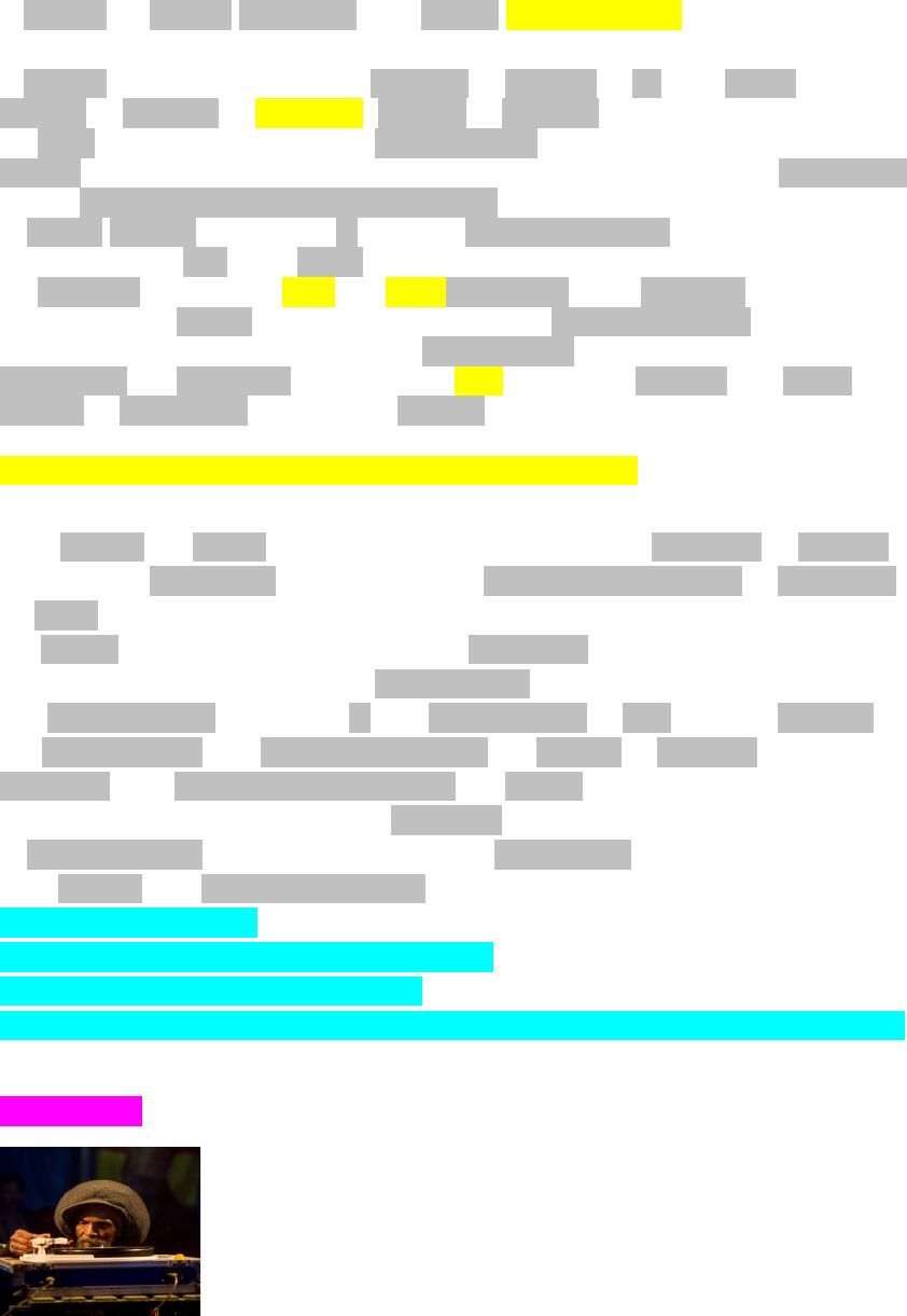 Textos a ser explanado : A história da Música jamaicana e da cultura Sound System. A história da Musica Jamaicana começa na década de 40, nas áreas mais pobres da Cidade de Kingston - Capital da Jamaica. As ruas foram preenchidas, por batidas fortes e graves amplificados, com caixas de alto falantes empilhados formando um sistema de som, o surgimento de um fenômeno genuinamente Jamaicano. O Sound System, nada mais é que uma Discoteca movel , os encontros aconteciam na rua e nos bares. As músicas tocadas era R&B e o Jazz Americano...que chegava através das frequências de Rádio na ilha. Eram tocadas em espaços públicos, democratizando o acesso ao laser , rapidamente tornou-se um meio da população que não tinha fácil acesso a Lps , entrar em contato com novos artistas, e diferentes vertentes do reggae como: Mento, Ska, Rocksteady, Roots, o Dub e o Dancehall São alguns dos estilos que fazem parte do processo de evolução do Reggae. virando uma alternativa para aqueles que não tinham condições de frequentar as festa em clubes fechados. Na época o aparato era formado por um caminhão ou furgão , equipado por um gerador elétrico, um toca disco e auto falantes. Um Sound System a princípio é uma aparelhagem de som, mas na Jamaica, ele nasceu como uma celebração popular nos guetos de Kingston, na qual divulgava-se a cultura Reggae proibida nas rádios e protestava-se contra o sistema colonial inglês, violento e opressivo. O Sound System possui as suas raízes na coletividade, onde para se formar uma equipe , era necessário alguém para trocar ou selecionar os discos , o (Seletor ou Selecta), o operador tecno de frequências (operator) o apresentador cantor o (Toaster DJ) E lógico também os Box Boy, que carregavam e empilhavam as caixas de som. VEJA FOTO (Seletor - Selecta) VEJA FOTO (Operator) Tecno operador de frequências... VEJA FOTO (Toster DJ) Cantor VEJA FOTO (Os Box Boy) carregadores de caixas -Alguns dos Sound System que ficaram mais conhecidos temos: VEJA FOTO * Coxsone Dodd do Famoso (Studio One) VEJA FOTO * Duke Reid (Trojan) VEJA FOTO (imagem do sistema de som) VEJA FOTO (imagem do Furgão com sistema de som) - imagem dos Ptodutores * Coxsone Dodd do Famoso (Studio One) Duke Reid (Trojan) Ska Foi a primeira Revolucao musical Jamaicana, após 300 anos de colonização Britânica na Jamaica. A trilha sonora dessa Liberdade, recém descoberta, foi a primeira Música realmente Jamaicana o Ska, naquela época era como se fosse um palavrão. O Ska antecipou a independência através da música, e logo após sucedeu a independência Jamaicana. E o povo queriam ouvir e compra Disco de Ska, que antes só se ouvia no Sound System , após a independência Jamaicana, foi a era dourada do Ska , não que os artistas eram bem remunerados, e que para sobreviver os músicos mais talentosos, migravam para Inglaterra se juntando a grande população caribenha que só crescia na Inglaterra. Os produtores Jamaicanos viram uma grande oportunidade de lucrar com esse novo mercado musical. Conforme o crescimento e evolução da música Jamaicana, os antigos donos de Bares ,se tornaram donos dos Sound System e posteriormente donos das gravadoras. Que contratavam os Músicos dos hotéis, da Cidade pra gravar seus Discos que eram exclusivos. Eles não tinham a intenção de vendê-los. Os musicos bem que tentavam copiar fazer igual, aos Americanos mais não ficava, então resolveram adotar o que saia como a musica própria deles foi aí que nasceu o Ska. VEJA FOTO Skatalaites maior grupo Jaicano de SKA, , formada em 1964... Obs: Tocar vinil de SKa Rocksteady Enquanto os Ricos da Jamaica e o resto do Mundo, aceitavam fervorosamente o Ska. Nas áreas mais pobres da Jamaica a musica , e o humor, estava mudando. O SKA era uma música pra cima, ela expressava como era o ânimo das pessoas , o povo percebeu que com a independência , não eram realmente independentes , a musica desacelerou, queriam agora dançar parado e observar mais o que estava acontecendo. Com o aumento da violência a parte pobre de Kingston era uma terra sem lei. A era dos chamados rude Boys, gangster, marginais que aterrorizavam o país e causavam nas festas e Bailes chegavam quebrando garrafas e pedindo música. Diante de um cenário cada vez mais quente e pesado na parte pobre de Kingston, Surgem as velhas canções românticas o (Loving song ) isso era o "Rock Steady," a primeira Música popular da Jamaica, a era dourada dos cantores Jamaicanos, para muitos a fase mais gloriosa da música jamaicana. A batida do Rocksteady era mais fácil para dançar, o SKA era muito Rápido, vc tinha que girar a dança de maneira muito agitada. Então o que fizeram, na época a maioria das músicas tinha a mesma linha de Baixo. O Baixista não tinha tempo para trabalhar mais a melodia, o que fizeram foi acalmar um pouco, para que o Baixista pudesse mexer mais os dedos e fazer uma linha melódica. Foi aí que começaram a surgi as linhas de Baixo do Reggae. Obs: Tocar um Rocksteady Roots Entre os principais nomes da história do Reggae Roots estão: Bob Marley, Peter Tosh, Jimmy Cliff, e Jacob Müller. Esses artistas contribuíram para a universalização do estilo musical jamaicano. O Reggae tinha uma Diferença na Bateria e mudou o padrão do Baixo. Se a música e ainda mais Devagar, isso faz com que ela pareça ser rápida. foi o que mudou do Reggae para o Rock Steady. O Reggae estava por toda parte, com dezenas de studios a competição saturou os produtores Jamaicanos, que precisavam de um outro mercado para sua música. Então o Roots , não era tão interessante para os produtores que queriam lucrar naquele momento. No final dos Anos 60 , tudo estava Diferente, Bob Marley com sua música que clamava por Paz , Justiça e a redenção dos Negros Africanos e carregava um apelo Religioso muito forte o ainda desconhecido movimento (Rastafari), cujo principal preceito era a Divindade de " Haile Selassie" "Jah Rastafari " Bob
