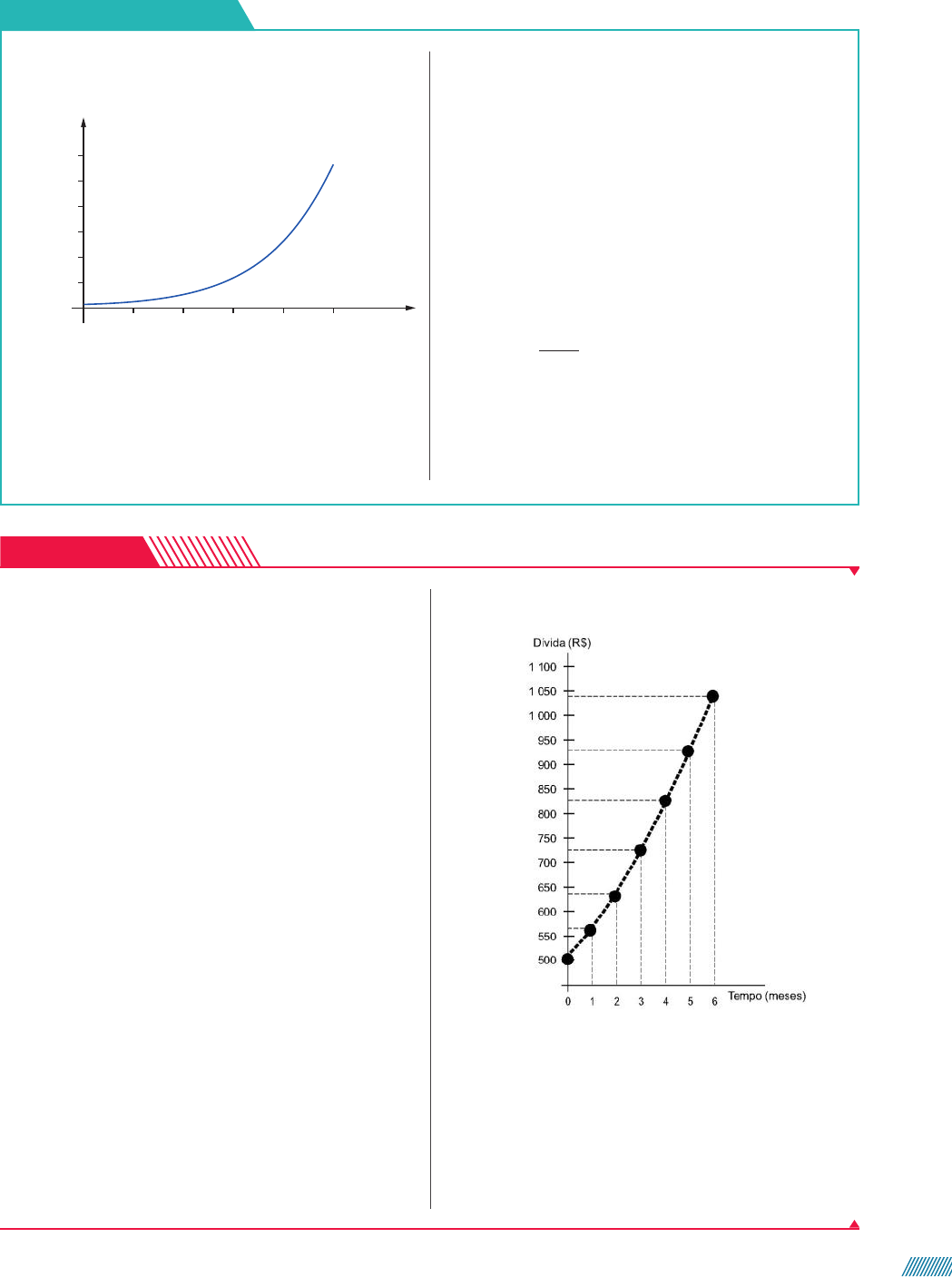 11. O gráfico abaixo mostra, ano a ano, o montante de um capital inicial de R$ 5.000,00 aplicado em certo sistema de juros. M (em reais) t (em anos) 20 4 6 8 10 300 000 250 000 200 000 150 000 100 000 50 000 De acordo com o gráfico, responda: a) Qual foi o sistema de juros utilizado nessa aplica- ção: simples ou compostos? b) Qual será o montante obtido após 6 anos, sa- bendo que após um ano o montante era de R$ 7.500,00? Resolução a) O aumento anual do montante não é constante, o crescimento do montante nessa aplicação é exponencial. Portanto, foi utilizado o sistema de juros compostos nessa aplicação. b) Como o capital que foi aplicado é de R$ 5.000,00 e o montante após um ano era de R$ 7.500,00, temos: M 5 C(1 1 i)1 ~ ~ 7 500 5 5 000 1 5 000i ~ ~ 2 500 5 5 000i ~ ~ i 5 2 500 5 000 5 0,5 Assim, concluímos que a taxa de juros é 0,5. Portanto, após 6 anos o montante será: M 5 5 000(1 1 0,5)6 ~ M 5 5 000(1,5)6 â â 56 953,13 Atividades resolvidas Atividades Não escreva no livro. 74. Considere que uma pessoa, em janeiro de 2020, tenha feito um empréstimo de R$ 12.000,00 em uma institui- ção financeira à taxa de 3% ao mês. Em qual dos sis- temas de juros essa pessoa vai precisar de menos de R$ 17.000,00 para quitar o empréstimo após um ano? Quantos reais serão necessários para quitar a dívida nesse sistema de juros? 75. Um capital de R$ 300,00 foi aplicado a uma taxa de juros de 10% ao ano, durante 4 anos. a) Represente graficamente, no caderno, a evolução ano a ano dessa aplicação nos sistemas de juros simples e de juros compostos. b) Qual é o montante obtido após 2 anos, consideran- do os dois sistemas de juros? c) Ao final dos 4 anos, qual é a diferença, em reais, entre os montantes obtidos, considerando os dois sistemas de juros? 76. (Enem) Um trabalhador possui um cartão de crédito que, em determinado mês, apresenta o saldo devedor a pagar no vencimento do cartão, mas não contém parce- lamentos a acrescentar em futuras faturas. Nesse mes- mo mês, o trabalhador é demitido. Durante o período de desemprego, o trabalhador deixa de utilizar o cartão de crédito e também não tem como pagar as faturas, nem a atual nem as próximas, mesmo sabendo que, a cada mês, incidirão taxas de juros e encargos por conta do não pagamento da dívida. Ao conseguir um novo emprego, já completados 6 meses de não pagamento Juros simples. Serão necessários R$ 16.320,00. Os gráficos encontram-se nas Orientações específicas deste Manual. Juros simples: R$ 360,00. Juros compostos: R$ 363,00. R$ 19,23 das faturas, o trabalhador procura renegociar sua dívida. O gráfico mostra a evolução do saldo devedor. Com base no gráfico, podemos constatar que o saldo devedor inicial, a parcela mensal de juros e a taxa de juros são a) R$ 500,00; constante e inferior a 10% ao mês. b) R$ 560,00; variável e inferior a 10% ao mês. c) R$ 500,00; variável e superior a 10% ao mês. d) R$ 560,00; constante e superior a 10% ao mês. e) R$ 500,00; variável e inferior a 10% ao mês. Alternativa c. W Y M D e s ig n /A rq u iv o d a e d it o ra R e p ro d u ç ã o /E n e m -P P L , 2 0 1 3 . 125 109a133_V6_MATEMATICA_Dante_g21At_Cap2_LA.indd 125109a133_V6_MATEMATICA_Dante_g21At_Cap2_LA.indd 125 18/09/2020 10:4718/09/2020 10:47 Leitura e compreensão Cartão de crédito O cartão de crédito é um cartão que pode ser físico ou virtual. No caso da versão física, geralmente é feita de plástico e pode ou não conter um chip. Cada cartão de crédito possui um limite, ou seja, um valor máximo que se pode gastar e pagar por isso depois. Todas as compras que o consumidor faz com o cartão de crédito são acumuladas para serem pagas mensalmente, em data previa- mente acertada com a empresa de crédito. Essas compras vêm discriminadas no que se chama fatura e o consumidor paga a totali- dade da fatura na data ou apenas uma parte do valor total (conhecida como pagamento mínimo). O que não for pago é passado para a fatura do mês seguinte, acrescido de juros. Os juros cobrados pelos cartões de crédito são um dos mais altos do mercado fi- nanceiro, por isso, pode não compensar passar a dívida para o mês seguinte. O ideal é sempre controlar os gastos e pagar a totalidade da fatura na data certa, todo mês, assim os juros do cartão são evitados. Juro do cartão de crédito cai, mas ainda é 64 vezes maior que a Selic Taxa variou de 293,9% em novembro para 287,1% em dezembro A taxa de juros do cartão de crédito rotativo para o chamado cliente regular, que paga o mínimo de 15% da fatura dentro do prazo regular, variou de 293,9% em novem- bro para 287,1% em dezembro, de acordo com o Banco Central (BC). No ano passado como um todo, a taxa subiu 19,1 pontos. O rotativo é a linha de crédito pré-aprovada no cartão e inclui também saques feitos na função crédito do meio de pagamento. No caso de inadimplência do cliente, o banco deverá parcelar o saldo devedor ou oferecer outra forma para quitar a dívida em condi- ções mais vantajosas dentro de 30 dias. Já a taxa do parcelado do cartão variou de 178,7% para 176%. Para o cliente não re- gular, que não fez nem o pagamento mínimo, a taxa foi de 339,6% no mês passado, ante 334,3% em novembro. No ano, houve alta do parcelado como um todo de 17,1 pontos. Assim, a taxa de juros total do rotativo do cartão de crédito variou de 318,3% em novembro para 318,9% em dezembro. No ano, a variação foi positiva em 33,5 pontos. No cheque especial, a taxa de juros cobrada ficou em 302,5% no mês passado, vinda de 306,6% em novembro. No ano, houve queda de 10,1 pontos. TAIAR, Estevão; RIBEIRO, Alex. Juro do cartão de crédito cai, mas ainda é 64 vezes maior que a Selic. Valor Investe, 29 jan. 2020. Disponível em: https://valorinveste.globo.com/produtos/servicos- financeiros/noticia/2020/01/29/juro-do-cartao-do-cartao-de-credito-cai-mas-ainda-e-64-vezes- maior-que-a-selic.ghtml. Acesso em: 28 jun. 2020. Professo