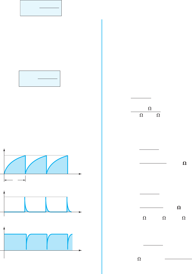 No instante em que a tensão através do capaci- tor se iguala a VP, o dispositivo dispara, e uma corrente IA = IP é estabelecida através do PUT. Se R for muito grande, a corrente IP não pode ser atingida e o dispositivo não dispara. No ponto de transição, IPR = VBB – VP e Rmáx = VBB - VP IP (17.25) O subscrito é incluído para indicar que qualquer R maior do que Rmáx resultará em uma corrente menor do que IP. O valor de R deve, também, ser tal que assegure que a corrente resultante seja menor do que IV se oscilações forem desejadas. Isto é, queremos que o dispositivo entre na região instável e então retorne ao estado “desligado”. A partir de um raciocínio análogo a esse, obtemos: Rmín = VBB - VV IV (17.26) A discussão anterior permite concluir que R deve ser limitado da seguinte maneira para um sistema oscilante: Rmín < R < Rmáx As formas de onda vA, vG e vK são mostradas na Figura 17.66. Observe que T determina a tensão máxima que vA pode atingir. Quando o dispositivo dispara, o ca- pacitor rapidamente é descarregado através do PUT e de RK, produzindo a queda mostrada. Obviamente, vK atinge o pico ao mesmo tempo, devido à corrente rápida, porém intensa. A tensão vG cai rapidamente de VG para um valor um pouco maior do que 0 V. Quando a tensão do capacitor cai para um valor baixo, o PUT novamente desliga, e o ciclo de carregamento se repete. O efeito sobre VG e VK é mostrado na Figura 17.66. eXemplO 17.3 Para o circuito da Figura 17.64, se VBB = 12 V, R = 20 kΩ, C = 1 μF, RK = 100 Ω, RB1= 10 kΩ, RB2 = 5 kΩ, IP = 100 μA, VV = 1 V e IV = 5,5 mA, determine: a) VP . b) Rmáx e Rmín. c) T e a frequência de oscilação. d) As formas de onda de vA, vG e vK. solução: a) Equação 17.20: VP = hVBB + VD = RB1 RB1 + RB2 VBB + 0,7 V = 10 k 10 k + 5 k (12 V) + 0,7 V = (0,67)(12 V) + 0,7 V = 8,7 V b) A partir da Equação 17.25: Rmáx = VBB - VP IP = 12 V - 8,7 V 100 mA = 33 k A partir da Equação 17.26: Rmín = VBB - VV IV = 12 V - 1 V 5,5 mA = 2 k R: 2 k 6 20 k 6 33 k c) A partir da Equação 17.23: T = RC loge VBB VBB - VP = (20 k )(1 mF) loge 12 V 12 V - 8,7 V = 20 × 10-3 loge (3,64) = 20 × 10-3(1,29) = 25,8 ms f = 1 T = 1 25,8 ms = 38,8 Hz VK = VA − VV T VP 0 t0 VG = ηVBB 0 t t vA vK vG Figura 17.66 Formas de onda para o oscilador usando PUT da Figura 17.64. 736 dispositivos eletrônicos e teoria de circuitos Boylestad_2012_cap17.indd 736 3/11/13 6:32 PM T = RC loge VBB VBB - VP = (20 k )(1 mF) loge 12 V 12 V - 8,7 V = 20 × 10-3 loge (3,64) = 20 × 10-3(1,29) = 25,8 ms f = 1 T = 1 25,8 ms = 38,8 Hz d) Como indica a Figura 17.67. 17.16 resumO conclusões e conceitos importantes 1. O retificador controlado de silício (SCR) é aquele cujo estado é controlado pela magnitude da cor- rente de porta. A tensão de polarização direta no dispositivo determina o valor da corrente de por- ta necessária para “disparar” (ligar) o dispositivo. Quanto maior for o valor de tensão de polarização, menor será a corrente de porta exigida. 2. Além do disparo pela porta, um SCR pode ser ligado com uma corrente de porta zero pela simples apli- cação de tensão suficiente no dispositivo. Quanto maior a corrente de porta, no entanto, menor a tensão de polarização exigida para ligar o SCR. 3. A chave controlada de silício (SCS) possui tanto uma porta anodo quanto uma porta catodo para controlar o estado do dispositivo, apesar de a porta anodo estar conectada a uma camada do tipo n e a porta catodo, conectada a uma camada do tipo p. O resultado é que um pulso negativo na porta anodo liga o dispositivo, enquanto um pulso positivo o desliga. O inverso é válido para a porta catodo. 4. Uma chave com desligamento na porta (GTO) parece ter construção similar à do SCR, com apenas uma conexão de porta; porém o GTO possui a vantagem de ser capaz de desligar e ligar o dispo- sitivo no terminal da porta. No entanto, essa opção adicional de desligamento pela porta resulta em uma corrente de porta maior para ligá-lo. 5. O LASCR é um SCR ativado por luz cujo estado pode ser controlado pela incidência de luz sobre uma camada semicondutora do dispositivo ou por disparo do terminal de porta da mesma maneira já descrita para os SCRs. Quanto maior a tempera- tura de junção do dispositivo, menor a necessidade de luz incidente para ligar o dispositivo. 6. O diodo Shockley possui basicamente as mesmas características de um SCR com corrente de porta zero. É ligado pelo simples aumento da tensão de polarização direta no dispositivo acima do valor de ruptura. 7. O diac é essencialmente um diodo Shockley que pode disparar em qualquer sentido. A aplicação de tensão suficiente de qualquer polaridade liga o dispositivo. 8. O triac é basicamente um diac com um terminal de porta para controlar a ação do dispositivo em qualquer sentido. 9. O transistor de unijunção é um dispositivo de três terminais com uma junção n-p formada entre uma haste de alumínio e uma placa de silício do tipo n. Uma vez alcançado o potencial de disparo do emissor, a tensão no emissor cai com um aumento na corrente de emissor, estabelecendo uma região de resistência negativa excelente para aplicações em osciladores. Uma vez atingido o ponto de vale, as características do dispositivo assumem as de um diodo semicondutor. Quanto maior a tensão aplicada no dispositivo, maior o potencial de disparo. 10. O fototransistor é um dispositivo de três terminais de características bastante similares às do TBJ com uma corrente de base e coletor sensível à intensidade da luz incidente. A corrente de base que resulta é, por princípio, linearmente relacionada à luz aplicada com um valor quase independente da tensão no dispositivo até que se obtenha a ruptura. 0 t0 0 t t 8,7 V VK = VA − VV = 8,7 V − 1 V = 7,7 V VG = η VBB = 8 V 25,8 ms vA vK vG Figura 17.67 Formas de onda para o oscilador do Exemplo 17.3. capítulo 17 pnpn e outros dispositivos 737 Boylestad_2012_