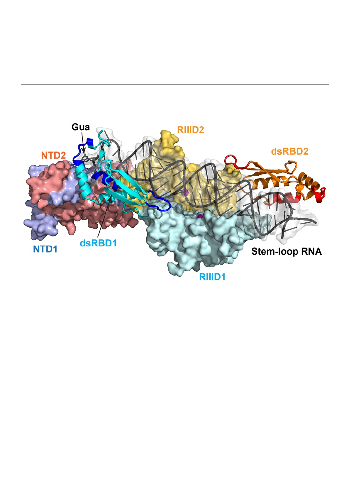 1/2 Rnt1p: Uma alternativa ao RNAi para a degradação do RNA direcionado A família de proteínas de ligação de RNA de encadernação dupla controla a edição, a estabilidade e a função do RNA em todos os eucariotos. Como um sinal para silenciamento de expressão específico de genes em muitos organismos, o RNA de cadeia dupla (dsRNA) é especificamente reconhecido pelas proteínas de ligação ao dsRNA (dsRBPs). Não surpreendentemente, a família dsRBP controla a estabilidade, edição e função do RNA em todos os eucariotos. A característica central desta família é o reconhecimento de um RNA duplex genérico usando o domínio de ligação a dsRNA altamente conservado (dsRBD) que reconhece as características da hélice de RNA. Variações sobre este tema que conferem especificidades de espécies e funcionalidades têm sido relatadas, mas a maioria dos dsRBPs mantém sua capacidade de ligar o dsRNA genérico. Entre os dsRBPs, o ribonuclease procariótico III (RNase III) e o eucariótico Rnt1p, Drosha e Dicer representam quatro classes distintas da família RNase III. Como todos os dsRBPs e a maioria dos RNase III, Rnt1p de Saccharomyces cerevisiae tem um dsRBD, mas ao contrário da maioria dos seus parentes, ele se liga mal a hélices de RNA genérico. Em vez disso, Rnt1p, a única RNase III conhecida expressa em S. cerevisiae que não possui a maquinaria de interferência de RNA (RNAi), reconhece uma classe específica de RNAs de ciclo de troncos. Para reconhecer os substratos específicos, o dsRBD do Rnt1p é especializado, apresentando uma topologia incomum de abbbaaaa (em contraste com a dobra canônica de abbba dsRBD) e um motivo de ligação ao RNA específico da sequência no terminal C do 2/2 dsRBD. A genética, a função, a estrutura e o mecanismo de Rnt1p são descritos por Sherif Abou Elela e Xinhua Ji em RNA WIRE. Desde a descoberta de Rnt1p em 1996, progressos significativos foram feitos em estudos de sua genética, função, estrutura e mecanismo de ação, explicando as razões e mecanismos para o aumento da especificidade desta enzima e seu impacto no mecanismo de degradação do RNA. Como a primeira estrutura tridimensional de RNase III eucariótica em complexo com dsRNA de forma catalítica significativa, a estrutura cristalina de alta resolução do complexo pós-clivagem Rnt1p revela um mecanismo duplo-governante para seleção e clivagem de substrato. A estrutura mostra que Rnt1p reconhece um nucleotídeo de guanina por um motivo G-clamp no terminal C de DsRBD, que a base de guanina também é reconhecida pelo domínio N-terminal (NTD) da enzima, que a garra-queda G é necessária para a seleção e clivagem do substrato, e que a DTN é necessária para a precisão do processamento. A estrutura também descreve a arquitetura detalhada do conjunto de clivagem de RNA, explicando como as RNase III eucarióticas seguem o mecanismo catalítico básico de dois Mg 2 + + ion que foi revelado pela primeira vez pelas estruturas bacterianas de RNase III. Juntamente com as estruturas dos complexos bacterianos RNase III:RNA, a estrutura do Rnt1p:RNA demonstra que a seleção de substrato por RNase III é realizada independente da clivagem, permitindo que todos os membros da família sigam o mesmo mecanismo catalítico básico de duas Mg 2+ ion para o processamento de dsRNA. Gentilmente contribuídos pelos autores. https://onlinelibrary.wiley.com/doi/full/10.1002/wrna.1521 https://onlinelibrary.wiley.com/doi/full/10.1002/wrna.1521