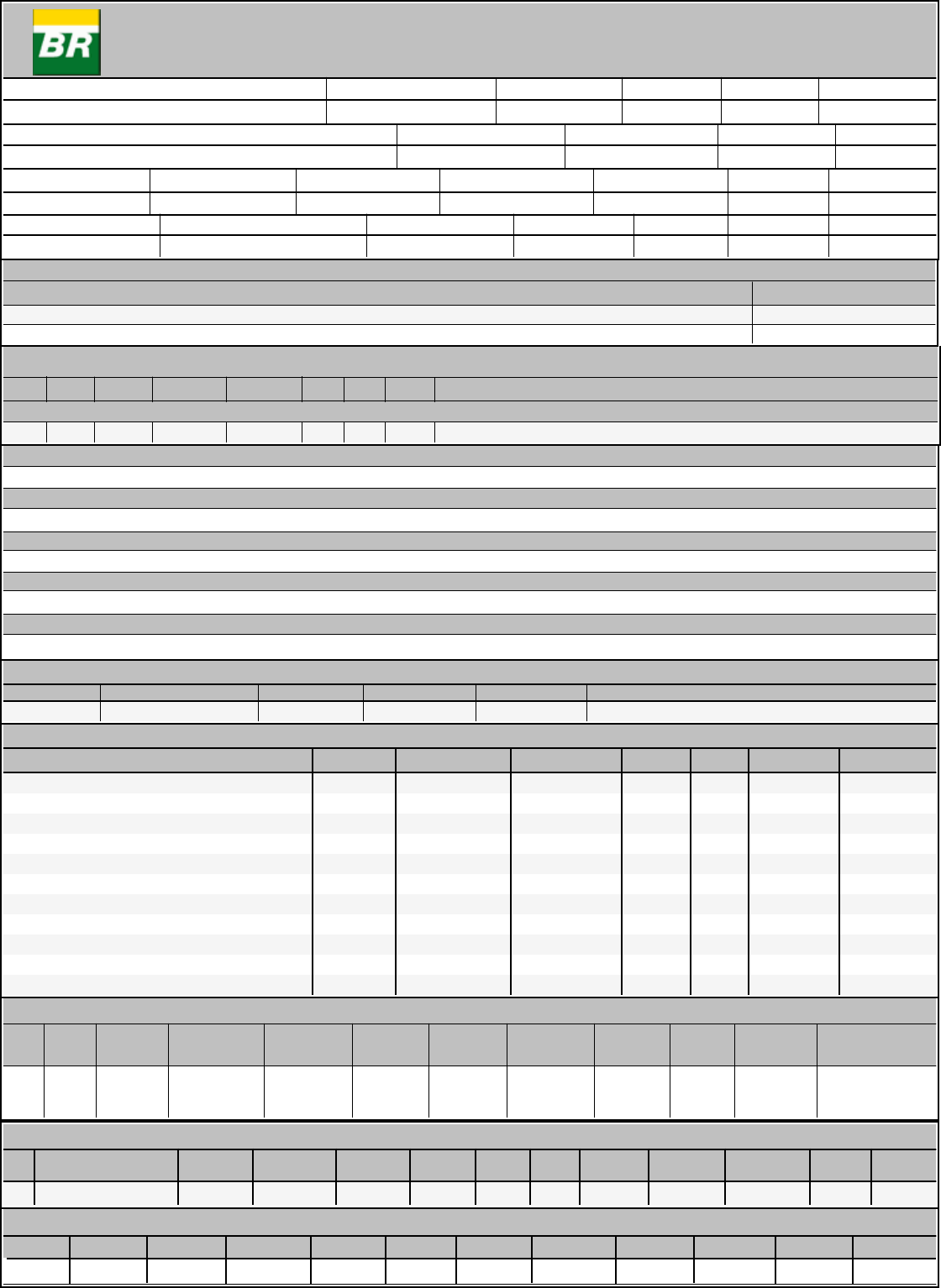 PETROBRAS BDP Data do Relatório:No. Relatório:Mesa Rotativa:LDA/Elevação:Intervenção:Poço: 647,00 m7-SZ-616D-SE 28/07/201552,20 mPERFURAÇÃO Prof. M.(m): Prof. V.(m):Avanço Diário:Sonda:Campo: 190,00 m / 24,00 hSC-91 272,00 272,00SIRIRIZINHO Custo Diário(US$): Custo Autorizado(US$):Custo Intervenção(US$): Último Treinamento Kick: Último Teste Leak-Off: Último Teste BOP:Tipo Leak-Off: 0,00 0,00 ppg @ 0,00 m20/07/2015 0,00 0,00 Prof. M. Dir.(m): Inclin. Dir.(°): Azim. Dir.(°):Máx. Pressão Poros: Último Revestimento: Últ. Reg. Direcional: Últ. diário? 0,00 0,00 0,0020pol @ 13,90m Não Funcionários Nome Função FISCALROBERTO MENEZES SILVA GEPMAI CORREIA RABELO DE VASCONCELOS Descrição das Operações Tempo Total (h):24,00 DescriçãoAnom.Prof. FinalProf. InicialHorasAtéDe TNE Torre OPERAÇÕES PRINCIPAIS 0:00 0:00 82,00 272,00 24,00 PERFURANDO ROTATIVO E ORIENTADO C/ BR. 17 1/2" IADC.415.REED. FM. MWD. 1 Operação principal do dia anterior Perfuração Situação às 6h manhã dia seguinte PERFURANDO ROTATIVO E ORIENTADO C/ BR. 17 1/2" Profundidade às 6h manhã 300,00 Resumo oper. até 6h manhã dia seguinte 00:00 AS 06:00 PERFURANDO ROT. E ORIENT. A 300M C/ BR. 17 1/2" IADC.417.REED. FM. MWD. Previsão das Próximas Operações PERFURAR AVANTE ATÉ A PROFUNDIDADE FINAL PREVISTA PELA GEOLOGIA. PARA DESCIDA DO REVESTIMENTO 13 3/8" BHA ComentáriosComp. BHA(m)Torque (lbf pé)Drag(klbf)Último Intervalo(m)No. BHA 2 30,00 / 169,60 BHA Componentes No. de SérieConexãoID(pol)OD(pol)Comp. Acum.(m)Comprimento(m)QuantidadeComponente BROCA TRICÔNICA 7 5/8 REG D1873761 0,45 17,500 2,500 0,45 SUB DE CONVERSÃO 6 5/8 REG B95X1431 0,77 7,750 3,000 1,22 MOTOR DE FUNDO 6 5/8 REG F771311 8,47 7,750 3,000 9,69 FLOAT SUB 6 5/8 REG D80F475A1 0,92 7,750 3,000 10,61 SUB DE CONVERSÃO 4 1/2 IF1 0,57 6,750 2,812 11,18 MWD 6 5/8 REG D80L397D1 9,22 7,750 3,000 20,40 K-MONEL 6 5/8 REG 20521 8,95 7,750 29,35 COMANDO ESPIRALADO 6 5/8 REG2 18,64 7,750 3,000 47,99 SUB CONVERSÃO 6 5/8 REG1 0,57 7,750 3,000 48,56 COMANDO 5 1/2 REG4 28,14 6,750 3,000 76,70 HW 4 1/2 REG9 92,90 5,000 3,000 169,60 Brocas DesgasteData EntradaTopo do Intervalo(m) Jatos ()/TFANo. de SérieCódigo IADCTipo da BrocaModeloFabricanteNo. BHADiâmetro Externo (pol) No. Broca/ Coroa 1R1 T41C 415 3 X 0, 1 X 0/1,29 - - - - - - 2 REED HYCALOG BROCA TRICÔNICA DE INSERTO D187376 17,50 27/7/15 10:30 30,00 Dados Operacionais da Broca Tx Acum(m/h) MTR Acum.(m) TBF Acum.(h)Tx Dia(m/h)Avanço(m)TBF(h)TGA(h)Press Circ(ksi) Vazão(gpm)Rotação(rpm)PSB(klbf)Ativ.No. 6,26 238,00 38,00 7,92 190,0024,00 1.250,00 550,00160,005,00/7,00PERFURANDO1R1 24,00 Volumes de Fluidos(bbl) / Velocidades do Anular(pé/min) Vel.Anul.RiserVel.Anul.DCVel.Anul.DPFabricadoDescartadoPerdidoTotalAtivoPoço Choke/Kill BoosterReserv 34,00 43,00 238,00 190,00 140,00 568,00 135,00 211,00 0,00 0,00 Fluido PP ECDCONVENCIONALTipo do FluidoMaior Densidade do dia(ppg) 9,9 E.Elét.NaClTeor Sól. CaClPf/MfpH/Pm%Areia/MBTÓleo/ÁguaTot. Sol. Diss.Filt.API/ATAPGels(I/F)VP/YPV.MashHora Coleta Densidade 10:00 0,0/0,0 0,0/0,0 0,0/0,0 0,0/0,00,0/0,00,0/09,7 53,0 0,0 0,0N/A 0,0 N/A 15:00 0,0/0,0 0,0/0,0 0,0/0,0 0,0/0,00,0/0,00,0/09,9 80,0 0,0 0,0N/A 0,0 N/A 21:00 0,0/0,0 0,0/0,0 0,0/0,0 0,0/0,00,0/0,00,0/09,8 45,0 0,0 0,0N/A 0,0 N/A Pessoal No. Total de Pessoas: 37 PessoalNo. PessoasFunçãoCompanhia PETROBRAS Fiscal 1 ROBERTO MENEZES PETROBRAS Supervisor 1 ADALTO PETROBRAS Geologo 1 Uiliam PETROBRAS Estagiario 2 Virgilio/Fabio PETROBRAS Sondador 2 Sostenes/Abdiel PETROBRAS Direcional 1 Sergio Almeida PETROBRAS Eletricista 1 valmir PETROBRAS Quimico 1 EVERLAN PERBRAS Sondador 2 Nilton/John PERBRAS Toristas 2 Reginaldo/Luiz Ferreira PERBRAS Plataformistas 6 Magno/Kairon/Haredtley/Gustavo/Ataildes/Fábio PERBRAS Aux. plataforma 2 Clayton/Fernabdo Silva PERBRAS Mecânico 2 Denis/Rodolfo PERBRAS Eletricista 1 Marcelo BARRETOS 10 Diversos VARCO Operador de centrífuga 2 Enoque/Bruno Materiais/Consumo Item Unid. Usado EstoqueBatelada Silo EstoqueUnid. UsadoSiloBateladaItem DIESEL P/ UNIDADE m3 3,00 23,00 Observações Gerais = FOI RECEBIDO NESTA DATA 20.000 LITROS DE ÓLEO DIESEL CONFORME NOTA FISCAL. = DURANTE A TODA PERFURAÇÃO DA FASE DE 13 3/8" ATÉ A PROFUNDIDADE 300M NÃO HOUVE ANOMALIA. = SERVIÇO NA BOMBA 01=SUBSTITUIDO 01 VALVULA DE SUCÇÃO. = SERVIÇO NA BOMBA 02 =SUBSTITUIDO 01 VALVULA DE INJEÇÃO.