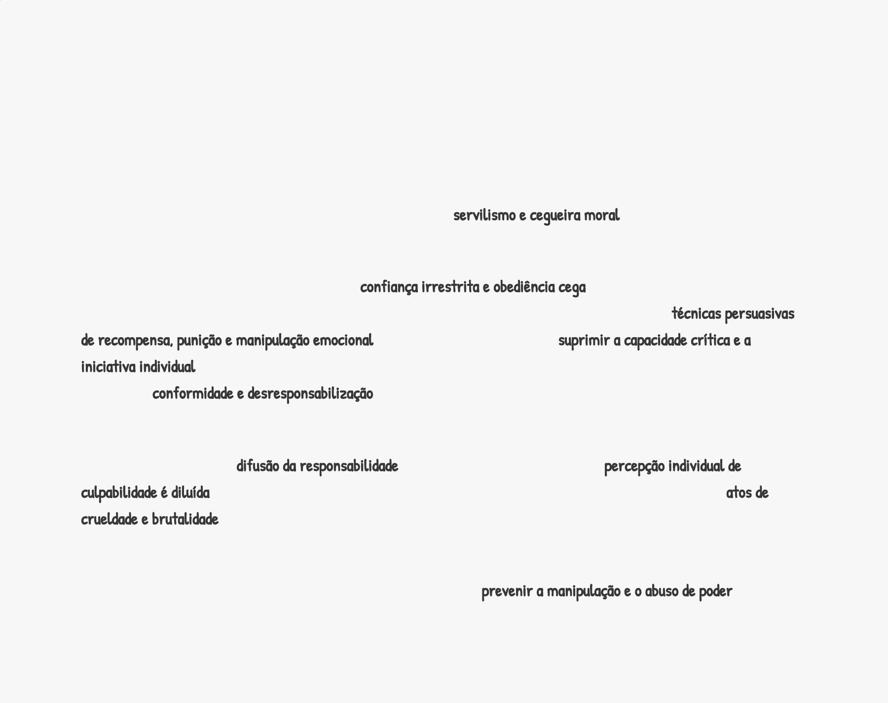 Psicologia da obediência e submissão A psicologia da obediência e submissão revela os mecanismos fascinantes e preocupantes que levam indivíduos a abandonar sua autonomia e se subordinar a uma autoridade ou vontade externa. Nesse campo de estudo, observa-se como fatores sociais, emocionais e situacionais podem moldar profundamente o comportamento humano, fazendo com que pessoas aparentemente racionais e éticas adotem posturas de servilismo e cegueira moral em determinadas circunstâncias. Um dos principais aspectos dessa dinâmica é a confiança irrestrita e obediência cega que muitos indivíduos desenvolvem em relação a figuras de autoridade, sejam elas líderes políticos, religiosos ou militares. Através de técnicas persuasivas de recompensa, punição e manipulação emocional, essas autoridades conseguem suprimir a capacidade crítica e a iniciativa individual dos subordinados, levando-os a cometer atos contrários aos seus próprios valores e princípios. A tendência à conformidade e desresponsabilização torna-se um mecanismo de defesa psicológico diante da pressão exercida pelo grupo ou pela hierarquia. Outro fator relevante é a difusão da responsabilidade em contextos coletivos, em que a percepção individual de culpabilidade é diluída pela sensação de pertencimento a um grupo maior. Essa dinâmica leva muitas vezes a atos de crueldade e brutalidade que seriam inconcebíveis na esfera individual, mas tornam-se aceitáveis quando inseridos em uma estrutura de comando e controle. Compreender a psicologia da obediência e submissão é crucial para prevenir a manipulação e o abuso de poder, desenvolvendo estratégias que fortaleçam o pensamento crítico, a autonomia individual e o senso de responsabilidade ética, mesmo diante de pressões sociais e hierárquicas. Psicologia da conformidade e normalização Um dos fenômenos mais fascinantes e preocupantes dentro da psicologia das massas é a tendência dos indivíduos à conformidade e normalização de comportamentos e atitudes. Nesse contexto, os seres humanos demonstram uma notável capacidade de se adequar aos padrões estabelecidos por seu grupo social, abandonando suas preferências e convicções pessoais em prol da aceitação e integração ao coletivo. Essa dinâmica de conformidade está ancorada em poderosos mecanismos psicológicos, como o medo da rejeição, a necessidade de pertencimento e a aversão à discordância. Ao perceberem que determinadas crenças, valores e comportamentos são dominantes em seu meio, os indivíduos tendem a se adaptar de forma sutil e gradual, mesmo que isso signifique ir contra suas próprias inclinações. O desejo de evitar o ostracismo e a marginalização é um dos principais propulsores dessa tendência à normalização e homogeneização da mente coletiva. Efeito manada e pressão social: As pessoas têm uma forte propensão a se deixar influenciar pelas escolhas e ações de seus pares, adotando comportamentos e atitudes similares para se sentirem parte integrante do grupo. Desejo de aceitação e aprovação: O anseio por reconhecimento e status social leva muitos indivíduos a abandonarem sua individualidade em favor de uma conformidade com o status quo, temendo as consequências da discordância. Racionalização da obediência e submissão: Em muitos casos, os indivíduos conseguem justificar e naturalizar sua submissão a normas e autoridades, criando narrativas que legitimam a perda de sua autonomia. Essa psicologia da conformidade e normalização representa um grande desafio para a sociedade, pois pode levar à supressão da diversidade, do pensamento crítico e da criatividade, além de facilitar a manipulação e o controle das massas por parte de lideranças e poderes hegemônicos. Compreender esses mecanismos é fundamental para promover uma sociedade mais plural, resiliente e empoderada. Psicologia da alienação e despersonalização A psicologia da alienação e despersonalização representa um fenômeno profundamente perturbador dentro da psicologia das massas. Nesse contexto, os indivíduos perdem gradualmente seu senso de identidade e autonomia, adotando uma postura de alheamento e distanciamento em relação a si mesmos, aos outros e à sociedade. Esse processo é alimentado por uma série de fatores, desde a pressão social por conformidade até a fragmentação e a desconexão dos laços comunitários. A sensação de irrealidade, desconexão e falta de controle sobre sua própria existência leva o indivíduo a uma espécie de crise existencial, em que sua percepção de si mesmo e do mundo passa a ser distorcida e dissociada. Essa perda da integridade psicológica é agravada pelo isolamento social, a solidão e a impessoalidade características de sociedades cada vez mais tecnocráticas e despersonalizadas. Além disso, a exposição constante a narrativas e imagens homogeneizadoras veiculadas pela mídia, pela propaganda e pela cultura de massa contribui para a uniformização de aspirações e identidades, reduzindo o indivíduo a uma mera projeção de padrões e estereótipos. O resultado é um profundo sentimento de alienação e desencantamento, em que a pessoa se sente cada vez mais alheia a sua própria vida e às suas reais necessidades e desejos. Compreender essa dinâmica psicológica da alienação e despersonalização é crucial para promover estratégias de empoderamento, conexão social e fortalecimento da individualidade, combatendo os efeitos deletérios da massificação e da desumanização da sociedade contemporânea. Psicologia da manipulação e controle de massas A psicologia da manipulação e controle de massas representa um dos fenômenos mais inquietantes e perturbadores da psicologia coletiva. Nesse contexto, indivíduos e instituições exercem um poder quase que subreptício sobre a mente da massa, moldando suas crenças, emoções e comportamentos de forma sutil e persuasiva. Essa dinâmica de con