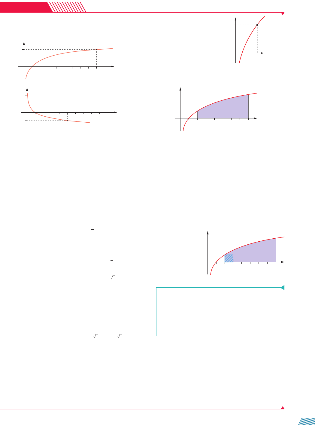 28. Cada gráfico abaixo representa uma função logarítmi- ca do tipo F(x) 5 loga x, com a > 0 e a = 1. Escreva no caderno a lei de formação de cada função. a) 1 9 2 Fy x b) 1 21 5 F y x 29. Construa em um plano cartesiano o gráfico de cada função logarítmica F: R1 * ñ R com lei de correspon- dência dada e confirme neles as características desse tipo de função. a) F(x) 5 log3 x b) F(x) 5 log1 3 x 30. Observe o gráfico que você construiu no item a da ati- vidade anterior. a) Qual é o valor de F(1)? E qual é o valor de x tal que F(x) 5 1? b) Se a base dessa função fosse 4, o valor de F(1) e o valor de x tal que F(x) 5 1 seriam os mesmos do item a? c) E se a base dessa função fosse 1 4 ? 31. Observando a base, identifique se cada função dada é crescente ou decrescente. a) F(x) 5 log3 x b) F(x) 5 log x c) F(x) 5 log0,5 x d) F( ) 5 log1 3 x x e) F(x) 5 log0,1 x f) F( ) 5 log 3x x 32. Escreva no caderno a lei de uma função logarítmica F: R1 * ñ R que seja crescente e a lei de uma função logarítmica G: R1 * ñ R que seja decrescente. 33. Copie cada par de logaritmos no caderno e associe-os a valores de uma função logarítmica. Depois, compare os logaritmos usando os sinais > ou <. a) log0,9 8 e log0,9 5. b) log47 5 e log47 3. c) log 9 e log 8.3 3 3 3 34. Observe novamente, na página 94, os gráficos das fun- ções inversas dadas por F(x) 5 ax e F21(x) 5 loga x, com a > 0 e a = 1, nos casos em que a > 1 e 0 < a < 1. a) Qual é o domínio e qual é o conjunto imagem de cada uma dessas funções inversas? b) Compare o crescimento e o decrescimento dessas funções quando a > 1 e quando 0 < a < 1. F(x) 5 log3 x Il u s tr a ç õ e s : B a n c o d e i m a g e n s /A rq u iv o d a e d it o ra F(x) 5 log0,2 x Os gráficos encontram-se nas Orientações específicas deste Manual. F(1) 5 0. x 5 3. 30. b) O valor de F(1) continuaria sendo 0, mas o valor de x seria 4. Crescente. Crescente. Decrescente. Decrescente. Decrescente. Crescente. 35. Sabendo que o gráfico ao lado é de uma função dada por F(x) 5 log x, determine os valores de a e b. 36. Observe a região plana que foi representada abaixo do gráfico da função logarítmica dada por F(x) 5 log x. 1 2 3 4 5 6 7 8 y 5 log xy x Siga as instruções dos itens a seguir para calcular algu- mas aproximações para a medida de área dessa região. a) É provável que você não conheça nenhuma fórmula para o cálculo da medida de área de regiões com essa forma. Então, uma maneira de fazer o cálculo é considerar aproximações utilizando outras regiões planas cujas medidas de área você sabe calcular. Por exemplo, você pode considerar regiões retan- gulares com bases sobre o eixo das abcissas (como a região retangular hachurada a seguir) e adicionar as medidas de área delas, obtendo, assim, uma aproximação para o cálculo pretendido. Usando essa es t r a tég ia , calcule a me- dida de área aproximada da região pla- na dada. Decomposição é uma estratégia de raciocínio usada para dividir um problema em outros menores e, portanto, mais fáceis de serem resolvidos. Esse processo cognitivo pode ser realizado em diferentes situações, como em atividades com figuras geométricas, em atividades algébricas ou, ainda, em contextos do cotidiano. Fique atento b) Utilizando outras regiões planas que você já conhe- ce, faça outra decomposição da região plana dada e calcule uma aproximação melhor para a medida de área dela. c) Observe as resoluções que você fez nos itens a e b e descreva para um colega como obter aproxima- ções cada vez melhores para a medida de área da região plana dada. a 5 1 e b 5 1. B a n c o d e i m a g e n s / A rq u iv o d a e d it o ra Os exemplos de resposta encontram-se nas Orientações específicas deste Manual. 1 2 3 4 5 6 7 8 y 5 log xy x B a n c o d e i m a g e n s / A rq u iv o d a e d it o ra Atividades Não escreva no livro. x y 10a0 b B a n c o d e i m a g e n s / A rq u iv o d a e d it o ra As respostas encontram-se nas Orientações específicas deste Manual. de resposta encontra-se nas Orientações específicas deste Manual. O exemplo 30. c) O valor de F(1) também continuaria sendo 0, mas o valor de x seria 1 4 . encontram-se nas Orientações específicas deste Manual. As respostas 95 066a105_V1_MATEMATICA_Dante_g21At_Cap2_LA.indd 95066a105_V1_MATEMATICA_Dante_g21At_Cap2_LA.indd 95 04/09/2020 11:4404/09/2020 11:44 Ampliando a ideia de função logarítmica O comportamento logarítmico é característico de certos fenômenos naturais. No entanto, de modo geral não se apresenta na forma F(x) 5 loga x (com a > 0 e a = 1), mas sim modificado por constantes características do fenômeno. Acompanhe a reso- lução da atividade a seguir e perceba a presença de constantes na lei de formação das funções do tipo logarítmica. Resolvida passo a passo 11. A magnitude M de um terremoto pode ser dada pela escala Richter, que foi desenvolvida em 1935 pelo sismólogo estadunidense Charles Francis Richter (1900-1985) com a colaboração do também sismólogo alemão Beno Gutenberg (1889-1960). Sendo 0 , M , 8,9, temos que a magnitude M de um terremoto é dada por M(E) 5 ? E E 2 3 log 0 , sen- do E a medida de energia liberada, em quilowatt- -hora (kWh). Sismólogo Profissional especializado no estudo dos terremotos e da estrutura da Terra. Determine a medida de energia liberada em um terremoto de magnitude 4 na escala Richter, saben- do que E0 5 7 ? 1023 kWh. Resolução 1. Lendo e compreendendo a) O que é dado no problema? A questão fornece o valor da constante E0 e a magnitude do sismo. b) O que se pede? A medida de energia liberada nesse terremoto, em kWh. 2. Planejando a solução Devemos substituir na lei da função os valores que são dados e resolver a igualdade obtida. 3. Executando o que foi planejado Temos: 4 5 ? ? ~ 5 ?2 2 E E2 3 log 7 10 6 log 7 103 3 Aplicando a definição de logaritmo, obtemos: 106 5 ? 2 E 7 10 3 ~ E 5 7 ? 103 4. Verificando