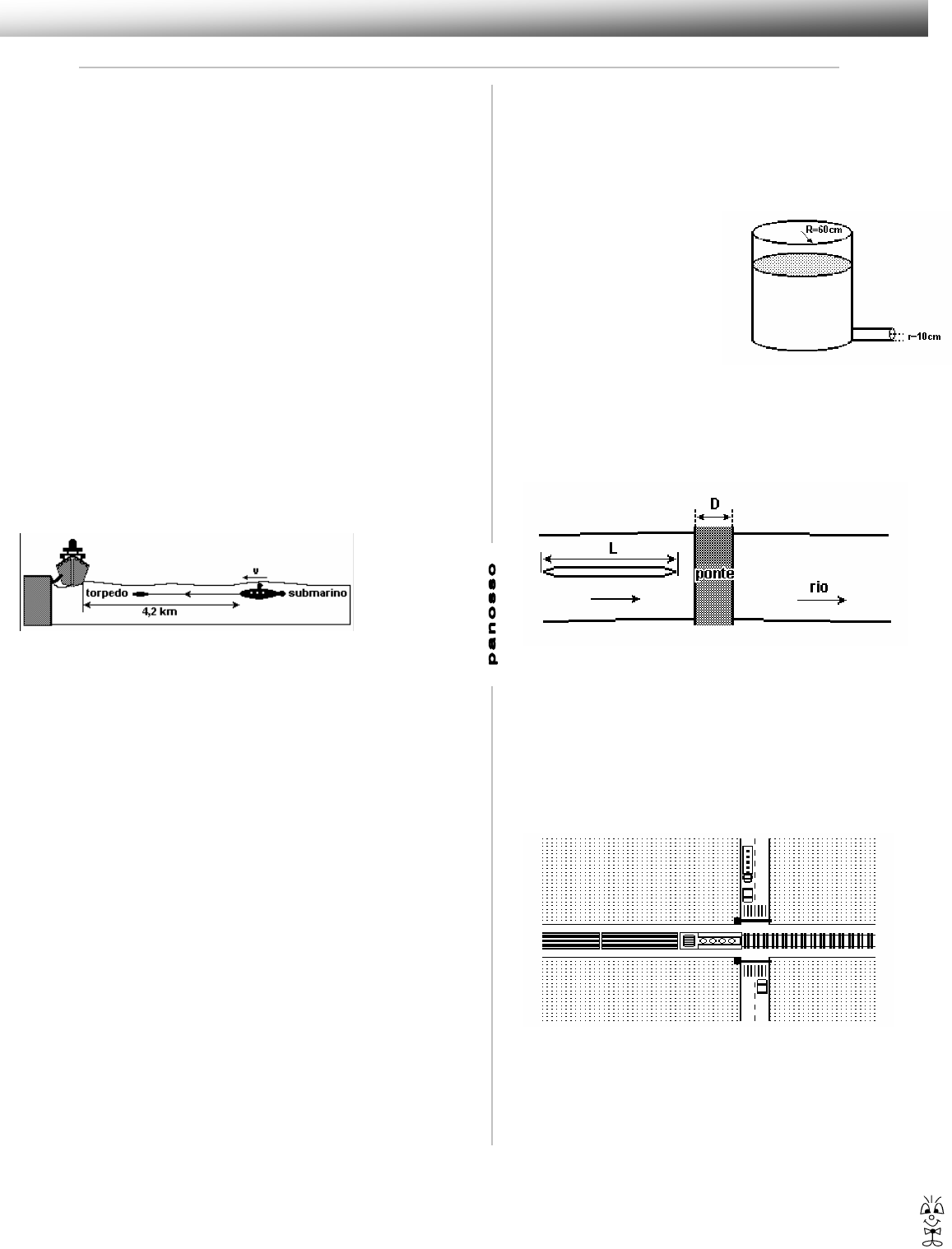 Velocidade média e M.U. 1 Exercícios de Física 1) Um automóvel percorre 300km. Na primeira metade deste percurso sua velocidade é de 75km/h e na segunda metade sua velocidade é o dobro da velocidade na primeira metade. Quanto tempo ele levará para realizar todo o percurso? a) 2,5 h b) 3,0 h c) 3,5 h d) 4,0 h e) 2,0 h 2) Um corredor está participando de uma prova de 5km. Nos primeiros 3km ele mantém velocidade constante de 1,5m/s. No restante da prova, sua velocidade é de 2,0m/s. Assinale a alternativa que indica a velocidade média do atleta durante a prova: a) 1,667 m/s b) 1,950 m/s c) 1,755 km/h d) 1,850 m/s e) 1,650 m/s 3) Durante um teste de desempenho de um automóvel, o piloto percorreu a primeira metade da pista com velocidade média de 60km/h e a segunda metade a 90km/h. Qual a velocidade média desenvolvida durante o teste completo, em km/h? 4) Um submarino em combate lança um torpedo na direção de um navio ancorado. No instante do lançamento o submarino se movia com velocidade v = 14 m/s. O torpedo é lançado com velocidade v(ts), em relação ao submarino. O intervalo de tempo do lançamento até a colisão do torpedo com o navio foi de 2,0 min. Supondo que o torpedo se moveu com velocidade constante, calcule v(ts) em m/s. 5) O motorista de um automóvel deseja percorrer 40km com velocidade média de 80km/h. Nos primeiros 15 minutos, ele manteve a velocidade média de 40km/h. Para cumprir seu objetivo, ele deve fazer o restante do percurso com velocidade média, em km/h, de: a) 160. b) 150. c) 120. d) 100. e) 90. 6) Um automóvel e um ônibus trafegam em uma estrada plana, mantendo velocidades constantes em torno de 100km/h e 75km/h, respectivamente. Os dois veículos passam lado a lado em um posto de pedágio. Quarenta minutos (2/3 de hora) depois, nessa mesma estrada, o motorista do ônibus vê o automóvel ultrapassá- lo. Ele supõe, então, que o automóvel deve ter realizado, nesse período, uma parada com duração aproximada de a) 4 minutos b) 7 minutos c) 10 minutos d) 15 minutos e) 25 minutos 7) Um cão persegue uma lebre de forma que enquanto ele dá 3 saltos ela dá 7 saltos. Dois saltos do cão equivalem a cinco saltos da lebre. A perseguição inicia-se em um instante em que a lebre está a 25 saltos à frente do cão. Considerando-se que ambos deslocam-se em linha reta, é correto afirmar que o cão alcança a lebre após ele ter: a) Percorrido 30m e a lebre 70m. b) Percorrido 60m e a lebre 140m. c) Dado 70 saltos. d) Percorrido 50m. e) Dado 150 saltos. 8) Uma martelada é dada na extremidade de um trilho. Na outra extremidade, encontra-se uma pessoa que ouve dois sons separados por um intervalo de tempo de 0,18s. O primeiro dos sons se propaga através do trilho com uma velocidade de 3400m/s, e o segundo através do ar, com uma velocidade de 340m/s. O comprimento do trilho em metros será de: a) 340m b) 68m c) 168m d) 170m 9) O tanque representado a seguir, de forma cilíndrica de raio 60cm, contém água. Na parte inferior, um tubo também de forma cilíndrica de raio 10cm, serve para o escoamento da água, na velocidade escalar média de 36m/s. Nessa operação a velocidade escalar média do nível d'água será: a) 1 m/s b) 4 m/s c) 5 m/s d) 10 m/s e) 18 m/s 10) Um barco de comprimento L = 80 m, navegando no sentido da correnteza de um rio, passa sob uma ponte de largura D = 25 m, como indicado na figura. Sabendo-se que a velocidade do barco em relação ao rio é vB = 14 km/h, e a velocidade do rio em relação às margens é vR = 4 km/h, determine em quanto tempo o barco passa completamente por baixo da ponte, em segundos. 11) Em uma passagem de nível, a cancela é fechada automaticamente quando o trem está a 100 m do início do cruzamento. O trem, de comprimento 200 m, move-se com velocidade constante de 36 km/h. Assim que o último vagão passa pelo final do cruzamento, a cancela se abre liberando o tráfego de veículos. Considerando que a rua tem largura de 20 m, o tempo que o trânsito fica contido desde o início do fechamento da cancela até o início de sua abertura, é, em s, a) 32. b) 36. c) 44. d) 54. e) 60. 12) Um caminhão percorre três vezes o mesmo trajeto. Na primeira, sua velocidade média é de 15 m/s e o tempo de viagem é t1 . Na segunda, sua velocidade média é de 20 m/s e o tempo de viagem é t2. Se, na terceira, o tempo de viagem for igual a (t1 + t2)/2, qual será a velocidade média do caminhão nessa vez? a) 20,00 m/s. b) 17,50 m/s. c) 17,14 m/s. d) 15,00 m/s. e) 8,57 m/s. Velocidade média e M.U. 2 Exercícios de Física 13) Um passageiro, viajando de metrô, fez o registro de tempo entre duas estações e obteve os valores indicados na tabela. Supondo que a velocidade média entre duas estações consecutivas seja sempre a mesma e que o trem pare o mesmo tempo em qualquer estação da linha, de 15 km de extensão, é possível estimar que um trem, desde a partida da Estação Bosque até a chegada à Estação Terminal, leva aproximadamente a) 20 min. b) 25 min. c) 30 min. d) 35 min. e) 40 min. 14) Da lavoura a um restaurante de estrada, um caminhão percorre 84 km com velocidade média de 70 km/h. Após uma pausa de 48 minutos para o lanche do motorista, a viagem é retomada, sendo percorridos 120 km com velocidade média de 60 km/h, até a chegada ao porto. A velocidade média de toda a viagem é, em km/h, a) 75 b) 65 c) 60 d) 51 e) 48 15) Dois trens, um de carga e outro de passageiros, movem-se nos mesmos trilhos retilíneos, em sentidos opostos, um aproximando- se do outro, ambos com movimentos uniformes. O trem de carga, de 50 m de comprimento, tem uma velocidade de módulo igual a 10 m/s e o de passageiros, uma velocidade de módulo igual a v. O trem de carga deve entrar num desvio para que o de passageiros possa prosseguir viagem nos mesmos trilhos, como ilustra a figura. No instante focalizado, as distâncias das dianteiras dos trens ao desvio valem 200 m e 400 m, respectivamente. Calcule o valor máxi