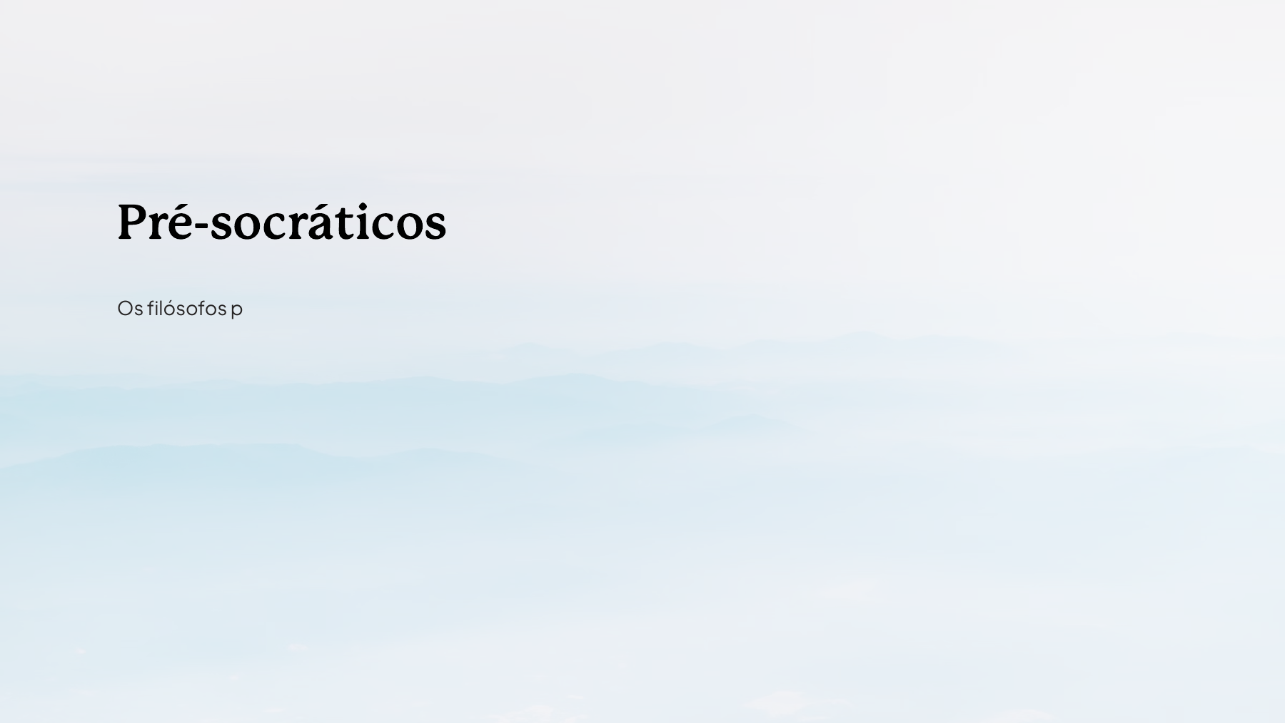 Pré-socráticos Os filósofos pré-socráticos foram os primeiros pensadores da Grécia Antiga, anteriores a Sócrates, e lançaram as bases para o desenvolvimento da filosofia ocidental. Esses pensadores buscavam compreender a natureza fundamental do universo, investigando a origem e a constituição do mundo físico. Figuras como Tales de Mileto, Anaximandro, Anaxímenes, Heráclito, Parmênides, Zenão de Eleia e Empédocles se destacaram por suas teorias inovadoras sobre os elementos primordiais, a mudança e a permanência, o movimento e a unidade do cosmos. Seus questionamentos e descobertas abriram caminho para o surgimento de diferentes escolas de pensamento, estabelecendo os alicerces da especulação filosófica. Tales de Mileto Tales de Mileto, um dos filósofos pré-socráticos mais significativos, é reconhecido como o fundador da filosofia grega. Nascido por volta de 624 a.C. na cidade de Mileto, na Ásia Menor, Tales foi um pioneiro na busca por explicações racionais para os fenômenos naturais, rompendo com as narrativas mitológicas predominantes na época. Considerado um dos Sete Sábios da Grécia, Tales demonstrou profundo interesse pela astronomia, matemática e física. Suas contribuições incluem a previsão do eclipse solar de 585 a.C. e o cálculo da altura das pirâmides do Egito. Além disso, ele foi o primeiro a postular que a água é o princípio fundamental do qual todas as coisas são originadas e para o qual retornarão. As ideias de Tales representam uma mudança paradigmática no pensamento grego, ao propor uma visão mais racional e científica do mundo. Seu legado inaugura uma jornada intelectual que influenciará profundamente o desenvolvimento da filosofia, da ciência e do pensamento ocidental. Anaximandro Anaximandro, um dos filósofos pré-socráticos mais influentes, nasceu por volta de 610 a.C. em Mileto, na Ásia Menor. Ele é conhecido por sua cosmologia revolucionária, que se afastava das explicações mitológicas predominantes na época e buscava compreender a origem e a estrutura do universo de forma racional e sistemática. Anaximandro propôs que a origem de todas as coisas é um princípio primordial que ele chamava de apeiron, uma substância ilimitada, indeterminada e eterna. Essa noção do apeiron como a fonte primária de todas as coisas representa um avanço significativo em relação à visão de Tales de Mileto, que considerava a água como o elemento fundamental. Além disso, Anaximandro foi pioneiro na concepção do cosmos como um sistema ordenado, com a Terra suspensa no centro e os astros orbitando-a em círculos concêntricos. Essa visão geocêntrica do universo exerceu uma profunda influência no pensamento astronômico e filosófico da Grécia Antiga. Anaxímenes Anaxímenes, outro importante filósofo pré-socrático, nasceu por volta de 585 a.C. em Mileto, na Ásia Menor. Ele é reconhecido por ter dado continuidade às investigações de Tales de Mileto e Anaximandro sobre a origem e a constituição do mundo físico. Diferentemente de seus predecessores, Anaxímenes propôs que o ar seria o princípio fundamental do qual todas as coisas são formadas. Ele acreditava que o ar, em suas diferentes condensações e rarefações, daria origem a todos os elementos e fenômenos do universo, desde a terra e a água até o fogo e as nuvens. Essa teoria inovadora de Anaxímenes sobre a transformação do ar em diferentes estados da matéria representou um avanço em relação às ideias anteriores. Sua visão da natureza como um processo dinâmico e em constante transformação exerceu uma forte influência no desenvolvimento da filosofia natural na Grécia Antiga.