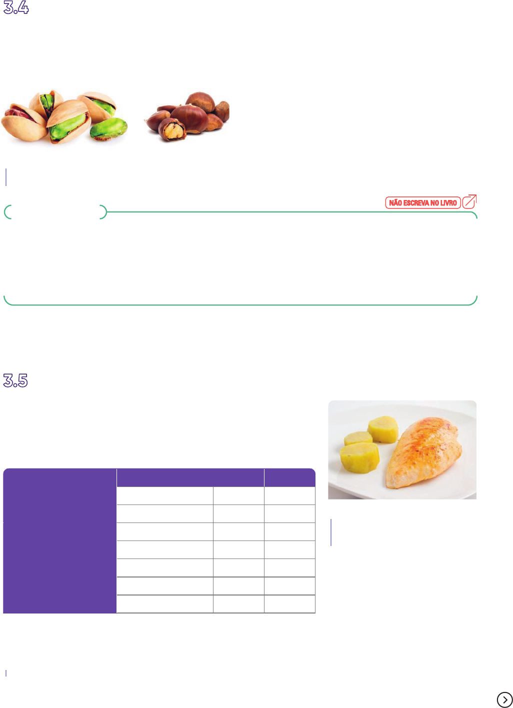 Existem vários tipos de castanha, ou oleaginosas, e todas nos trazem muitos benefícios à saúde. As mais conhecidas são: amêndoas, castanha-de-caju, castanha-do-pará, no- zes, avelãs, pistache, amendoim e castanha portuguesa. v it a ls /S h u tt e rs to ck o k s a n a 2 0 1 0 /S h u tt e rs to ck # Figura 3.15 – Pistache e castanha portuguesa, são exemplos de oleaginosas. Os elementos não estão representados em proporção. De modo geral, as castanhas são ricas em vitamina E e minerais, como potássio, magnésio, zinco, ferro, se- lênio, além de fósforo, proteína vegetal, fibras e ácidos graxos mono e poli-insaturados. Esses ácidos graxos são conhecidos como gorduras saudáveis. Essas gorduras são responsáveis por efeitos benéficos à saúde, prevenindo doenças cardiovasculares. Estudos indicam que, quando fazem parte de uma dieta balanceada, as castanhas auxiliam na perda de peso, por serem ricas em gorduras monoinsatura- das, responsáveis por manter o nível de açúcar no sangue estável e por ativar o metabolismo na quei- ma de gorduras. Retome o rótulo dos biscoitos de aveia que analisamos no início deste capítulo. Veja que, além de gorduras e colesterol, a embalagem também traz informações sobre carboidratos, proteínas, fibras e sódio. Vamos discutir cada um desses componentes, buscando analisar sua estrutura química e implicações para a saúde. Por que frango e batata-doce? Tem sido cada vez mais comum encontrar essa combinação: frango e batata-doce. Por quê? Atletas e pessoas com uma rotina de treinos e ativi- dades em academias fazem uso dessa refeição. Para compreendermos se essa combinação faz sentido e seus efeitos no organismo, vamos analisar a composição desses alimentos. Informação nutricional Porção de 100 g de peito de frango sem pele cozido Quantidade por porção % VD (*) valor energético 163 kcal 8,15% carboidratos 0,00 g 0,00% proteínas 31,50 g 10,50% gorduras totais 3,20 g 5,82% gorduras saturadas 1,10 g 5,00% fibra alimentar 0,00 g 0,00% sódio 36,00 mg 1,50% * % Valores diários de referência com base em uma dieta de 2 mil kcal ou 8 400 kJ. Seus valores diários podem ser maiores ou menores dependendo de suas necessidades energéticas. # Quadro 3.3 – Composição nutricional para uma porção de peito de frango sem pele. # Figura 3.16 – Frango e batata-doce: há algum segredo nutricional nessa mistura? Os elementos não estão representados em proporção. ro d ri g o b a rk /S h u tt e rs to ck 1. A ingestão de oleaginosas deve ser sempre controlada, de uma a três unidades ao dia, segundo orienta- ção nutricional. Levando em consideração que as oleaginosas são constituídas por muitas vitaminas, sais minerais e ácidos graxos, por que as porções devem ser pequenas? 2. Justifique a recomendação nutricional relacionada ao consumo de lipídios a partir de alimentos como nozes e castanhas. EXERCêCIOS Castanhas 79Alimentos e subst‰ncias para manter a saœde e o bem-estar 068a095_V5_CIE_NAT_Mortimer_g21Sc_U2_Cap3_LA.indd 79068a095_V5_CIE_NAT_Mortimer_g21Sc_U2_Cap3_LA.indd 79 15/09/2020 13:5015/09/2020 13:50 Informação nutricional Porção de 100 g de batata- -doce cozida Quantidade por porção % VD (*) valor energético 76,8 kcal 4,00% carboidratos 18,40 g 6,00% proteínas 0,60 g 1,00% gorduras totais 0,10 g – gorduras saturadas 0,046 g – fibra alimentar 2,20 g 9,00% sódio 2,70 mg 1,50% * % Valores diários de referência com base em uma dieta de 2 mil kcal ou 8 400 kJ. Seus valores diários podem ser maiores ou menores dependendo de suas necessidades energéticas. # Quadro 3.4 – Composição nutricional para uma porção de batata-doce. ARTICULAÇÃO DE IDEIAS 1. Compare a composição nutricional do frango e da batata-doce. a) Que semelhanças você consegue identificar? b) Quais as principais diferenças? 2. Retome a composição nutricional do biscoito de aveia que analisamos no quadro 3.1. Faça uma comparação entre o biscoito, o frango e a batata-doce para os teores de carboidrato, proteína e gordura. 3. Tendo em vista os dados das informações nutricionais, por que os atletas e as pessoas que querem ganhar massa muscular fazem uma mistura de batata-doce e frango? A batata-doce tem um percentual significativo de carboidratos em sua composição. Carboidratos são molé- culas orgânicas formadas por átomos de carbono, hidrogênio e oxigênio. As estruturas mais simples de carboidratos, os monossacarídeos, apresentam a fórmula geral (CH2O)n, com o valor de n variando entre 3 e 7. Os principais monossacarídeos são: glicose, frutose e galactose. Os monossacarídeos podem se li- gar, formando dissacarídeos. No quadro 3.5 apresentamos os princi- pais dissacarídeos e sua composição. C OH C H H C HO OH C H OH CH 2 OH H C H O Glicose C O C H C HO OH C H OH CH 2 OH H CH 2 OH Frutose C H C HO H C HO OH C H OH CH 2 OH H C H O Manose C OH C H H C HO H C HO OH CH 2 OH H C H O Galactose # Figura 3.19 – Fórmulas estruturais dos monossacarídeos: glicose, frutose, manose e galactose. OOH O HO OH OH OOH HO HO OH # Figura 3.17 – Representação da maltose. HO CH 2 OH OH OH O O OH CH 2 OH OH OH O # Figura 3.18 – Representação da lactose. Dissacarídeo Composição Onde é encontrado Maltose glicose 1 glicose malte Lactose glicose 1 galactose açúcar do leite Sacarose glicose 1 frutose açúcar da cana # Quadro 3.5 – Principais dissacarídeos, composição e onde são encontrados. Cap’tulo 380 068a095_V5_CIE_NAT_Mortimer_g21Sc_U2_Cap3_LA.indd 80068a095_V5_CIE_NAT_Mortimer_g21Sc_U2_Cap3_LA.indd 80 15/09/2020 13:5015/09/2020 13:50