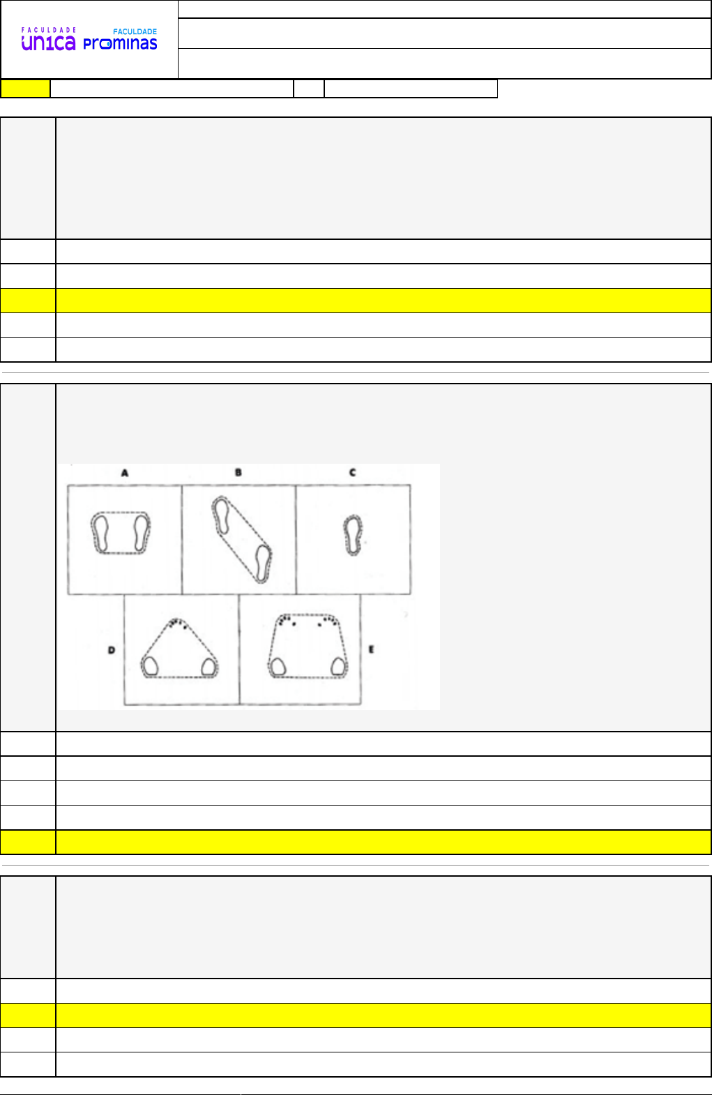 17/05/2024 12:58:06 1/3 REVISÃO DE SIMULADO Nome: MARCELO PEREIRA FARIAS DE SOUSA Disciplina: Biomecânica e Cinesiologia Respostas corretas são marcadas em amarelo X Respostas marcardas por você. Questão 001 Para realizar a alavancagem, as alavancas apresentam três pontos em sua constituição: o eixo (E), a força (F) e a resistência (R). Sendo assim, a disposição ou a localização dos três pontos em relação um ao outro determinam o tipo de alavanca e aplicação para a qual ela é mais adequada. Sabendo disso, como estão as disposições dos três pontos nas alavancas interfixa e na interpotente, respectivamente? A) F - E - R e E - R - F. B) E - F - R e F - E - R. X C) F - E - R e E - F - R. D) E - R - F e F - E - R. E) E - F - R e E - F - R. Questão 002 A base de sustentação é uma forma de manter o equilíbrio do corpo. Assim, quanto mais próxima a localização horizontal do centro de gravidade estiver do limite da borda da base de sustentação, menor será a força necessária para empurrá-lo para fora desta base, rompendo, assim, o equilíbrio. Com base nisso, veja as figuras a seguir: Qual tipo de apoio que representa a afirmação acima? Assinale a alternativa correta. A) Postura em quatro pontos. B) Apoio angulado (antero-posterior). C) Apoio quadrilátero (bípede). D) Postura em três pontos. X E) Apoio unipodal. Questão 003 O trabalho muscular baseia-se, portanto, na transformação de energia química em energia mecânica. A energia desprendida nas reações químicas é transferida para as moléculas de proteína dos filamentos de actina e miosina, fazendo com que elas mudem de posição e provoquem, em consequência, a contração muscular. Na cinesiologia aplicada, os tipos de trabalho muscular são: A) concêntrico, excêntrico e dinâmico. X B) concêntrico, excêntrico e isométrico. C) concêntrico, excêntrico e isostático. D) concêntrico, excêntrico e isocinético. 17/05/2024 12:58:06 2/3 E) concêntrico, excêntrico e isotérmico. Questão 004 A aplicação dos princípios da mecânica no estudo do movimento humano não é algo deste século. Leonardo da Vinci e Borelli já haviam escrito obras sobre este assunto. Atualmente a Biomecânica continua contribuindo enormemente para que os gestos técnicos continuem avançando em eficiência. Entre os conceitos básicos da biomecânica, existe o conceito de Torque. Leia as alternativas abaixo e escolha. A) É o produto de uma força dividido pela distância retilínea, em relação à sua linha de ação ao plano de movimento. B) É um ponto de intersecção dos três planos e dos três eixos principais do corpo humano. C) É um momento em que os três tipos de alavancas se interpõem gerando uma força máxima num segmento articular específico. X D) É o produto de uma força multiplicado pela distância perpendicular de sua linha de ação ao eixo de movimento. E) É o produto da força pela velocidade, que resulta na aceleração média. Questão 005 O exercício resistido pode ser classificado em categorias comparando a força gerada em um músculo ou grupo de músculos em relação a uma carga externa. Esta carga externa pode ser aplicada por diferentes mecanismos como um aparelho, uma pessoa (resistência manual), um objeto estacionário ou o peso corporal. O exercício em que a força interna gerada equivale à carga externa aplicada é X A) exercício isométrico. B) exercício isotônico. C) exercício adaptado. D) exercício pliométrico. E) exercício dinâmico. Questão 006 Alavancas são um sistema que contém uma estrutura firme / rígida que pode ser girada ao redor de um ponto / eixo, na qual duas forças são aplicadas em dois pontos. Elas podem gerar vantagens mecânicas, resultantes da relação entre o braço de potência (gerador da força) e o braço de resistência (gerador da resistência), podendo ser preditas quantitativamente, por meio da relação da magnitude do momento da força pela magnitude do momento da resistência. A esse respeito, relacione a COLUNA II com a COLUNA I, associando cada alavanca à sua característica específica. COLUNA I 1. Interfixa ou de equilíbrio – 1ª Classe 2. Inter-resistente – 2ª Classe 3. Interpotente – 3ª Classe COLUNA II ( ) Eixo de rotação em uma extremidade. Potência posicionada entre o ponto de apoio e a resistência. Projetadas para gerar velocidade às extremidades dos membros e movimentar baixo peso a longa distância. ( ) Eixo de rotação entre as forças opostas. Ponto de apoio estabelecido entre a resistência e a potência. Utilização muito comum para sustentação da postura ou equilíbrio. ( ) Eixo de rotação em uma extremidade. Resistência posicionada entre o ponto de apoio e a potência. Chamadas de braços de alavanca de força, na qual o braço de potência é maior que o braço de resistência. Assinale a sequência correta. A) 1, 2, 3. 17/05/2024 12:58:06 3/3 B) 2, 3, 1. C) 3, 2, 1. X D) 2, 1, 3. E) 3, 1, 2. Questão 007 Movimentos angulares ocorrem em torno de uma linha imaginária chamada eixo de rotação; desse modo, um atleta, ao realizar um giro em pé no eixo longitudinal (ou crânio caudal) ou um mortal para trás, no eixo transversal e na posição grupada, pratica movimentos que ocorrem em torno de um eixo que atravessa o centro de massa, mas com diferenças, principalmente, em relação ao grau de dificuldade. Assinale as alternativas corretas. I.O grau de dificuldade do giro em torno de eixo longitudinal será maior, pois o momento de inércia em torno do eixo é maior em relação ao giro no eixo transversal. Desse modo, a aceleração angular também será menor, devido o maior momento de inércia em relação ao eixo. II.A distribuição da massa em torno do eixo transversal é maior em relação ao eixo longitudinal, desse modo, a aceleração angular será maior no giro realizado no eixo longitudinal, já que há uma menor resistência à rotação em torno desse eixo. III.A mass