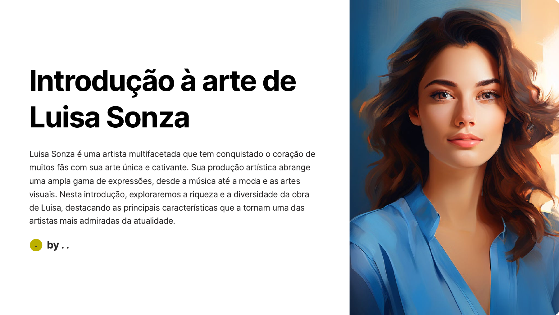 Introdução à arte de Luisa Sonza Luisa Sonza é uma artista multifacetada que tem conquistado o coração de muitos fãs com sua arte única e cativante. Sua produção artística abrange uma ampla gama de expressões, desde a música até a moda e as artes visuais. Nesta introdução, exploraremos a riqueza e a diversidade da obra de Luisa, destacando as principais características que a tornam uma das artistas mais admiradas da atualidade. by . ... Biografia de Luisa Sonza Luisa Sonza, nascida em Bento Gonçalves, Rio Grande do Sul, é uma cantora, compositora e influenciadora digital brasileira que conquistou o coração de milhares de fãs com sua arte única e inspiradora. Desde cedo, Luisa demonstrava uma paixão pela música, tendo aprendido a tocar violão e piano ainda na infância. Seus primeiros passos na carreira artística foram através de covers e vídeos publicados em suas redes sociais, onde sua voz potente e seu carisma cativaram o público. Após ganhar projeção no cenário musical, Luisa lançou seu primeiro single, "Boa Menina", em 2017, marcando o início de sua carreira solo. Desde então, a artista tem lançado diversos hits que refletem sua versatilidade e sua capacidade de se reinventar constantemente. Sua trajetória é marcada por colaborações com outros artistas renomados, bem como pelo engajamento em causas sociais e políticas, posicionando-se de forma corajosa e autêntica. Início da Carreira Musical O início da carreira musical de Luisa Sonza foi marcado por uma jornada determinada e cheia de paixão. Desde cedo, a artista demonstrava um talento inato para a música, tendo aprendido a tocar violão e piano ainda na infância. Seus primeiros passos foram dados através de performances de covers e a publicação de vídeos em suas redes sociais, onde sua voz potente e cativante conquistou um público cada vez maior. Após ganhar visibilidade e projeção no cenário musical, Luisa lançou seu primeiro single, "Boa Menina", em 2017, marcando oficialmente o início de sua carreira solo. Este lançamento foi um marco significativo, pois revelou a versatilidade e a capacidade da artista de se reinventar constantemente, explorando diferentes estilos e sonoridades. A partir deste momento, Luisa passou a lançar uma série de hits que refletem sua identidade artística única e sua habilidade em conectar-se profundamente com seu público. Influências e inspirações As influências e inspirações de Luisa Sonza são tão diversas quanto sua própria arte. Desde os primórdios de sua carreira, a artista demonstrou uma ampla gama de referências que moldaram seu estilo único e cativante. Seus maiores ícones musicais incluem nomes como Alanis Morissette, Amy Winehouse, Lana Del Rey e Billie Eilish, artistas que se destacam por sua autenticidade, letras introspectivas e sonoridades inovadoras. Além da música, Luisa também é profundamente inspirada pelas artes visuais, especialmente a pintura expressionista e surrealista. Ela cita artistas como Frida Kahlo e Salvador Dalí como grandes influências em sua própria imagem e estética. Essa confluência de música, poesia e arte visual é claramente refletida em sua produção artística, conferindo-lhe uma identidade única e visualmente impactante. https://pt.wikipedia.org/wiki/Frida_Kahlo https://pt.wikipedia.org/wiki/Salvador_Dal%C3%AD