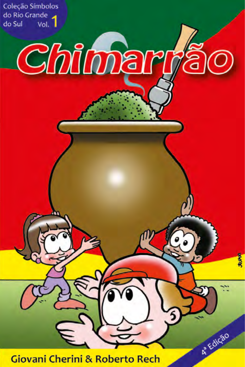 Um dia, ao retornar da escola, Felipe tentou explicar ao pai que o professor havia falado sobre o chimarrão, que é uma bebida saudável e símbolo do Rio Grande do Sul, entre outras coisas. Armando, seu pai, escutou atentamente o re- lato do filho, depois o abraçou e disse: - Felipe, orgulho-me muito de você por se interessar em conhecer mais sobre o chimarrão. O filho retribuiu o abraço, dizendo que iria procurar Chim, que, segundo o professor, era um grande entendido sobre a bebida. E saiu correndo para procurar seus colegas de aula para contar a decisão. - Gente, amanhã eu vou procurar o senhor Chim para fa- lar sobre o chimarrão. Quem vai me acompanhar? - Eu - gritou Lurdinha. - Eu também - disse Jacy. - Eu, eu, eu - gritaram todos. - Eu também - disse a professora Carla, que ouvia tudo no outro lado da sala. Ela abraçou Felipe carinhosamente e sabendo do interesse de todos em aprender mais sobre o chimarrão, logo anunciou a visita à casa de Chim. No dia seguinte, reuniu os alunos, orientou-os como de- veriam se comportar e partiram ao encontro de Chim. Na caminhada, o assunto era chimarrão. A maioria dos alunos disse que já havia provado em casa. Outros sabiam como era feito, mas nenhum conhecia a origem dele. Ao chegarem ao local, foram recepcionados por Chim. - Que bom que vocês vieram! A professora Carla me fa- lou do interesse de vocês em conhecer a minha história. - Sua história? - disse Felipe, surpreso. Sorrindo, o velho Chim piscou para a mestra. - Entrem na minha casa, crianças - disse ele. - Antes de mais nada, quero que saibam de algo muito importante. Todos ficaram em silêncio. Chim apontou para um estra- nho quadro na parede, onde se podia ler o seguinte: “Amargo doce que eu sorvo Num beijo em lábios de prata! Tens o perfume da mata Molhada pelo sereno. E a cuia, seio moreno Que passa de mão em mão, Traduz no meu chimarrão Em sua simplicidade, A velha hospitalidade Da gente do meu rincão." Glaucus Saraiva - poeta gaúcho - Estes versos são de autoria do poeta gaúcho Glaucus Saraiva. Pensei que vocês deviam ouvi-lo, antes da nossa conversa. Agora vamos formar uma roda de mate. - Roda de mate? Para quê? - perguntou Felipe. - Eu explico - disse Chim. - Isso é importante vocês sa- berem. A roda de mate é feita com o objetivo de unir as pessoas, independentemente de cor, raça ou classe social. Chim sentou-se no chão, pedindo que todas as crianças sentassem a sua volta. Chamou Felipe para perto dele e ofereceu-lhe o primeiro mate. - Mas, Chim! - disse Felipe, um pouco envergonhado. - Nada de "mas", guri. Pegue a cuia com a mão direita e sorva o mate com amor - disse Chim. - Hummm, gostoso! Quente! - disse Felipe. - Pois então continue, para ver o ronco que sai. Muito bem, crianças, agora vamos aprender um pouco mais sobre a bebida símbolo do Rio Grande do Sul. - O chimarrão foi descoberto pelos espanhóis 54 anos após o descobrimento do Brasil. É uma herança dos índios guaranis, que tinham como hábito fazer uma bebida com folhas fragmentadas, tomadas em um pequeno porongo através de um canudo de taquara. Eles chamavam essa be- bida de caá-i, que quer dizer água de erva saborosa. Com a cuia passando de mão em mão, as crianças acompa- nhavam atentas as explicações de Chim. - A água de erva saborosa, a qual os índios se referiram, é o que vocês estão tomando agora. Para fazer este chi- marrão, eu utilizei uma cuia feita de porongo, erva-mate e uma bomba de metal. A erva foi colhida de uma ervateira que eu plantei. Por isso, é chamada de erva-mate cultivada. Muitos municípios do Rio Grande do Sul, de Santa Catari- na, do Paraná, do Mato Grosso e alguns de São Paulo cul- tivam a erva-mate. A cuia que usamos é um porongo seco. É o fruto do porongueiro amadurecido sem as sementes. A bomba, como vocês podem ver, tem em torno de 25cm de comprimento por 6cm de diâmetro, achatada no bocal e, na parte que está em contato com a erva, um bojo oco cheio de furinhos. Felipe interrompeu Chim com uma pergunta: - Chim, estamos bebendo o chimarrão corretamente? - Vocês estão ótimos - respondeu ele. - Pelo que vejo, observaram bem como seus pais faziam. Aproveitando a pergunta de Felipe, Chim explicou como se bebe chimarrão: - Crianças, podemos utilizar o chimarrão de duas manei- ras: sob forma de mate doce ou como chimarrão. O mate doce tem adição de açúcar e é tomado principalmente pelas mulheres e crianças. Vejo que não é o caso de vocês, se apressou em dizer. O chimarrão é o que estamos bebendo. Consiste na infusão de erva-mate ao natural, sem mistura de nenhum outro ingrediente. A professora Carla pediu um minuto da atenção de todos para falar sobre os benefícios do chimarrão. Os olhares das crianças voltaram-se para ela. - A erva-mate contém muitos nutrientes necessários para o organismo. Estimula o coração e os nervos, dá mais resistência ao nosso corpo e melhora até a aprendizagem. - Oba! - falou Marcelo - Vou tomar chimarrão para me- lhorar as minhas notas na escola. A risada foi geral. Chim concordou com a professora Carla e em seguida começou a explicar como se faz um gostoso chimarrão. - Primeiro preencham uma cuia com 2/3 de erva. Agora vamos tapar a cuia e incliná-la ao ponto de encostar a erva- -mate num lado. Prestaram atenção? - Sim - disseram as crianças. - Agora, - continuou ele - na parte vaga, vamos colocar água morna. A água morna não deixa o chimarrão amargo. O próximo passo é colocarmos a água para o chimarrão. A temperatura dela é de 64°. Não é recomendado ferver esta água. - Estão conseguindo acompanhar? - perguntou a profes- sora Carla. Enquanto isso, Chim tapou a boca da bomba com o dedo polegar e colocou-a dentro da cuia descendo rente à sua parede. Em seguida ele mostrou para as crianças. - Vejam, se a água descer após eu retirar o dedo é por- que o chimarrão está pronto. E está - disse ele, contente. As crianças agradeceram a Chim pel
