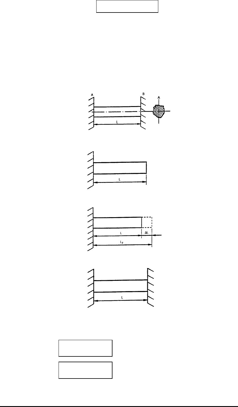 SENAI/SC Resistência dos Materiais 39 Para os casos de resfriamento da peça, ( t –t0 ) < 0, portanto: ∆l = -l0 . α . ∆t 66..22 TTeennssããoo TTéérrmmiiccaa Suponhamos, agora, o caso de uma peça biengastada, de comprimento transversal A, conforme mostra a figura. Se retirarmos um dos engastamentos, a variação de temperatura ∆t > 0, provocará o alongamento da peça (dilatação), uma vez que a peça estará livre. Com a engastamento duplo, originar-se-á uma carga axial, que reterá o alongamento da peça. Peça livre a uma temperatura inicial ( t0 ). Dilatação ∆l originada pela variação de temperature ( ∆l > 0 ). Dilatação contida pela reação dos engastamentos. A variação linear devido a variação de temperature ∆l (t) e a variação linear devido à carga axial de reação ∆l (R), são iguais, pois a variação total é nula, desta forma, temos: ∆l (t) = ∆l (R) Força axial térmica atuante na peça F = A . E . α .∆t
