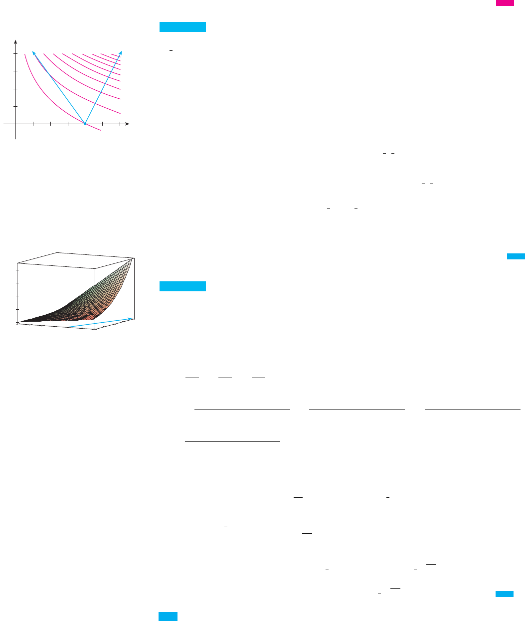 onde u é o ângulo entre f e u. O valor máximo de cos u é 1 e isso ocorre quando u � 0. Logo, o valor máximo de Du f é � f � e ocorre quando u� 0, ou seja, quando u tem a mesma direção que f. (a) Se f (x, y) � xey, determine a taxa de variação de f no ponto P(2, 0) na direção de P a Q( , 2). (b) Em que direção f tem a máxima taxa de variação? Qual é a máxima taxa de variação? SOLUÇÃO (a) Primeiro calcularemos o vetor gradiente: f (x, y) � k fx, fyl� ke, xeyl f (2, 0) � k1, 2l O vetor unitário na direção PQA � k�1,5, 2l é u � k� , l, logo a taxa de variação de f na direção que vai de P a Q é Du f (2, 0) � f (2, 0) � u � k1, 2l � k� , l � 1(� ) � 2( ) � 1 (b) De acordo com o Teorema 15, f aumenta mais depressa na direção do gradiente f (2, 0) � k1, 2l. A taxa máxima de variação é � f (2, 0)� � �k1, 2l� � √ – 5 Suponha que a temperatura em um ponto (x, y, z) do espaço seja dada por T(x, y, z) � 80/(1 � x2 � 2y2 � 3z2), onde T é medida em graus Celsius e x, y e z em metros. Em que direção no ponto (1, 1, �2) a temperatura aumenta mais rapidamente? Qual é a taxa máxima de aumento? SOLUÇÃO O gradiente de T é 1 2 EXEMPLO 6 EXEMPLO 7 4 5 3 5 4 5 3 5 4 5 3 5 844 CÁLCULO FIGURA 7 Q ±f(2, 0) 0 1 3 1 2 P x y FIGURA 8 20 5 0 1 3 x y z 10 1 15 0 0 2 2 Em (2, 0) a função no Exemplo 6 aumenta mais rápido na direção do vetor gradiente f (2, 0) � k1, 2l. Na Figura 7 observe que esse vetor parece ser perpendicular à curva de nível que passa por (2, 0). A Figura 8 mostra o gráfico de f e o vetor gradiente. � 160 �1 � x 2 � 2y 2 � 3z2 �2 ��x i � 2y j � 3z k� � � 160x �1 � x 2 � 2y 2 � 3z2 �2 i � 320y �1 � x 2 � 2y 2 � 3z2 �2 j � 480z �1 � x 2 � 2y 2 � 3z2 �2 k T � T x i � T y j � T z k No ponto (1, 1, �2), o vetor gradiente é Pelo Teorema 15, a temperatura aumenta mais rapidamente na direção do vetor gradiente T(1, 1, �2) � (�i � 2j � 6k) ou, de forma equivalente, na direção de �i � 2j � 6k ou o vetor unitário . A taxa máxima de aumento é o módulo do vetor gra- diente Portanto, a taxa máxima de aumento da temperatura é . Planos Tangente às Superfícies de Nível Suponha que S seja a superfície com a equação F(x, y, z) � k, ou seja, uma superfície de nível de uma função F de três variáveis, e seja P(x0, y0, z0) um ponto em S. Seja C qualquer curva na superfície S e que passe pelo ponto P. Lembremo-nos da Seção 13.1 que a curva C é des- crita por uma função vetorial contínua r(t) � kx(t), y(t), z(t)l. Seja t0 o valor do parâmetro 5 8 s41 � 4�C�m T�1, 1, �2� � 160 256 ��i � 2 j � 6 k� � 5 8 ��i � 2 j � 6 k� T �1, 1, �2� � 5 8 �i � 2 j � 6 k � 5 8 s41 ��i � 2 j � 6 k��s41 5 8 Calculo14_06:calculo7 5/24/13 7:31 PM Page 844 14- Derivadas Parciais 14.6 Derivadas Direcionais e o Vetor Gradiente Planos Tangente às Superfícies de Nível