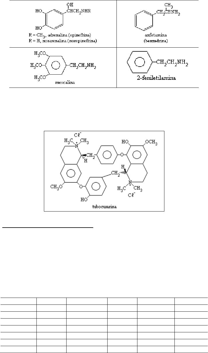 43 As células nervosas interagem entre si ou com os músculos através de junções denominadas sinapses. Os impulsos nervosos são transmitidos através das sinapses pelos neurotransmissores como a acetilcolina. H3CCOOCH2CH2N +(CH3)3 O receptor da acetilcolina na membrana pós-sináptica dos músculos é o sítio de ataque de algumas neurotoxinas como a Tubocurarina (curare) e a Tetrodotoxina (baiacu). XIV – COMPOSTOS HETEROCÍCLICOS São compostos cíclicos em que ao menos um dos carbonos foi substituído por um outro átomo, geralmente O, N ou S. Para a sua nomenclatura, a IUPAC recomenda a nomenclatura de Hantzsch-Widman para heterociclos até 10 átomos, que emprega primeiramente um prefixo relativo ao heteroátomo presente no anel e a nomenclatura básica que indica tanto o número total de átomos e a presença ou ausência de insaturações. O nome pode incluir mais de um prefixo, conforme tenha mais de um heteroátomo presente. Um prefixo multiplicativo para vários heteroátomos iguais e números para sua locação. Havendo, também, combinação com outros aspectos da nomenclatura orgânica, indicando substituição, anéis fundidos, etc. O prefixo indica o tipo de heteroátomo presente no anel. Existe uma prioridade, se houver mais de um tipo de heteroátomo no sistema, prevalece a ordem alfabética contrária, e.g., o prefixo “oxa” (para o oxigênio), sempre vira antes do prefixo “aza” (para o nitrogênio). Elemento Prefixo Elemento Prefixo Elemento Prefixo Fluor fluora Telúrio telura Germânio germana Cloro clora Nitrogênio aza Estanho stana Bromo broma Fósforo fosfa Chumbo plumba Iodo ioda Arsênio arsa Boro bora Oxigênio oxa Antimônio stiba Mercúrio mercura Enxofre thia Bismuto bisma Selênio selena Silício sila Para a cadeia principal, a escolha é por vezes complicada e não completamente padronizada. Os principais critérios são: a) O número total de átomos no anel, tanto carbonos quanto heteroátomos. b) A presença de insaturações. c) A natureza dos heteroátomos. A prioridade dos heteroátomos cresce na sequência: F, Cl, Br, I, O, S, Se, Te, N, P, As, Sb, Bi, Si, Ge, Sn, Pb, B, Al, Ga, In, Tl, Hg. 44 A seguir os nomes dos anéis conforme o número de átomos presentes (nomes entre parênteses indicam presença de nitrogênio). Anel Saturado Insaturado Anel Saturado Insaturado 3 -irano (-iridino) -ireno (-irino) 6C (P) -inano -inino 4 -etano (-etidino) -eto 7 -epano -epino 5 -olano (-olidino) -olo 8 -ocano -ocino 6A (O,S) -ano -ino 9 -onano -onino 6B (N) -inano -ino 10 -ecano -ecino Classificação baseada na estrutura eletrônica Os compostos heterocíclicos podem ser classificados baseado em sua estrutura eletrônica. Os compostos heterocíclicos saturados comportam-se como seus derivados acíclicos. Portanto, a Piperidina e o Tetrahidrofurano são aminas e éteres convencionais com um perfil estrutural modificado. Porém, o estudo dos compostos heterocíclicos foca especialmente os derivados insaturados e a preponderância dos trabalhos e aplicações envolve anéis de 5 e 6 membros. Nestes, estão incluídos a Piridina, o Tiofeno, o Pirrol e o Furano. Outra grande classe de heterocíclicos são os que apresentam anéis aromáticos fundidos a si. Para a Piridina, Tiofeno, Pirrol e Furano são, respectivamente, Quinolina, Benzotiofeno, Indol e Benzofurano. A presença de mais um anel benzênico origina a terceira grande família de compostos, respectivamente, a Acridina, Dibenzotiofeno, Carbazol e Dibenzofurano. Os anéis insaturados podem ser classificados conforme a participação do heteroátomo no sistema-π. Anéis de três membros Os heterociclos com três átomos mais comuns são: Heteroátomo Saturado Insaturado Nitrogênio Aziridina Azirina Oxigênio Oxirano (óxido de etileno, epóxidos) Oxireno Enxofre Tiirano (epissulfetos) Tiireno Anéis com quatro membros Contendo um heteroátomo: Heteroátomo Saturado Insaturado Nitrogênio Azetidina Azeto Oxigênio Oxetano Oxeto Enxofre Tietano Tieto Anéis com cinco membros Nos heterociclos de cinco membros, os compostos insaturados geralmente são mais estáveis pois existe a possibilidade de aromaticidade. Os anéis com um heteroátomo são: Heteroátomo Saturado Insaturado Nitrogênio Pirrolidina Pirrol Oxigênio Tetrahidrofurano Furano Enxofre Tiolano Tiofeno Fósforo Fosfolano Fosfol Os anéis de cinco membros contendo dois heteroátomos onde ao menos um deles é um nitrogênio são chamados de “azóis”. Tiazóis e Isotiazóis possuem um átomo de enxofre e um de nitrogênio no anel. Ditiolanos possuem dois átomos de enxofre. Heteroátomo Saturado Insaturado (e parcialmente insaturado) Imidazolidina Imidazol (Imidazolina) N/N Pirazolidina Pirazol (Pirazolina) Oxazolidina Oxazol (Oxazolina) N/O Isoxazolidina Isoxazol Tiazolidina Tiazol (Tiazolina) N/S Isotiazolidina Isotiazol