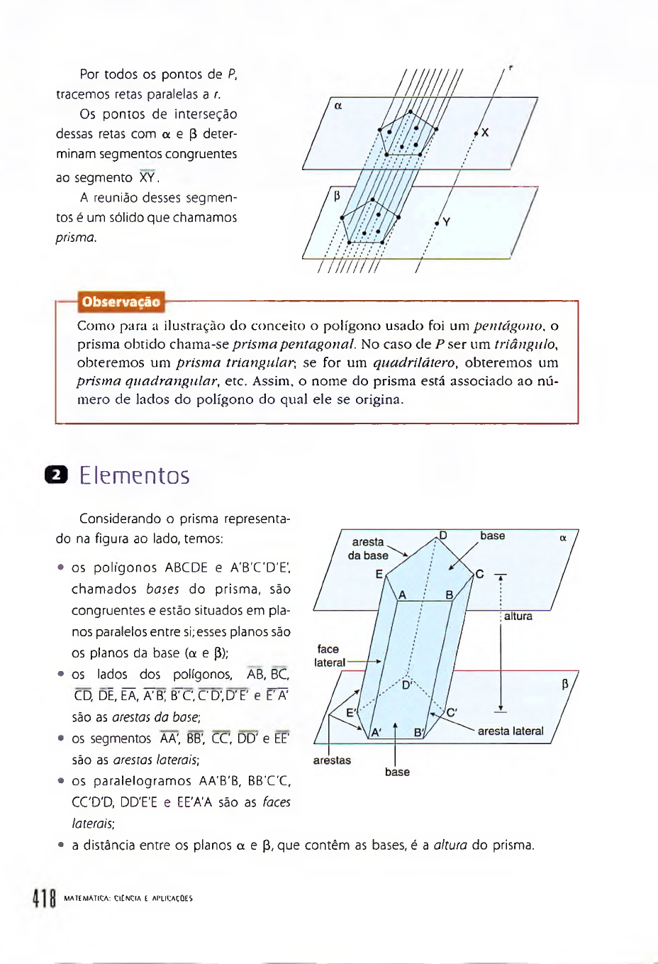 • a distância entre os planos a e 3, que contêm as bases, é a altura do prisma.