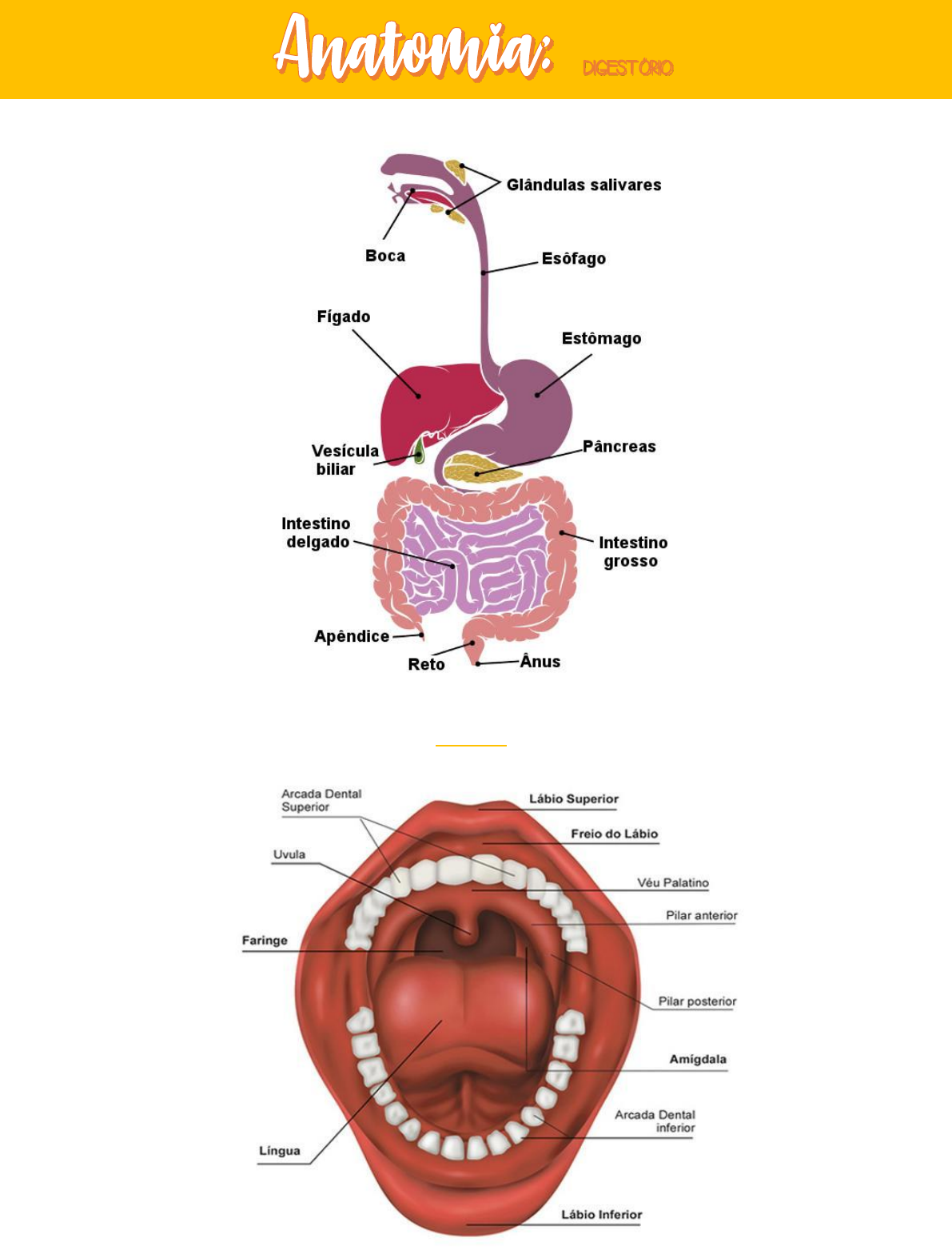 @poli.canuto Jk BOCA @poli.canuto Vestíbulo da boca Cavidade própria da boca Lábios superiores e inferiores Gengivas Palato duro e palato mole Úvula Arco palatoglosso Arco palatofaríngeo Tonsilas palatinas Fauce @poli.canuto DENTES: Há um incisivo central, dois incisivos laterais, dois caninos, dois oré-molares e 3 molares. LÍNGUA: Papilas circunvaladas Papilas folhadas Papilas fungiformes Papilas filiforme Raiz, corpo e ápice Sulco mediano da língua @poli.canuto GLÂNDULAS SALIVARES: ESOFÂGO: @poli.canuto ESTÔMAGO: @poli.canuto INTESTINO DELGADO: Duodeno: @poli.canuto INTESTINO GROSSO @poli.canuto PÂNCREAS: @poli.canuto FÍGADO @poli.canuto @poli.canuto