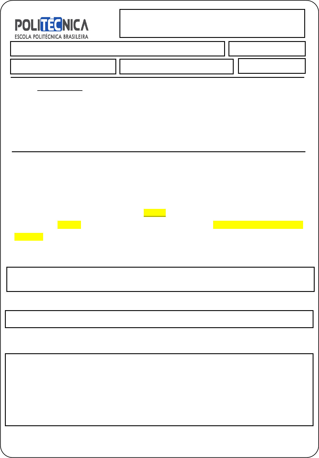 Atividade 02: Segurança em Eletricidade 1) Complete: O item 10.4.2 da NR 10 diz: Nos trabalhos e nas atividades referidas devem ser adotadas medidas preventivas destinadas ao controle dos riscos adicionais, especialmente quanto a altura, confinamento, campos elétricos e magnéticos, explosividade, umidade, poeira, fauna e flora e outros agravantes, adotando-se a a sinalização de segurança. 2) Descreva, com suas palavras, o que você entende por análise de riscos. 3) Cite os principais fatores considerados na análise de riscos.? 4) Quais os principais fatores considerados na ocorrência do ato inseguro? NR 10 – Segurança em Eletricidade Aluno (a): Pedro Paulo de Moraes Nerto Data: 07/07/2024 Atividade 02 NOTA: INSTRUÇÕES: ❖ Esta Avaliação de pesquisa contém 11 questões, totalizando 10 (dez) pontos. ❖ Você deve preencher dos dados no Cabeçalho para sua identificação o Nome / Data de entrega ❖ Utilize o espaço delimitado abaixo de cada questão para desenvolver suas respostas. ❖ Só serão aceitas as respostas que estiverem dentro do espaço delimitado. ❖ Ao terminar grave o arquivo com o nome Atividade de Pesquisa 01 (nome do aluno). ❖ Salve o arquivo no formato .pdf e envie o arquivo pelo sistema. ❖ R: é o processo no qual se avalia a real probabilidade de acontecer um cenário socioeconômico adverso aos objetivos da empresa, que possam significar verdadeiras ameaças a probabilidade de sua incidência, o histórico existente e a intensidade de cada possível evento. • Confiança excessiva; • Desconhecimento ou treinamento insuficiente; • Fatores psicológicos; • Má interpretação do perigo; • Negligência, descuido e falta de atenção no cumprimento da tarefa ou obrigação; • Más condições de saúde física e orgânica; • Imperícia, inabilidade, incompetência, incapacidade Atividade 02: Segurança em Eletricidade 5) Descreva os principais fatores considerados na ocorrência das condições inseguras. 6) Marque veradeiro (V) ou falso (F): ( F ) O trabalhador envolvido na execução de uma atividade não necessita conhecer e dominar as técnicas necessárias para realizar a tarefa; ( V ) Mesmo diante de todo o planejamento desenvolvido, podem ocorrer imprevistos na realização do trabalho; ( F ) Na execução das atividades diárias, o trabalhador está exposto somente aos denominados riscos adicionais; ( F ) O trabalhador que, em determinado dia, esqueceu os EPIs necessárias à sua atividade pode trabalhar sem restrições, pois ele garante que é conhecedor profundo da tarefa e no dia seguinte virá munido dos equipamentos de proteção individual. 7) Apresente o conteúdo mínimo de um procedimento de trabalho determinado pela NR 10: 8) De acordo com a NR 10, quais são as medidas prioritárias de segurança que devem ser adotadas na execução de qualquer serviço em instalação elétrica? 9) Cite os sete que passos que devem ser tomados para considerar uma instalação desenergizada: Manutenção inadequada dos equipamentos; Proteção insuficiente; Limpeza abaixo do padrão de qualidade; Falta de sinalização, entre outros 10.11.3 Os procedimentos de trabalho devem conter, no mínimo, objetivo, campo de aplicação, base técnica, competências e responsabilidades, disposições gerais, medidas de controle e orientações finais. De acordo com a NR 10, as medidas prioritárias de segurança que devem ser adotadas na execução de qualquer serviço em instalação elétrica são: - Desenergização elétrica; - Aterramento funcional; - Equipotencialização; - Seccionamento automático da alimentação; - Dispositivos de proteção; - Isolamento das partes viva.etc. 1. Seccionamento; 2. Impedimento de reenergização; 3. Constatação da ausência de tensão; 4. Instalação de aterramento temporário com equipotencialização dos condutores dos circuitos; 5. Proteção dos elementos energizados existentes na zona controlada; 6. Instalação da sinalização de impedimento de reenergização. Atividade 02: Segurança em Eletricidade 10) Quais são as características da vesitmenta para os trabalhos com eletricidade, conforme a NR 10? 11) Qual o nível mínimo de tensão a que se aplica a NR 10? O que é alta tensão para a NR 10? A vestimenta deve ser de cor branca ou clara, para facilitar a visualização de sujeiras e manchas, que podem indicar problemas no isolamento de equipamentos elétricos. Além disso, as peças devem ser resistentes ao fogo e às descargas elétricas. Hoje todas as instalações que sejam acima de 1000 Volts em corrente alternada ou 1500 volts em corrente contínua são consideradas alta tensão, enquanto correntes abaixo de 50 volts em corrente alternada ou 120 volts em corrente contínua são denominados de tensão de segurança ou extra baixa tensão.