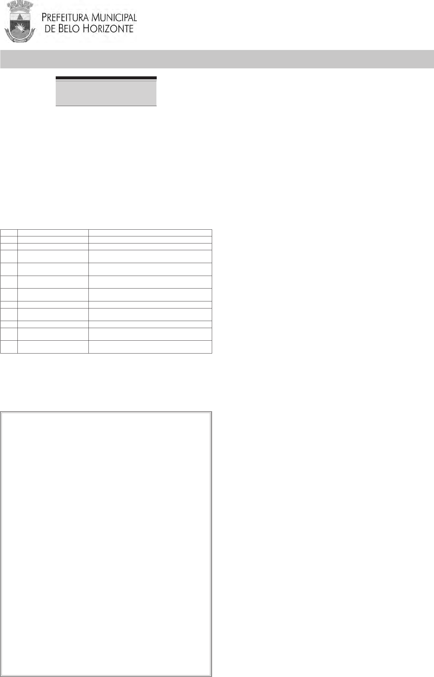 ALTERAÇÃO EDITAL INSTRUTORIA SUGESP 01/2020 A Secretaria Municipal de Planejamento, Orçamento e Gestão – SMPOG, da Prefeitura Municipal de Belo Horizonte, por meio da Subsecretaria de Gestão de Pessoas – SUGESP, no uso das atribuições que lhe são conferidas pelo Decreto nº 16.849 de 23 de fevereiro de 2018, comunica a alteração no EDITAL INSTRUTORIA SUGESP 01/2020, publicado no Diário Oficial do Município de Belo Horizonte em 29 de fevereiro de 2020, prorrogando o período de inscrição: Onde se lê: 3.6 – As inscrições, por meio eletrônico, para a instrutoria, estarão abertas das 9h da manhã do dia 03/02/2020 às 17h do dia 13/03/2020, impreterivelmente. Leia-se: 3.6 – As inscrições, por meio eletrônico, para a instrutoria, estarão abertas das 9h da manhã do dia 03/02/2020 às 17h do dia 20/03/2020, impreterivelmente. ANEXO II CRONOGRAMA Item Atividades Datas 1 Divulgação do Edital A partir de 29/02/2020 2 Período de Inscrições De 03/03/2020 a 20/03/2020 3 Avaliação da Documentação Até 10 dias úteis a partir do encerramento das inscrições pela internet 4 Publicação dos Resultados da Classificação A ser publicada no Diário Oficial do Município e site da PBH 5 Abertura de Processo de Recurso Até 2 dias úteis após o Resultado da Pontuação da Documentação 6 Julgamento do Recurso Até 3 dias úteis após o encerramento do Período de entrada de Recursos 7 Período de Aula-Teste A ser publicado no Diário Oficial do Município e site da PBH 8 Publicação dos Resultados da Aula Teste A ser publicada no Diário Oficial do Município e site da PBH 9 Abertura de Processo de Recurso Até 2 dias úteis após o Resultado da Aula Teste 10 Julgamento do Recurso Até 3 dias úteis após o encerramento do Período de entrada de Recursos 11 Homologação do Resultado Final do Processo Seletivo - Instrutoria A ser publicado no Diário Oficial do Município e site da PBH ATO DA SUBSECRETÁRIA DE GESTÃO DE PESSOAS ATO Nº 009/2020 A Subsecretária de Gestão de Pessoas, no exercício de suas atribuições, designa RENATA JOCELINE SALES E SILVA REZENDE, BM 084.859-3, para substituir PATRICIA SANTOS FENDLER, BM 102.506-4, na função gratificada de Secretário Escolar I, da EMEI Santa Maria, da Diretoria Regional de Educação Oeste, da Secretaria Municipal de Educação, durante seu impedimento por motivo de Licença Maternidade pelo período de 27/02/20 a 24/08/20, nos termos do art. 28 da Lei nº 7.169/96. GERÊNCIA DE GESTÃO DE TEMPO, DIREITOS E BENEFÍCIOS DESPACHOS DA GERENTE Retificação DOM 01/08/2019 Torna sem efeito a progressão por escolaridade (especialização) de SANDRA REGINA MOREIRA MAIA, BM 46.384-5 a partir de 01/05/2019, por ter sido concedida indevidamente. (Servidora já alcançou limite de níveis previsto para progressão por escolaridade). PROGRESSÃO POR ESCOLARIDADE CARREIRA DA EDUCAÇÃO 01 (um) nível pela conclusão de Especialização: SMED - ACILEIA DO CARMO SAYDE, BM 40.692-2 a partir de 01/10/2019; - ADEANE DUARTE CRUZEIRO, BM 79.430-2 a partir de 01/08/2019; - ADEANE DUARTE CRUZEIRO, BM 94.287-5 a partir de 01/10/2019; - ADELIA APARECIDA LAGE, BM 75.587-0 a partir de 01/11/2019; - ADRIANA APARECIDA DE MOURA OLIVEIRA, BM 78.277-0 a partir de 01/10/2019; - ADRIANA APARECIDA DE MOURA OLIVEIRA, BM 96.494-1 a partir de 01/10/2019; - ADRIANA APARECIDA MENEZES DOS REIS, BM 73.795-3 a partir de 01/11/2019; - ADRIANA CRISTINA GONCALVES BRAGA, BM 113.626-5 a partir de 01/10/2019; - ADRIANA DE ABREU DE PAULA SILVA, BM 112.918-8 a partir de 01/10/2019; - ADRIANA DOS SANTOS FREITAS, BM 109.164-4 a partir de 01/10/2019; - ADRIANA FERREIRA ASSIS, BM 93.851-7 a partir de 01/11/2019; - ADRIANA LUCIA PEREIRA AZEVEDO, BM 97.075-5 a partir de 01/10/2019; - ADRIANA ROCHA DA SILVA, BM 108.819-8 a partir de 01/11/2019; - ADRIANA RODRIGUES DA SILVA, BM 96.414-3 a partir de 01/11/2019; - ADRIANA TEREZINHA DOS SANTOS, BM 82.009-5 a partir de 01/10/2019; - ADRIANE CORREA PEREIRA HENRIQUES, BM 101.182-9 a partir de 01/10/2019; - ADRIANE REGINA GOMES DA SILVA, BM 112.800-9 a partir de 01/11/2019; - ADRIENE FERREIRA DE FREITAS NUNES, BM 77.370-4 a partir de 01/10/2019; - ADRIENE FERREIRA DE FREITAS NUNES, BM 81.778-7 a partir de 01/10/2019; - AIDE BRAGA AZEVEDO E OLIVEIRA, BM 92.853-8 a partir de 01/11/2019; - ALCIONE NUNES DE OLIVEIRA, BM 107.377- 8 a partir de 01/11/2019; - ALCIONE VIEIRA DE PAIVA, BM 101.314-7 a partir de 01/10/2019; - ALDAIR DA SILVA PEREIRA, BM 42.154-9 a partir de 01/11/2019; - ALDANEIDE VIEIRA LIMA, BM 46.114-1 a partir de 01/11/2019; - ALESSANDRA ALVES MENDONCA DOS SANTOS, BM 96.947-1 a partir de 01/10/2019; - ALESSANDRA GOMES PEREIRA DOS REIS, BM 109.723-5 a partir de 01/10/2019; - ALESSANDRA VIEGAS DO AMARAL, BM 104.037-3 a partir de 01/10/2019; - ALEXANDRA CARLA CARVALHO AGUIAR ROMANO, BM 49.697-2 a partir de 01/10/2019; - ALEXANDRE FERNANDES VIEIRA, BM 83.989-6 a partir de 01/10/2019; - ALINE DE MELO SOUZA, BM 107.220-8 a partir de 01/11/2019; - ALINE MARLENE DE OLIVEIRA LOPES, BM 84.766-X a partir de 01/11/2019; - ALOIDIA DA CONCEICAO MARTINS ANDRADE, BM 93.853-3 a partir de 01/10/2019; - AMALIA PIRES DE SOUZA, BM 78.147-2 a partir de 01/11/2019; - AMALIA PIRES DE SOUZA, BM 81.176-2 a partir de 01/11/2019; - AMANDA ALVES SOUSA DE OLIVEIRA, BM 112.786-X a partir de 01/10/2019; - AMANDA APARECIDA BARBOZA DA SILVA SANTOS, BM 108.756-6 a partir de 01/11/2019; - AMELIA JUNQUEIRA ANDRADE DE CARVALHO, BM 85.880-7 a partir de 01/11/2019; - ANA CAROLINA FARIA CORTES, BM 74.046- 6 a partir de 01/10/2019; - ANA CAROLINA FERREIRA GOTSCHALG, BM 106.245-8 a partir de 01/10/2019; - ANA CAROLINA FERREIRA GOTSCHALG, BM 108.543-1 a partir de 01/10/2019; - ANA CAROLINA GOMES MARTINS, BM 101.569-7 a partir de 01/11/2019; - ANA CAROLINE DAVID DUARTE, BM 95.927- 1 a partir de 01/10/2019; - ANA CAROLINE DAVID DUARTE, BM 104.639-8 a partir de 01/10/2019; - ANA CRISTINA SANCHES NEVES, BM 45.893-0 a partir de 01/11/2019; - ANA ELISA ROQUE 