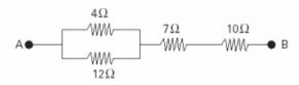Ciências da Natureza 1) Três resistores idênticos de R = 30 Ω estão ligados em paralelo com uma bateria de 12 V. Pode-se afirmar que a resistência equivalente do circuito é de: a) Req = 10 Ω, e a corrente é 1,2 A. b) Req = 20 Ω, e a corrente é 0,6 A. c) Req = 30 Ω, e a corrente é 0,4 A. d) Req = 40 Ω, e a corrente é 0,3 A. e) Req = 60 Ω, e a corrente é 0,2 A. 2) Num circuito elétrico, dois resistores, cujas resistências são R1 e R2, com R1 > R2, estão ligados em série. Chamando de i1 e i2 as correntes que os atravessam e de V1 e V2 as tensões a que estão submetidos, respectivamente, pode-se afirmar que: a) i1 = i2 e V1 = V2. b) i1 = i2 e V1 > V2. c) i1 > i2 e V1 = V2. d) i1 > i2 e V1 < V2. e) i1 < i2 e V1 > V2. 3) Entre os pontos A e B do trecho de circuito elétrico abaixo, a ddp é 80V. A potência dissipada pelo resistor de resistência 4 é: a) 4W b) 12W c) 18W d) 27W e) 36W 4) Dentro de uma caixa com terminais A e B, existe uma associação de resistores. A corrente que atravessa a caixa em função da tensão aplicada nos terminais A e B é dada pela tabela. A caixa poderia conter: a) b) c) d) e) 5) Dois resistores, de resistências R0 = 5,0 e R1 = 10,0 são associados em série, fazendo parte de um circuito elétrico. A tensão V0 medida nos terminais de R0, é igual a 100V. Nessas condições, a corrente que passa por R1 e a tensão nos seus terminais são, respectivamente: a) 5 x 10-2 A; 50 V. b) 1,0 A; 100 V. c) 20 A; 200 V. d) 30 A; 200 V. e) 15 A; 100 V. 6) Qual é a resistência equivalente da associação a seguir? a) 80 b) 100 c) 90 d) 62 e) 84 7) Qual é a resistência equivalente da associação a seguir? a) Req = 20 b) Req = 30 c) Req = 10 d) Req = 20/3 e) Req = 15 8) Dois resistores R1 = 20 e R2 = 30 são associados em paralelo. À associação é aplicada uma ddp de 120V. Qual é a intensidade da corrente na associação? a) 10,0 A b) 2,4 A c) 3,0 A d) 0,41 A e) 0,1 A 9) Qual é a resistência equivalente da associação a seguir? a) 20,0 b) 6,6 c) 78/15 d) 25 e) 50/15 10) Na associação de resistores da figura a seguir, os valores de i e R são, respectivamente: a) 8 A e 5 b) 16 A e 5 c) 4 A e 2,5 d) 2 A e 2,5 e) 1 A e 10 11) No trecho de circuito elétrico a seguir, a ddp entre A e B é 60V e a corrente i tem intensidade de 1A. O valor da resistência do resistor R é: a) 10 ohm b) 8 ohm c) 6 ohm d) 4 ohm e) 2 ohm 12) Considere os valores indicados no esquema a seguir que representa uma associação de resistores. O resistor equivalente dessa associação, em ohms, vale: a) 8 b) 14 c) 20 d) 32 e) 50 13) Considere o esquema a seguir. A resistência equivalente do conjunto de resistores entre os pontos X e Y é, em ohms, igual a: a) 8 b) 13 c) 28 d) 45 e) 70 GABARITO 1. A 2.B 3.E 4.C 5.C 6.D 7.E 8.A 9.B 10.B 11.B 12.E 13.C image7.png image8.png image9.png image10.png image11.png image12.png image13.png image14.png image1.png image2.png image3.png image4.png image5.png image6.png