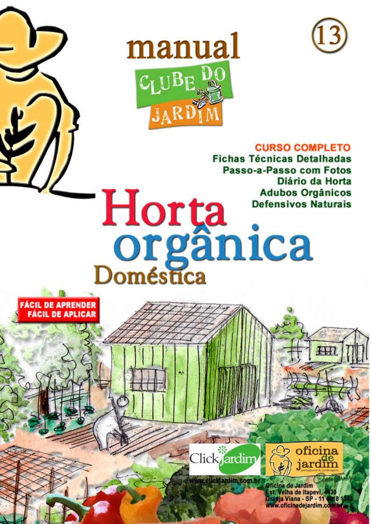 MÓDULO 1 INTRODUÇÃO & PLANEJAMENTO Porque fazer uma Horta Orgânica - 05 Tabelas de nutrientes - fontes e funções - 06 Escolhendo o local da horta - 08 Sugestões de lay-outs - 09 Ferramentas equipamentos e insumos - 11 O “lixo” da horta - compostagem - 15 Escolhendo o que plantar - 17 Fichas técnicas de verduras, legumes, ervas e temperos - 20 MÓDULO 2 EXECUÇÃO & PLANTIO O Solo - construindo o solo de plantio - 36 O Solo -Material orgênico, CTC e pH - 38 Anatomia, Fisiologia e Nutrição vegetal - 40 Construindo a sua horta - 42 Modelos de canteiros - 43 Plantando - sementes e mudas - 47 Acompanhando a horta - dia-a-dia - 50 Colhendo - 52 Apêncice - Fazendo suas prórpias mudas - 56 MÓDULO 3 MANEJO & TRATOS CULTURAIS Cuidados com o solo - 61 Rega - 63 Manejo básicos de condução - 64 Adubos e Adubações - 68 Identificação e controle de pragas e doenças - 72 Calda de fumo - 79 Calda bordalesa - 81 MÓDULO 1 INTRODUÇÃO & PLANEJAMENTO Porque fazer uma Horta Orgânica Tabelas de nutrientes - fontes e funções Escolhendo o local da horta Sugestões de lay-outs Ferramentas equipamentos e insumos O “lixo” da horta - compostagem Escolhendo o que plantar Fichas técnicas de verduras, legumes, ervas e temperos O QUE SERÁ ENSINADO NESSE CURSO O objetivo desse manual é ensinar passo-a-passo com fotos e ilustrações como planejar, implantar, cultivar e manter uma HORTA ORGÂNICA DOMÉSTICA. Está dividido nos seguintes MÓDULOS: INTRODUÇÃO: Neste capítulo iremos salientar a importância da agricultura orgânica e apresentaremos a importância e as principais funções das vitaminas e dos sais minerais para o corpo humano, observando que as verduras, ervas e legumes são as melhores fontes desses nutrientes. Módulo 1 - PLANEJANDO A SUA HORTA: Aqui daremos os fundamentos básicos para se implantar uma horta, desde a escolha do local com sugestão de lay-outs, detalhando as ferramentas e utensílios que serão necessários e apresentando as fichas e tabelas de plantio e cultivo de 50 espécies. Aqui também colocamos um passo-a-passo para você fazer um suporte para ferramentas pequenas. Módulo 2 - EXECUÇÃO E PLANTIO: Neste ponto já estamos com mãos à obra. Desde a construção dos canteiros, produção de mudas em sementeiras, sugestão para o cultivo em pequenos canteiros e floreiras e as hortas completas do plantio à colheita. Módulo 3 - MANEJO E TRATOS CULTURAIS: Esta é a etapa mais importante para o sucesso da sua horta. Aqui você vai aprender como manter, defender, manejar e adubar a sua horta. Podendo assim dar continuidade a sua plantação para nunca faltar verduras e legumes orgânicos em sua mesa. Nesses 3 MÓDULOS estão todos os fundamentos para se ter uma horta orgânica doméstica de 1ª qualidade. Bom proveito. Carlos Torres 4 PORQUE FAZER UMA HORTA ORGÂNICA A agricultura convencional que utiliza os agro químicos fertilizantes e agro tóxicos, dispõe de diversas técnicas para o crescimento e cultivo dos vegetais, outrossim a certeza do crescimento e da beleza das plantas levou os produtores a esquecerem da importância nutricional para manutenção e saúde dos seres vivos. Ineficiência nutricional dos vegetais cultivados no sistema agrícola convencional é um dos fatores que devem determinar a montagem de uma HORTA ORGÂNICA DOMÉSTICA, outro fator de suma importância é o respeito com o meio ambiente e a qualidade de vida. Dispondo de apenas 10m2 de espaço em local ensolarado já é o suficiente para se iniciar uma horta que vai alimentar duas pessoas. Mesmo que a quantidade de pessoas seja maior para o desfrute da HORTA esse não deve ser motivo para não fazê-la. Veja a seguir as principais fontes e as funçções no organismo humano das vitaminas e dos sais minerais. As Vitaminas e os Sais Minerais Sais Minerais . Cobre . Enxofre . Ferro . Flúor . Fósforo . Iodo . Magnésio . Manganês . Potássio . Sódio . Zinco Vitaminas . Vitamina A . Vitamina B1 . Vitamina B2 . Vitamina B5 . Vitamina B6 . Vitamina B12 . Vitamina C . Vitamina D . Vitamina E . Vitamina K 5 As principais fontes e as funções das vitaminas e sais minerais no organismo humano SAIS MINERAIS NOME - SIGLA FUNÇÕES MELHORES FONTES SINAIS DE DEFICIÊNCIA Cobre - Cu Formação dos glóbulos vermelhos do sangue (hemoglobina). Necessário na absorção do ferro. Couve, aspargo, espinafre, centeio, lentilha, batatas, banana, passas, ameixas, cereja, damasco, avelã, amêndoa e tâmara Baixa produção de hemoglobina. Depressão e deficiência respiratória. Enxofre - S Contribui para formação e regeneração de tecidos. Vital para a saúde da pele, cabelo e unhas. Trigo e germe de trigo, aveia, ervilha, feijão, couves, arroz integral, repolho, agrião, maçã, uva,castanha e cebola. Crescimento defieciente de unhas, cabelos, eczema e dermatite. Ferro - Fe Indispensável na formação da hemoglobina, no transporte de oxigênio para as células, na formação de ossos, músculos e cabelos. Arroz integral, semente de gergelim e de abóbora, alho-poró, aipo, feijões, salsa, espinafre, brócolis, agrião, quiabo, couve, aspargo, couve-flor, cenoura, abóbora, ervilhas, lentilha e grão-de-bico. Anemia, atrofiamento, baixa vitalidade, deficiência respiratória, palidez, fadiga constante e unhas quebradiças. Flúor - F Constituição de ossos e dentes. Previne a dilatação das veias e constribui na formação do sangue, pele, unhas e cabelos. Agrião, alho, aspargo, aveia, beterraba, brócolis, cenoura, couve, couve-flor, cebola, pepino e salsa. Cáries em excesso, queda de dos dentes. Curvatura da coluna. Vista fraca. Fóforo - P Necessário na formação dos ossos e dentes. Contração do músculo cardíaco. Importante na função pulmonar. Necessário no medtabolismo das vitaminas. Cereais integrais, couves, alcachofra, ervilha, castanha de caju e do Pará, lentilha seca, grão-de- bico, agrião, alho-poró, nabo, sementes de girassol, cebola, laranja, abacate e