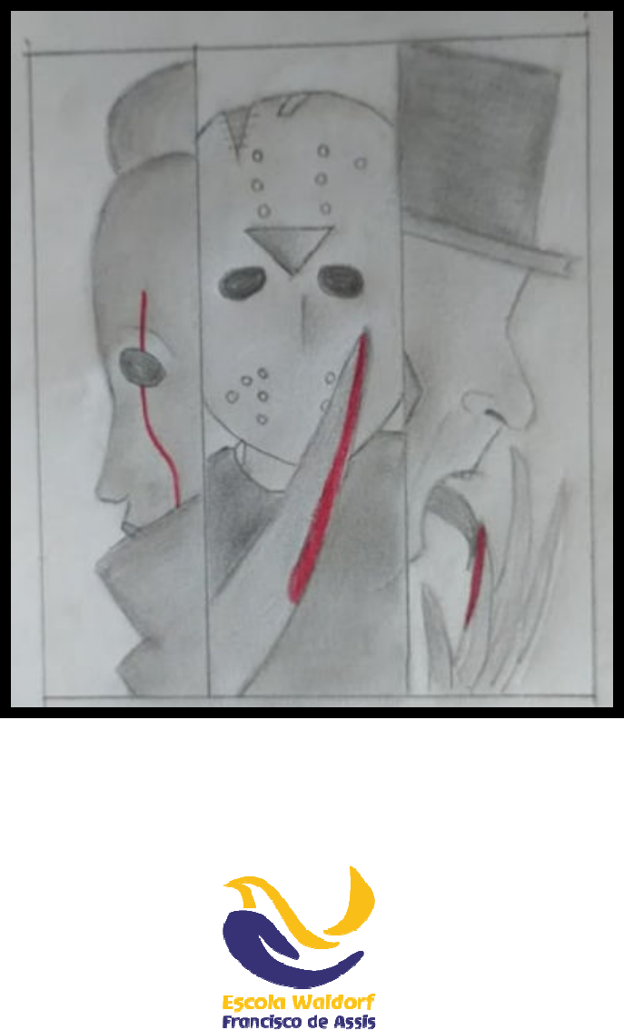CONTOS DE MISTÉRIO E DE TERROR 7º ano ÍNDICE PREFÁCIO 3 A ÁRVORE DO GRANDE HERÓI 4 ISABEL 5 MIGUEL E O CACHORRO-DO-MATO 7 O GATO PRETO 8 O VULTO 9 TIOS “SAMARITANOS” 10 UMA NOITE TENEBROSA NA ESCOLA WALDORF FRANCISCO DE ASSIS 12 VOCÊ ARRISCARIA SUA VIDA PELA VERDADE? 13 3 PREFÁCIO Neste trabalho, você encontrará uma coletânea de contos de mistério e de terror redigidos pelos próprios estudantes. Com o objetivo de fomentar o interesse e despertar nos educandos o gosto pela leitura de forma descontraída e criativa, o gênero “conto” foi explorado com eles desde o primeiro dia da segunda época do ano, tendo como fio condutor a leitura de alguns contos latinos. As redações foram desenvolvidas em casa e trabalhadas nas aulas de Técnicas de Redação, mesmo de maneira remota. O conto, ainda nos séculos a.C., tinha tradição oral; com a escrita, passou a ser registrado. Os primeiros registros do gênero datam de 4000 a.C. e estão até hoje percorrendo os livros de literatura. Muitos nomes são renomados no conto mundial, como Perrault, Irmãos Grimm, La Fontaine e Miguel de Cervantes. Na década de 1920, o conto passou por algumas mudanças. Além de perder espaço nos jornais, a tecnologia também fez com que se criassem espécies de manuais de como escrever contos. Todavia, a essência permaneceu e, até hoje, a maneira é a mesma: envolvente, surpreendente e intensa. O conto é uma forma narrativa breve, que pertence ao agrupamento do narrar e se relaciona à cultura literária ficcional. Como as demais narrativas ficcionais, apresenta sequência narrativa de ações imaginárias como se fossem reais, envolvendo personagens em um determinado tempo e um determinado espaço. Essas ações são contadas por um narrador. No entanto, é preciso salientar que a construção das descrições espaciais, no caso do conto de assombração, tem um papel crucial para a sugestão do clima de mistério e suspense. Esta preciosa manifestação literária, muito explorada por Edgar Allan Poe, é inspiradora. Espera-se que este trabalho inquiete e intrigue seus leitores, despertando emoções e sensações nunca antes vividas. Priscila Takats 4 A ÁRVORE DO GRANDE HERÓI Era uma vez, na escola Waldorf Francisco de Assis, um garoto chamado Pedro. Ele, um dia, sumiu! Dois dias depois, ele foi encontrado morto na sala de Artes. Tudo isso ocorreu em 1981. Depois de 40 anos do assassinato de Pedro, um garoto chamado Edu e seu amigo Ian foram chamados para ver o ateliê de artes. Quando eles entraram, a sala estava toda empoeirada. Depois de duas horas naquela sala, tentando limpar a sujeira, eles disseram: - Vamos embora! Neste exato momento, eles ouviram o que parecia um quadro cair. Os meninos foram até o local e viram um coelhinho no chão. De repente, uma figura apareceu atrás deles! Era uma pintura do Pedro, chamado "TERROZILA". Eles foram embora, correndo por toda a escola, mas as portas estavam fechadas. Então, eles decidiram que um teria de ficar sozinho enquanto o outro procuraria por ajuda. - Eu fico. – disse Eduardo. Depois de algumas horas, Ian forçou o portão, consegui abri-lo um pouco e disse: - Venha, Eduardo! Acho que conseguimos passar! Eles dois conseguiram fugir, mas TERROZILA pulou o portão e, de repente, em suas mãos, estava Pedro, falecido há 40 anos. Eduardo perguntou: - Como é possível? Pedro não está morto? Pedro disse: - Eu só morri porque seu tatatatataravó, Jonh Papisckys, me matou. Agora, eu vou dar o troco matando você, EDUARDOOOOOO!!!!! - Ouviram isso? – Perguntou Eduardo, que ficou paralisado. – Ian, vai embora! Ian disse: - Não irei sem você! Eduardo gritou: - AGORAAAA!!!!!!!!!! O monstro pegou Eduardo! No momento final, o pobre aluno estava no chão, morto. No outro dia, seus amigos e sua família enterraram seu corpo debaixo da árvore grande que há na escola e, assim, ela foi batizada de “A ÁRVORE DO GRANDE HERÓI”. Edu 5 ISABEL Em novembro de 1953, uma moça chamada Isabel Lodge foi morar em uma cidade no interior do Texas. Ela era uma menina muito carismática e alegre que sempre tentava ajudar as outras pessoas. Ela havia acabado de se mudar de uma cidade pouco conhecida, chamada Bannack. Nessa cidade, tinha um hotel chamado Meade que seus pais eram donos. Na cidade nova, ela fez vários amigos e era chamada para várias festas. Certo dia, como qualquer outro, ela foi numa festa na casa de Sophie, famosa por organizar eventos deste tipo. No entanto, esse dia foi diferente... Uma das suas amigas, que Isabel se inspirava, desapareceu no meio da festa. Ninguém viu nada, só ouviram um grito. Todos acharam estranho, mas não quiseram investigar. Isabel encontrou o corpo da amiga morta dias depois. Ela ajudou a família, consolando-a e organizando o funeral. Todavia, essas mortes repetiram... Sempre que isso ocorria, Isabel ajudava a família a se recuperar e, quando estava melhorando, mais alguém morria. Existia um intervalo de duas festas sem morte e uma com assassinato. Os adolescentes não aguentavam mais perder amigos e foram investigar a casa de Sophie, a menina que dava as festas. Enquanto estavam observando a garota, uma das meninas esbarrou em um vaso que caiu no chão e quebrou. Nesse momento, Sophie olhou com uma cara de assustada, como alguém que é pego fazendo algo errado. Neste exato momento, os adolescentes viram um enorme vulto preto com olhos vermelhos, como carvões em brasa, virando em sua direção e começando a correr atrás deles. Os adolescentes não viram Isabel, mas nem ligaram, pois estavam mais preocupados em correr por suas vidas. Eles acharam que o vulto a havia matado! Começaram a fugir o mais rápido que podiam, até que entraram numa escola e trancaram o portão atrás deles. Mal haviam fechado o portão, o vulto bateu nele e o amassou terrivelmente. Os adolescentes subiram correndo as escadas para fugir, porém acabaram numa sala sem saída, onde não tinha nada que lhes fosse útil n