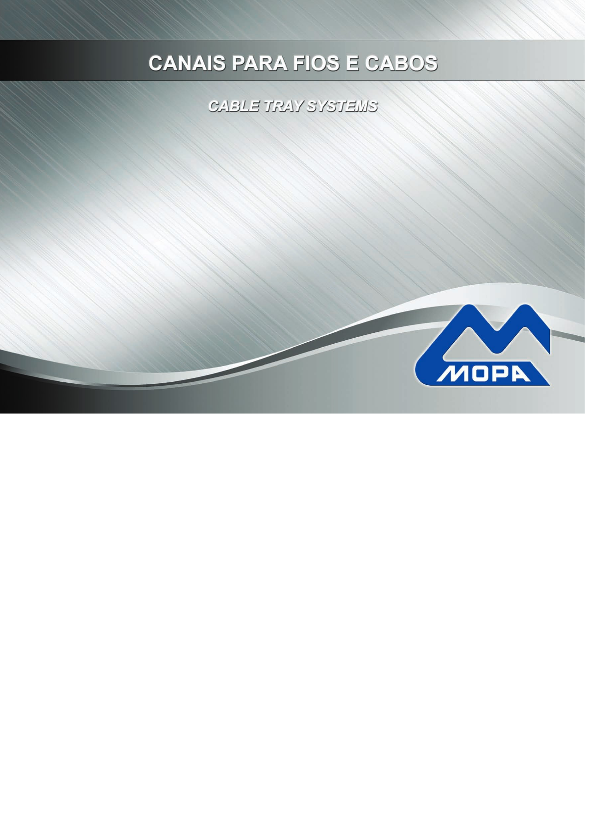 2 ELETROFORT® ECOFORT® ELETROCALHA LEITO PARA CABOS LEITOFORT® PERFORT® PERFORT ECO® ELEMENTOS DE FIXAÇÃO RODAFLEX® MOPOST® 08 14 16 20 25 34 34 38 42 44 SOBRE A MOPA06 APRESENTAÇÃO04 LEITO NAVAL30 PRESENTATION MATÉRIA PRIMA E APLICAÇÕES07 ABOUT MOPA RAW MATERIAL AND FINISHING ECOFORT® CABLE TRAY ELETROFORT® CABLE TRAY STANDARD CABLE TRAY LEITOFORT® LADDER TRAY STANDARD LADDER TRAY MARINE LADDER TRAY PERFORT® CHANNEL PERFORT ECO® CHANNEL FASTENERS AND FIXING ELEMENTS STEEL PERIMETER TRUNKING POWER POLE TRUNKING 3 PERFORT® SISTEMAS PARA CONTRAPISO SISTEMAS PARA PISO ELEVADO CAIXAS LUME® ALT. 7647 CAIXA LUME® P/ PISO EM PLACAS57 CAIXAS LUME® ALT. 5648 CAIXA LUME® P/ PISO MONOLÍTICO58 CAIXAS STD® 49 CAIXAS STD® P/ PISO EM PLACAS59 CAIXAS DE PASSAGEM CX REDONDA P/ PISO EM PLACAS60 MOPADUTOS® 54 46 56 50 TRUNKING FLOOR SYSTEMS FLOOR OUTLET BOX LUME® 76 JUNCTION BOX UNDERFLOOR DUCTING RAISED FLOOR TRUNKING SYSTEMS CAVITY FLOOR BOX LUME® MONOLITHIC FLOOR BOX LUME® CAVITY FLOOR BOX STD® GROMMETS FLOOR BOX FLOOR OUTLET BOX LUME® 56 FLOOR OUTLET BOX STD® 4 Neste Catálogo abordaremos os produtos da nossa Divisão de Canais para Fios e Cabos composta por: Sistemas de Bandejamento, Sistemas Aparentes, Sistemas para Contrapiso e Piso Elevado, conforme descritos abaixo. Informações complementares, novos lançamentos e demais linhas de produtos MOPA, estão disponíveis em nosso site: www.mopa.com.br. SISTEMAS PARA CONTRA PISO E PISO ELEVADO Mopaduto® Caixas de Tomada Lume® Caixas de Tomada STD® Caixas de Passagem Caixas de Tomada Redonda Tomadas e Tampões Eletrofort® Ecofort® Eletrocalha Leitofort® Leito Naval Leito p/ Cabos Perfort® Perfort Eco® SISTEMAS DE BANDEJAMENTO RodaÀex® Mopost® Tomadas e Tampões SISTEMAS APARENTES PRESENTATION We introduce in this catalogue the products of our Cable Tray Systems Section composed by: Cable Tray Systems, Floor Trunking Systems and Perimeter Trunking Systems. Additional information, new releases and other lines of the MOPA products can be found on our website: www.mopa.com.br. CABLE TRAY SYSTEMS Standard Cable Tray Eletrofort® Cable Tray Ecofort® Cable Tray Standard Ladder Tray Leitofort® Ladder Tray Marine Ladder Tray Perfort® Channel Perfort Eco® Channel IN THIS BROCHURE: FLOOR TRUNKING SYSTEMS Floor Trunking - Mopaduto® Floor Boxes - Lume® and STD® (with lid & trim assemblies ) Passage Floor Boxes Grommets Floor Boxes Sockets and Plugs Perimeter Trunking - RodaÀex® Power Pole Trunking - Mopost® Sockets and Plugs PERIMETER TRUNKING SYSTEMS 5 PERFORT® GALVANIZED STEEL SHEET - Plates and Blanks; - 0,35 to 1,95mm thickness; - Up to 6.000mm. in length. GALVANIZED STEEL ROLL - 0,35 to 1,95mm thichness; - Customized rolls (Slitter). SPECIAL PROFILING - Pro¿les produced according to the client’s design; - Ask for a technical visit. To get further information about this produtcs, ask for a speci¿c brochure. Reservamo-nos o direito de fazer alterações a qualquer tempo, sem prévio aviso. Direitos reservados. É proibida a reprodução parcial ou total desta publicação, sem autorização da MOPA Ind. e Com. Ltda. The company has the right to introduce changes at any time with no previous notice. All rights reserved. The repro- duction of all or any part of this publication without the MOPA Ind. e Com. authorization is forbidden. CHAPAS GALVANIZADAS - Chapas e Blanks; - Espessuras de 0,35 até 1,95mm; - Comprimentos de até 6.000mm. ROLOS GALVANIZADOS - Espessuras de 0,35 até 1,95mm; - Produção de rolos (slitter) personalizados. PERFIS ESPECIAIS - Per¿s produzidos de acordo com o seu projeto; - Solicite uma visita técnica. Para maiores informações sobre estes produtos, solicite o catálogo especí¿co. _________ _ _ _ _ _ _ _ _ _ _ _ _ _ _ _ _ _ _ _ _ _ _ __ _ _ _ _ _ _ _ _ __ ANOTAÇÕES / NOTES OTHER PRODUCT LINES: 6 INOVAÇÃO INNOVATION CONFIABILIDADE RELIABILITY GARANTIA ASSURANCE QUALIDADE QUALITY PROJETOS ESPECIAIS SPECIAL DESIGN ACABAMENTOS FINISHING TECNOLOGIA TECHNOLOGY EQUIPE ESPECIALIZADA SPECIALIZED STAFF No mercado desde 1954 e com um moderno parque industrial, instalado numa área de 45.000 m², a Mopa atua no de- senvolvimento de produtos metalúrgicos e é líder no segmento de canais para ¿os e cabos. Ao longo destes anos, a MOPA sempre lançou produtos inova- dores, que se tornaram referên- cia de mercado. Foi pioneira na utilização de chapa pré zincada a fogo; no emprego de soluções tec- nológicas diferenciadas, como a união de chapas pelo processo de recravamento à frio, que não causa danos ao revestimento de zinco; e no desenvolvimento de estruturação mecânica das chapas de aço, com redução signi¿cativa do peso dos produtos e superação da performance mecânica solicitada. ABOUT MOPA - 59 YEARS OF PIONEERING INNOVATION: In the market since 1954 with an updated industrial park located in a 45,000 sqm area, Mopa works in the development of metallurgical products and it is leader in cable tray systems. Along these years, Mopa has always launched innovative products that have become a market reference. Pioneer in the use of Hot Dip pre-galvanized plate, the use of several technological solutions, such as the process of cold joining of plates that does not cause damages to the zinc coating and the development of mechanical steel sheet structure with a signi¿cant lower weight of products and surpassing the required mechanical performance. 7 PERFORT® Matéria Prima e Acabamento Os materiais e acabamentos disponíveis estão designados a seguir. As letras indicadas entre parênteses são utilizadas para a identi¿cação do acabamento e ou material solicitados, devendo ser colocadas como último dígito do código dos produtos. (Z) - Chapa pré zincada à fogo - Norma NBR 7008 Aço SAE 1008/1010 (baixo teor de carbono) zincado pelo processo contínuo de imersão a quente, onde o revestimento é obtido através da imersão da tira de aço num banho de zinco fund