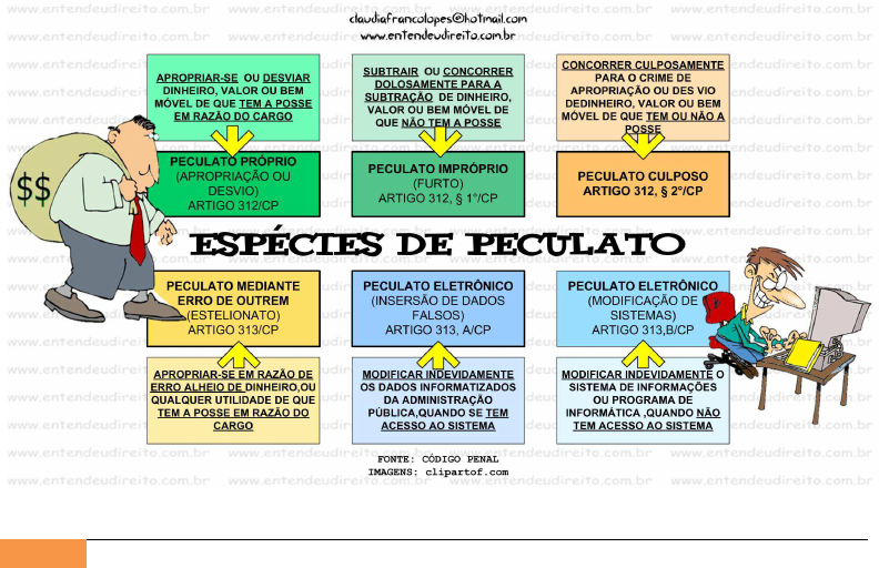 CONCORRER CULPOSAMENTE SUBTRAIR OU CONCORRER APROPRIAR-SE ou DESVIAR PARA o CRIME DE DOLOSAMENTE PARA A DINHEIRO. VALOR BEM APROPRIAÇÃO DES VIO MÓVEL DE QUE TEM A POSSE SUBTRAÇÃO DE DINHEIRO, VALOR OU BEM VALOR BEM MÓVEL DE EM RAZÃO DO CARGO DE QUE TEM NÃO A QUE NÃO TEM A POSSE endeudireito.com POSSE PECULATO PRÓPRIO PECULATO IMPRÓPRIO $$ (APROPRIAÇÃO PECULATO CULPOSO (FURTO) DESVIO) ARTIGO 312, § ARTIGO 312, § 2°/CP ARTIGO 312/CP DE PECULATO PECULATO MEDIANTE PECULATO ELETRÔNICO PECULATO ELETRÔNICO ERRO DE OUTREM (INSERSÃO DE DADOS (MODIFICAÇÃO DE (ESTELIONATO) FALSOS) SISTEMAS) ARTIGO 313/CP ARTIGO A/CP ARTIGO 313,B/CP APROPRIAR-SE EM RAZÃO DE MODIFICAR INDEVIDAMENTE MODIFICAR INDEVIDAMENTE o ERRO ALHEIO DE os DADOS INFORMATIZADOS SISTEMA DE INFORMAÇÕES QUALQUER UTILIDADE DE QUE DA ADMINISTRAÇÃO PROGRAMA DE TEM A POSSE EM RAZÃO DO SE TEM INFORMÁTICA QUANDO NÃO CARGO ACESSO AO SISTEMA TEM ACESSO AO SISTEMA endeudirei com CÓDIGO PENAL IMAGENS: clipartof.com
