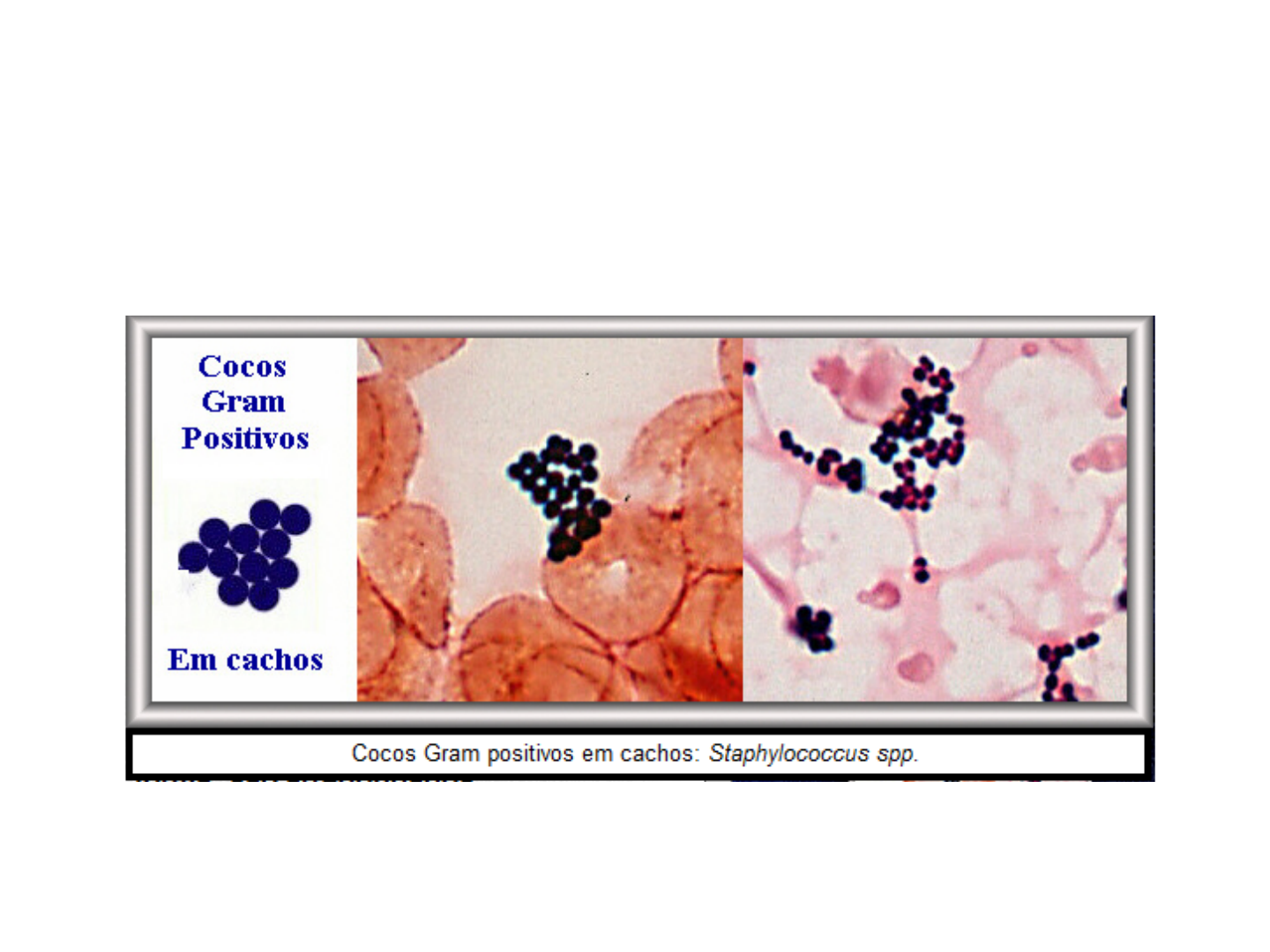 Isolamento e identificação dos Estafilococos Importância Clínica dos EstafilococosStaphylococcus aureus Intoxicação alimentar (produção de enterotoxinas) Síndrome do choque tóxico Infecções hospitalares Osteomielite Endocardite Bacteremia MRSA (Staphylococcus aureus resistente à meticilina) VRSA (Staphylococcus aureus resistente à vancomicina) VISA (Staphylococcus aureus com resistencia intermediária à vancomicina) Staphylococcus epidermidis Staphylococcus saprophyticus Abcessos Síndrome da pele escaldada Toxina: Esfoliatina Intoxicação alimentar Síndrome do choque tóxico Isolamento dos Estafilococos Staphylococcus aureus Staphylococcus epidermidis Staphylococcus saprophyticus Identificação de Estafilococos 1) Prova da Catalase 2) Prova da Coagulase 3) Resistência à Novobiocina 4) Crescimento em ágar Manitol 5) Prova da DNAse Prova da Catalase Conversão de peróxido de hidrogênio a 3% em água e oxigênio pela ação da catalase. 2H2O2 → H2O + O2 + Estafilococo s - Estreptococos OBS: Cuidado para não coletar ágar sangue junto com a colônia usada no teste → falso positivo porque o sangue do agar contém catalase. Prova da Catalase Staphylococcus spp Streptococcus spp S. epidermidis S. saprophyticus Fibrinogênio → Fibrina + - S. aureus Prova da Coagulase Inocular colônia de bactéria em plasma de coelho → incubar 37 ºC por 1-4 horas e observar formação de fibrina Prova da coagulase em tubo Staphy test Ágar Manitol (7,5% NaCl) Manitol salgado Crescimento e fermentação (amarelo) Sem Crescimento ou sem fermentação (rosa ou vermelho) S. aureus S. epidermidis S. saprophyticus Ágar Manitol (7,5% NaCl) Prova da DNAse Ágar DNAse S. aureus + - S. epidermidis S. saprophyticus Semear uma colônia em ágar DNAse e incubar a 35 graus por 24 horas. No momento da leitura adicionar HCl 1N sobre a placa, aguardar 30 segundos e observar a formação de um halo claro ao redor da colônia. PROVA DA DNAse Prova de sensibilidade à Novobiocina Ágar Mueller-Hinton com disco de Novobiocina (5 microgramas) Sensível ( - ) Resistente (+) S. aureus S. epidermidis S. saprophyticus Tabela para identificação de cocos Gram + Catalase + (Staphylococcus spp.) Coagulase Manitol DNAse Novobiocina S. aureus + + + Sensível S. epidermidis - - - Sensível S. saprophyticus - - - Resistente Todos são Catalase + Identificação de MRSA • Teste de sensibilidade à oxacilina • Teste de sensibilidade à cefoxitina • PCR para o gene mecA • Detecção de PBP2a por aglutinação Teste de sensibilidade à oxacilina e cefoxitina PCR para mecA Aglutinação – Slidex (Biomerieux)