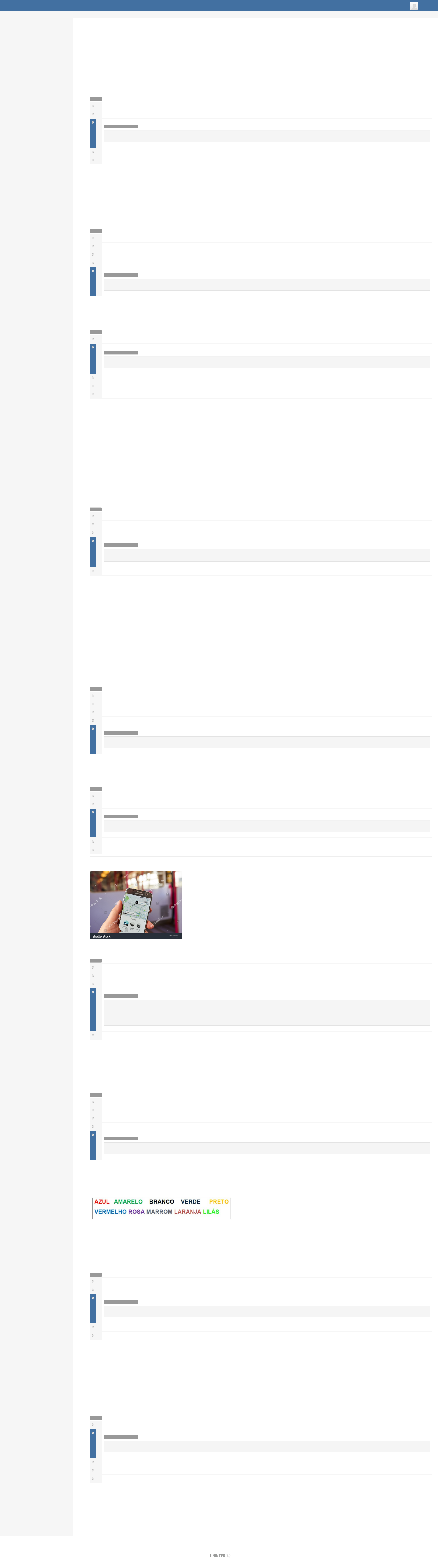 VoltarAvisos CURSO: CST ANÁLISE E DESENVOLVIMENTO DE SISTEMAS - DISTÂNCIA AVALIAÇÃO » NOVO Atenção. Este gabarito é para uso exclusivo do aluno e não deve ser publicado ou compartilhado em redes sociais ou grupo de mensagens. O seu compartilhamento infringe as políticas do Centro Universitário UNINTER e poderá implicar sanções disciplinares, com possibilidade de desligamento do quadro de alunos do Centro Universitário, bem como responder ações judiciais no âmbito cível e criminal. Questão 1/10 - Design de Interação A psicologia cognitiva tem por objetivo compreender a cognição humana por meio do estudo do comportamento; uma definição mais ampla também inclui o estudo da atividade e da estrutura cerebral. Considerando o texto-base e os vídeos sobre o conteúdo, analise as assertivas que seguem: I. A psicologia cognitiva estuda os processos envolvidos em dar sentido ao ambiente e decidir que ação deve ser apropriada. II. Os processos cognitivos ocorrem de forma isolada de maneira a não sobrecarregar os usuários ao desenvolverem suas tarefas. III. Os processos cognitivos são interdependentes, vários processos podem estar envolvidos em uma determinada atividade. IV, A psicologia cognitiva como o objetivo de compreender a cognição humana por meio da observação do comportamento das pessoas enquanto executam várias tarefas cognitivas. São corretas apenas as afirmativas: Nota: 10.0 A I, IV B I, II e IV C I, III e IV Você assinalou essa alternativa (C) D II, III E Todas as afirmativas estão corretas. Questão 2/10 - Design de Interação O Design Sprint foi também utilizado no GV, antigo Google Ventures, firma de capital de risco criada pelo Google para investir em startups promissoras. Em geral, essas empresas têm apenas uma chance de criar um produto de sucesso antes de ficarem sem dinheiro. Os sprints permitiam que os autores soubessem se estavam no caminho certo antes de se arriscarem a desenvolver e lançar seus produtos. Conduzir sprints era uma chance de economizar e gerar dinheiro. Considerando o uso da metodologia de design sprint os vídeos sobre o conteúdo, analise as assertivas que seguem: I. O design sprint é dividido em cinco etapas. II. No primeiro dia é possível já fazer o esboço da aplicação. III. No segundo dia já é apresentada a proposta ao cliente. IV. O quinto dia é o dia dos testes. Pode-se convidar pessoas para participar dos testes. São corretas apenas as afirmativas: Nota: 10.0 A II, III e IV B I, II e III C II e III D I, III e IV E I e IV Você assinalou essa alternativa (E) Questão 3/10 - Design de Interação Nos sites de compra, ao se utilizar a metáfora do carrinho de compras está sendo assertivo e utilizando uma das heurísticas de Nielsen. Leia as heurísticas abaixo e identifique a que se refere ao exemplo do carrinho de compras. Nota: 10.0 A Visibilidade do Sistema. B Correspondência entre o sistema e mundo real. Você assinalou essa alternativa (B) C Consistência e padrões D Prevenção de erros. E Flexibilidade e eficiência de uso Questão 4/10 - Design de Interação Design de experiência é a prática de projetar produtos, processos, serviços, eventos e ambientes com foco na qualidade e no aproveitamento da experiência total. O design preocupa-se com a forma como as coisas funcionam, como são controladas e com a natureza da interação entre as pessoas e a tecnologia. Norman, Don. The Design of Everyday Things, 2013 Considerando que você é um designer e irá participar do desenvolvimento de um aplicativo, analise as assertivas que seguem e marque V para as asserções verdadeiras, e F para as asserções falsas. I. ( ) Após o aplicativo ser desenvolvido, devemos compreender o porquê ele será utilizado. II. ( ) Antes do desenvolvimento, devemos saber "o quê ", "por que" e "como" se dará o contexto de uso do aplicativo. III. ( ) Após o desenvolvimento do aplicativo devemos verificar quem será o usuário do aplicativo. IV. ( ) Experiencia no contexto de uso de um aplicativo ultrapassa as funcionalidades, considera também se é agradável de ser usado Agora, selecione a alternativa que apresenta a sequência correta: Nota: 10.0 A F – V – V – V B V – V – F – V C V – V – V – F D F – V – F – V Você assinalou essa alternativa (D) E F – V – F – F Questão 5/10 - Design de Interação A usabilidade, também referenciada como fatores humanos, corresponde ao estudo de como os seres humanos se relacionam com qualquer produto. As práticas de usabilidade poderiam ser implementadas em tudo, de uma torradeira a uma maçaneta, ou até mesmo à embalagem de ambos. LOWDERMILK, T. DESIGN CENTRADO NO USUÁRIO: UM GUIA PARA O DESENVOLVIMENTO DE APLICATIVOS AMIGÁVEIS. São Paulo: Novatec Editora, 2013 Alguns estudiosos contribuíram com pesquisas em usabilidade, relacione corretamente os estudos às suas respectivas características: 1. Colmeia da Usabilidade 2. Hierarquia das necessidades de Maslow 3. Hierarquia das necessidades ergonômicas e hedonômicas 4. Hierarquia das necessidades do consumidor ( ) Necessidades: fisiológicas, de segurança, sociais, autoestima, autorrealização. ( ) Necessidades: funcionalidade, usabilidade e prazer. ( ) Utilidade, usabilidade, encontrabilidade, acessibilidade, confiança, valor e desejo. ( ) Segurança, Funcionalidade, Usabilidade, experiência prazerosa e individualização. Agora, selecione a alternativa que apresenta a sequência correta: Nota: 10.0 A 2 – 3 – 1 – 4 B 1 – 3 – 2 – 4 C 3 – 1 – 4 – 2 D 2 – 3 – 4 – 1 E 2 – 4 – 1 – 3 Você assinalou essa alternativa (E) Questão 6/10 - Design de Interação Ao interpretar e compreender os objetivos e funcionalidades de uma tela de um sistema ou aplicativo que é utilizado pela primeira vez, o usuário armazena essa decodificação simbólica numa região do Modelo do Processador Humano. Assinale abaixo a afirmativa que identifica corretamente o nome dessa