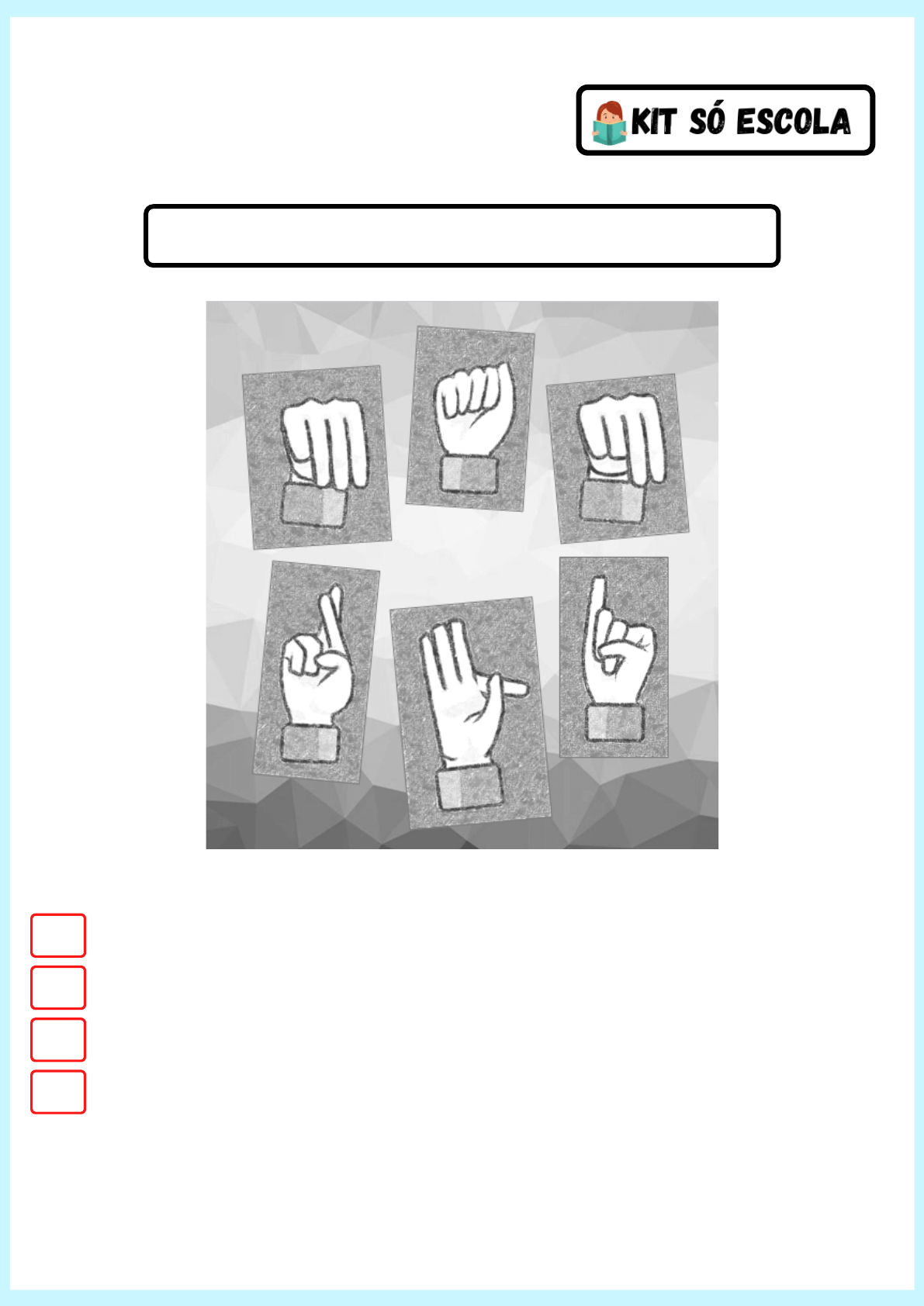 NOME: ______________________________________ QUE NOMES PODEMOS FORMAR? DATA:___/___/_____. ANA, TALITA, NATANAEL, TIAGO, RITA RAMON, MARIA, MARIANA, MARTA, MARIO ANA, MARIA, MARIANA, RITA, MARIO ANA, MARIA, MARIANA, MARTA, RITA CIRCULE NO ALFABETO A PRIMEIRA LETRA DO SEU NOME. A B C D E F G H I J K L M N O P Q R S T U V W X Y Z RECORTE NO ALFABETO MANUAL E FORME SEU NOME: https://kitsoescola.com/loja/ https://kitsoescola.com/loja/ NOME: ______________________________________ PINTE A LETRA INICIAL DE CADA DESENHO: ABELHA A I O U O I ELEFANTE A I O U O I DATA:___/___/_____. E I O O U O A I O O U U E U A U A O E I U O A A E I O O U O A I O O U U E U A U A O E I U O A A SINAIS ÚTEIS www.KITSOESCOLA.com ESTUDAR FAMÍLIA TE AMO RUA CANETA BANHEIRO TRABALHAR ENTENDER NÃO ENTENDI CASA https://go.hotmart.com/R68209703L?ap=a5ed&src=amostradesc https://go.hotmart.com/R68209703L?ap=a5ed&src=amostradesc NOME: ______________________________________ A - A -A - A -A - A A - A -A - A -A - A A - A -A - A -A - A A - A -A - A -A - A A - A -A - A -A - A A - A -A - A -A - A A - A -A - A -A - A AA DATA:___/___/_____. APRENDENDO A LETRA "A". NOME: ______________________________________ LIGUE O DESENHO AO SINAL CORRESPONDENTE: DATA:___/___/_____. LEÃO GALINHA INSETOS GATO NOME: ______________________________________ PINTE A COR INDICADA E TREINE O SINAL: DATA:___/___/_____. LARANJA AZUL VERDE AMARELO VERMELHO MARROM NOME: ______________________________________ DATA:___/___/_____. LIGUE AS QUANTIDADES: 5 4 3 2 1 https://kitsoescola.com/loja/ NOME: ______________________________________ QUANTAS BALAS CADA UM POSSUI? VAMOS LIGAR CADA PERSONAGEM AO NÚMERO DE BALAS? DATA:___/___/_____. 2 4 6 8 NOME: ______________________________________ ALFABETO MANUAL: QUAL A LETRA CORRETA? DATA:___/___/_____. E F G H A E D B J M V A F D Q A P L G T H Y J K https://go.hotmart.com/R68209703L?ap=a5ed&src=amostradesc AA AA BB BB CC CC DD DD ESCREVA A PALAVRA CORRESPONDENTE AO SINAL: NOME: ______________________________________ DATA:___/___/_____. NOME: ______________________________________ LIGUE CADA LETRA DO ALFABETO MANUAL A SUA LETRA CORRESPONDENTE: DATA:___/___/_____. F G H I J G F I H J . . . . . . . . . . https://go.hotmart.com/R68209703L?ap=a5ed&src=amostradesc