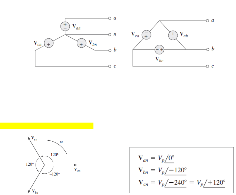 Aula 11 – Análise de Circuitos Elétricos II Sistemas Trifásicos O circuito trifásico é um caso particular dos circuitos polifásicos que, por razões técnicas e econômicas tornou-se o padrão em geração. Transmissão e distribuição de energia elétrica. Vantagens do sistema trifásico • Permite transmissão de potência de forma mais econômica (menor quantidade de cobre); • A corrente na linha é menor, reduzindo o diâmetro dos condutores da instalação; • Permite alterar a tensão na carga pela mudança da configuração do gerador e/ou carga; • Pode ser utilizado, também, para alimentar cargas monofásicas; • Os motores trifásicos têm menores dimensões que os motores monofásicos da mesma potência. Circuitos Trifásicos Equilibrados Em sistemas trifásicos equilibrados as tensões e correntes em cada fase possuem a mesma amplitude e estão defasadas entre si por 120∘. Tanto as fontes quanto as cargas podem estar ligadas em triângulo (Δ) ou estrela (Y). As tensões 𝑽𝑎𝑛, 𝑽𝑏𝑛, e 𝑽𝑐𝑛 são chamadas tensões de fase, são, respectivamente, aquelas entre as linhas 𝑎, 𝑏, 𝑐 e o neutro 𝑛. Se as fontes de tensão tiverem a mesma amplitude e frequência 𝜔 e estiverem defasadas por 120º, diz-se que as tensões estão equilibradas. Isso implica: 𝑽𝑎𝑛 + 𝑽𝑏𝑛 + 𝑽𝑐𝑛 = 0 |𝑽𝑎𝑛| = |𝑽𝑏𝑛| = |𝑽𝑐𝑛| Sequência 𝑎𝑏𝑐 ou sequência positiva Fonte conectada em estrela Fonte conectada em triângulo Aula 11 – Análise de Circuitos Elétricos II Exemplo: Representação de um sistema trifásico Mantendo a convenção adotada na indústria de potência, todos os valores de tensão e corrente são em RMS. Conexão trifásica 𝒀 − 𝒀 Tensão de linha: 𝑉𝐿 = √3𝑉𝑝 Corrente de linha: 𝐼𝐿 = 𝐼𝑝 Aula 11 – Análise de Circuitos Elétricos II Exercício: Um sistema trifásico a três fios balanceado alimenta uma carga conectada em Y. Cada uma das fases contém três cargas em paralelo: –j100 Ω, 100 Ω e 50 + j50 Ω. Assuma uma sequência de fases positiva com 𝑽𝑎𝑏 = 400∠0∘ 𝑉. Determine (a) 𝑽𝑎𝑛; (b) 𝑰𝑎𝐴 Resposta: 231∠ − 30∘ v; 4,62∠ − 30∘ A, Conexão trifásica 𝒀 − 𝚫 Exercício: Cada fase de uma carga trifásica balanceada conectada em Δ consiste em um indutor de 200 mH em série com a combinação em paralelo de um capacitor de 5 𝜇𝐹 e uma resistência de 200 Ω. Assuma uma resistência nula nos condutores e uma tensão de fase de 200 V, com 𝜔 = 400 rad/s. Obtenha (a) a corrente de fase; (b) a corrente de linha (c) a potência total absorvida pela carga. Resposta: 1,158 𝐴; 2,01 𝐴 Aula 11 – Análise de Circuitos Elétricos II Exercício: Calcule as correntes de linha nesse sistema estrela-estrela trifilar Resposta: 𝑰𝑎𝐴 = 6,81∠ − 21,8∘ 𝐴; 𝑰𝑏𝐵 = 6,81∠ − 141,8∘ 𝐴; 𝑰𝑐𝐶 = 6,81∠98,2∘ 𝐴 Potência em circuitos trifásicos A potência complexa total em circuitos trifásicos é a soma da potência nas três fases. Se o circuito é equilibrado, a potência monofásica será: Potência Ativa: 𝑃 = √3 𝑉𝐿𝐼𝐿𝑐𝑜𝑠 𝜙 Potência Reativa: 𝑄 = √3 𝑉𝐿𝐼𝐿𝑠𝑒𝑛 𝜙 Potência Aparente: 𝑆 = √3 𝑉𝐿𝐼𝐿 Aula 11 – Análise de Circuitos Elétricos II Exercício: Uma carga ligada em estrela é constituída por cargas iguais a 4 + j3 Ω por fase. Sendo a tensão de linha igual a 208 V, determine as potências ativa e reativa, por fase e total. Esboce o circuito representativo para esse arranjo, indicando as grandezas elétricas nele contidas. Resposta: P = 2.305, 7W (por fase). Q = 1.729, 3VAR (por fase). • Um motor trifásico de 60 kW (potência de saída) e rendimento η= 92% possui um fator de potência de 0,8 e está ligado a uma rede de 380 V (tensão de linha). Calcule: a) a potência ativa de entrada; b) a potência aparente consumida pelo motor; c) a corrente de linha do circuito. Resposta: (a) 65,22 kW. (b) 81,52 kVA. (c) 123,86 A. • Um gerador trifásico equilibrado libera 7,2 kW para uma carga conectada em estrela de impedância 30 + j40 Ω por fase. Determine a corrente de linha e a tensão de linha. Resposta: 8,94 A e 774,6 V. • Uma carga trifásica balanceada de 24 MVA, FP = 0,78 (indutivo), é alimentada por uma fonte trifásica balanceada, que possui tensão de linha de 34,5 kV, RMS, 60 Hz. Determine os valores dos capacitores que deverão ser conectados em estrela, para melhorar o FP para 0,94. Resposta: 18,33 𝜇𝐹 Aula 11 – Análise de Circuitos Elétricos II • Três cargas trifásicas balanceadas estão alimentadas por uma fonte trifásica balanceada, que possui uma tensão de linha de UL = 13,8 kV, RMS, 60 hz, como mostrado na Figura abaixo. Determine os valores dos capacitores que deverão ser conectados em estrela, para melhorar o FP para 0,92. Resposta: 12,2 𝜇𝐹