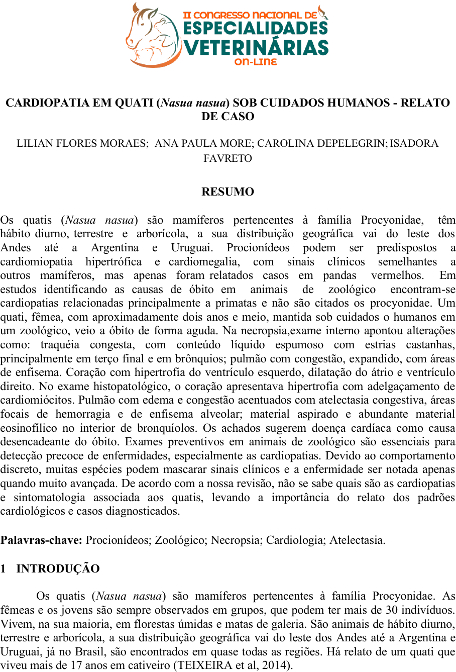 CARDIOPATIA EM QUATI (Nasua nasua) SOB CUIDADOS HUMANOS - RELATO