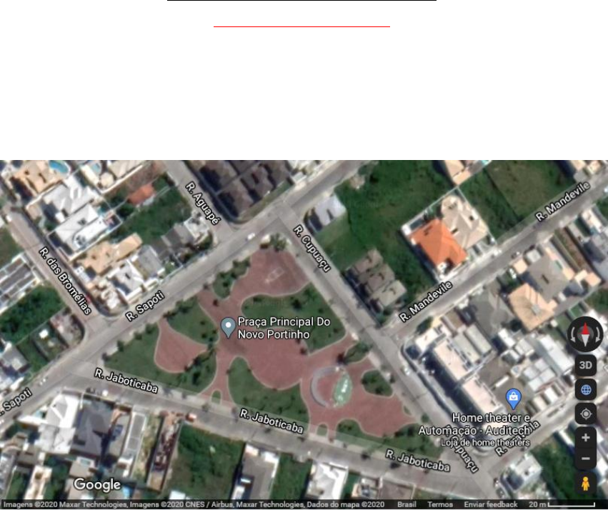 Universidade Estácio de Sá | Unidade Cabo Frio-RJ Curso de Arquitetura e Urbanismo Professor: Ivo Matos Barreto Júnior Disciplina: Ateliê de Projeto: análise e composição da forma (ARA 0457) Orientações para o SEGUNDO TRABALHO (VERSÃO R01 . 20/10/2020) 1. Trabalho em grupo (apresentação oral e entrega física impressa) Desenvolvimento de projeto, em nível de Estudo Preliminar, para edificação multiuso de caráter coletivo, a ser localizada na praça central do bairro Novo Portinho, em Cabo Frio/RJ Planta de localização do local que receberá a edificação. Fonte: Google Maps/2020 1. PROGRAMA DE NECESSIDADES PRELIMINAR Edificação de uso misto, a ser implementada na praça, em local indicado pelo professor, térrea, contemplando os seguintes usos: Setor A: Manutenção - Zeladoria (administração e segurança) - Vestiário pequeno - Ferramentaria Setor B: Uso coletivo público - Sede da Associação de Moradores, contendo: - sala de reuniões e arquivo - Sala multi-uso (assembleias e exposições) - Banheiro - Copa - Varanda para pequenos encontros - Banheiros públicos (masculino, feminino e adaptado) Setor C: Serviços - Cafeteria pequena (sem cocção), contendo minimamente: - Balcão - Cozinha; - Pequeno depósito de mantimentos; - Salão externo coberto ou semi-coberto para mesas (6 a 10 mesas de 4 lugares) - Banheiros (masculino e feminino) - Depósito para materiais e equipamentos (mesas e cadeiras) - Lixeira - Parquinho infantil (poderá adaptar canteiro existente, se desejado) 2. Visita técnica 2.1 Produção de Mapa Diagnóstico da área projeto, contendo minimamente: a. Croqui geral da área e medidas aproximadas (levar trena grande); b. Condicionantes ambientais: orientação solar, incidência predominante de vento e chuva, áreas de sombra e sol; c. Hierarquia e formas de acesso à área; d. Fluxos de Pedestres e ciclistas mais presentes; e. Fluxos e intensidade de fluxo de carros; f. Vistas e perspectivas relevantes; g. Perfil dos usuários atuais e usuários em potencial; h. Caracterização e análise do contexto de entorno; i. Presença de vegetação e sombras. 2.2 Pesquisa de campo e bibliográfica, para definição das áreas de cada compartimento do programa de Necessidades, para consolidação em grupo na próxima aula 3. ENTREGAS A entrega final deverá ser feita em pranchas de composição livre, em formato A3 obrigatório, encadernado e com capa plástica (pranchas numeradas e identificadas). A composição é livre, podendo haver fotos e mais de um desenho por prancha. É permitido o uso do computador para o design das pranchas ou a composição de pranchas inteiramente á mão, caso o trabalho de grupo permita esta dinâmica, com segurança. Os desenhos deverão ser todos à mão livre ou com uso de instrumentos. Quando usado o computador para composição das pranchas, os desenhos deverão ser escaneados em alta resolução (300dpi), usando-se sempre escala gráfica e buscando manter a escala recomendada. As pranchas deverão ser elaboradas com acabamentos de apresentação final, em nível de Estudo Preliminar, conforme explicado em sala, e depois impressas e encadernadas, como explicado no início. O conjunto deve conter, minimamente: - Planta de Situação (1:500 ou 1:750) - Mapa diagnóstico; - Planta conceito (Plano de massas e desenhos conceito de composição); - Memorial (Descritivo e Justificativo); - Planta de Cobertura (1:100); - Planta-baixa humanizada (1:50); - Cortes humanizados (1:50 ou 1:100) - Perspectivas e croquis volumétricos - Maquete física volumétrica na técnica a escolher O desenvolvimento será avaliado aula por aula, como parte da nota final, seguindo o seguinte cronograma de entregas, a ser aferido no atendimento dos grupos: 27/10: Mapa Diagnóstico 3/11: Plano de massas, desenhos conceito de composição e partido arquitetônico (croquis) 10/11: Planta-baixa de layout e perspectivas esquemáticas (croquis) 17/11: Planta-baixa definitiva, Cortes esquemáticos, Planta de Situação/ Cobertura 24/11: Atendimento de grupos e comentário sobre desenhos definitivos (humanizados) 01/11: Atendimento final dos grupos (continuação do desenvolvimento) 08/12: Seminário final de Apresentação e entrega