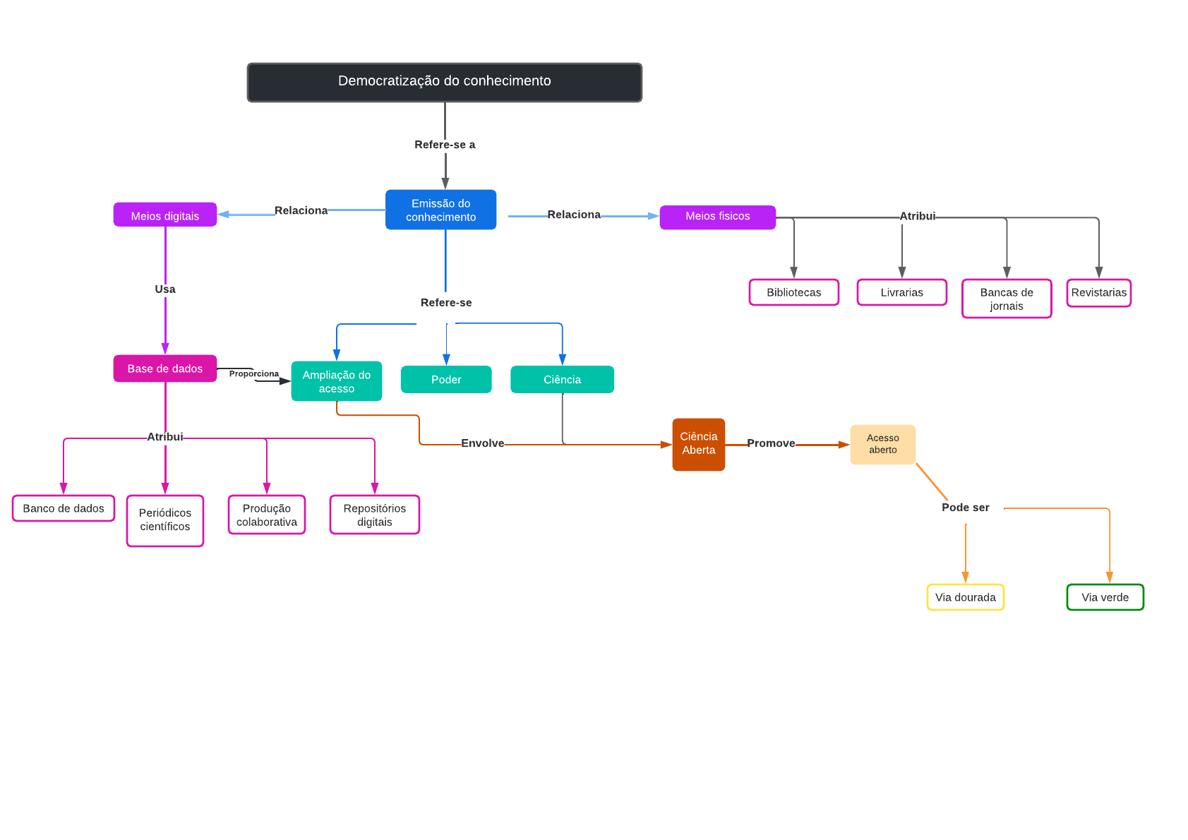 Refere-se Emissão do conhecimento Poder Relaciona CiênciaAmpliação do acesso Meios fisicos Democratização do conhecimento Refere-se a Ciência Aberta RelacionaMeios digitais Usa Base de dados Atribui Banco de dados Periódicos científicos Produção colaborativa Repositórios digitais Proporciona Bibliotecas Livrarias Bancas de jornais Atribui Revistarias Envolve Promove Acesso aberto Pode ser Via dourada Via verde ontologia Página 1