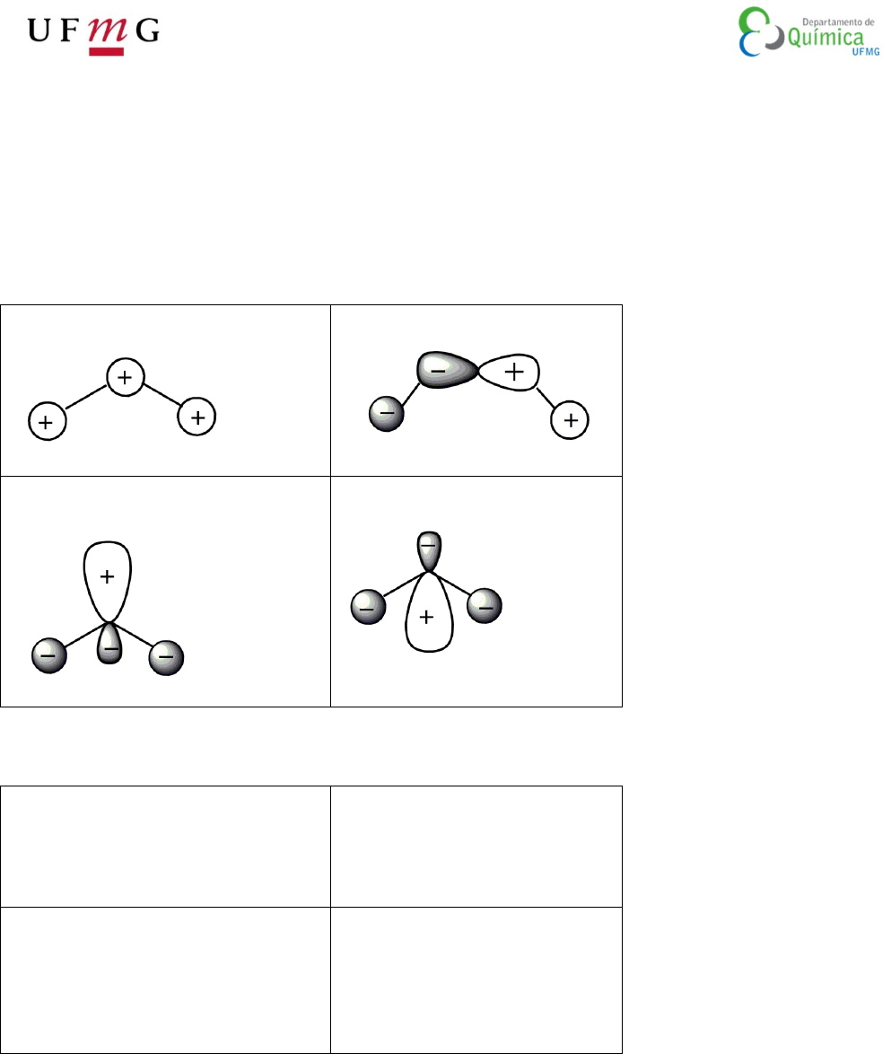 1 UNIVERSIDADE FEDERAL DE MINAS GERAIS – UFMG INSTITUTO DE CIÊNCIAS EXATAS – ICEx Departamento de Química – Setor de Química Inorgânica Química Inorgânica CI – QUI147 2ª Lista de Exercícios: Complexos e teorias de ligação em complexos Data de entrega: 04/11/2022- valor: 8,0 pontos 1) Simetria 1. Determine as representações correspondentes aos orbitais moleculares mostradas abaixo. Determine também se o modo é ativo ou não no infravermelho. a) Molécula de água a.1) a.2) a.3) a.4) 4) a) Molécula de água: C2v a.1) A1 E = +1 C2= +1 2σv (xz)= +1 2σv(yz)= +1 a.2) B2 E = +1 C2= -1 2σv (xz)= -1 2σv(yz)= +1 a.3) A1 E = +1 C2= +1 σv (xz)= +1 σv(yz)= +1 a.4) A1 E = +1 C2= +1 σv (xz)= +1 σv(yz)= +1 2 b) Orbital px, no grupo de ponto C2v c) Orbital py no grupo de ponto C2v b) B1 E = +1 C2= -1 σv (xz)= +1 σv(yz)= -1 c) B2 E = -1 C2= -1 σv (xz)= -1 σv(yz)= +1 2) Barros, exercício 7.16, adaptado. Os seguintes compostos foram sintetizados e estudados por Werner. I. PtCl4·2NH3 (contém 0 íons; 0 Cl− precipitados por Ag+) II. PtCl4·2NH3 (contém 0 íons; 0 Cl− precipitados por Ag+) III. PtCl4·NH3.KCl (contém 2 íons; 0 Cl− precipitados por Ag+) IV. PtCl4·4NH3 (contém 3 íons; 2 Cl− precipitados por Ag+) V. PtCl4·2KCl (contém 3 íons; 0 Cl− precipitados por Ag+) VI.PtCl4·5NH3 (contém 4 íons; 3 Cl− precipitados por Ag+) VII. PtCl4·6NH3 (contém 3 íons; 2 Cl− precipitados por Ag+) a) Qual o NC (número de coordenação) da platina, comum a todos os complexos? b) Faça o desenho dos complexos I e III. c) Escreva a fórmula dos complexos, de acordo com a notação utilizada atualmente pela IUPAC. O primeiro composto (I), contrastando com o segundo(II), tem polaridade nula. 3 3) Barros, exercícios 7.19 e 7.22, adaptado. Faça o desenho e escreva os nomes comuns e segundo as novas regras da IUPAC dos complexos abaixo. I. [CuCl2]− diclorocuprato(I)// IUPAC: íon dicloridocuprato(I) II. [Ag(NH3)2]+ diaminoprata(I)// IUPAC: íon diaminprata(I) III. [AuCl2]− dicloroaurato(I)// IUPAC: íon dicloridoaurato(I) IV. HgCl2 cloreto de mercúrio(II) [não é considerado um complexo) V. [BF4] − tetrafluoroborato(III) // IUPAC: íon tetrafluoridoborato(III) VI. [AlCl4]− tetracloroaluminato(III) // IUPAC: íon tetracloridoaluminato(III) VII. [Li(H2O)4]+ tetraaqualitio(I) // IUPAC: íon tetraaqualitio(I) 4 VIII. [Ni(CO)4] tetracarbonilniquel(o) // IUPAC: o mesmo IX. [Zn(NH3)4]2+ tetraaminozinco(II) // IUPAC: íon tetraaminzinco(II) X. [UF7]3− heptafluorouranato(IV)// íon heptafluoridouranato(IV) XI. [Ce(NO3)6]2− hexanitratocerato(IV)// íon heptafluoridouranato(IV) XII. [Cr(dmso)6]2+ hexaquis(dimetilsulfóxido)cromo(II)// íon hexaquis(dimetilsulfóxido)cromo(II) XIII. [Co(acac)3] tris(acetilacetonato)cobalto(III) XIV. [Pt(en)2]2+ bis(etilenodiamino)platina(II)// íon bis(etilenodiamin)platina(II) XV. [Ir(CO)Cl(PPh3)2] carbonilcloro(difenilfosfino)irídio(I)// XVI. [SbCl5Ph] pentaclorofenilantimônio(V)//pentacloridofenilantimônio(V) XVII. [FeCp2] bis(ciclopentadienil)ferro(II)// n5-bis(ciclopentadienil)ferro(II) XVIII. [PbEt4] tetraetilchumbo(IV) XIX. [V(CO)4Cp] tetracarbonilciclopentadientilvanádio(I) 4) Barros, exercício 7.20 e 7.23, adaptados. Escreva as fórmulas e faça o desenho dos seguintes complexos. I. octacianidoniobato(III): [Nb(CN)8]5- II. tetrapiridinoplatina(II): [Pt(py)4]2+ quadrático plano III. hexacianidoferrato(III): [Fe(CN)6]3- IV. tetracloridozincato(II) : [ZnCl4]2+ tetraédrico V. tetraoxoferrato(VI): [FeO4]2- tetraédrico VI. eneaidridorrenato(VII): [ReH9]2- VII. acetilacetonaticlorobis(piridino)cobaltato(II): [Co(acac)Cl2(py)2] 5 VIII. aminoclorobis(etilenodiamino)cobalto(III): [Co(NH3)Cl(en)2]2+ IX. pentaaminoisotiocianatocobalto(III): [Co(NH3)5(NCS)]2+ X. tetraaminocloronitrocobalto(III): [Co(NH3)4Cl(NO2)]+ nitro liga pelo N XI. carbonilcloro(dioxigênio)bis(trifenilfosfino)irídio(I): [Ir(CO)Cl(O2)(PPh3)2] 5) Barros, 7.29. Desenhe todos os isômeros geométricos das seguintes espécies. Indique também quais são as espécies dissimétricas. I. [Pt(NH3)ClBrI]− II. [Co(NH3)2ClBr(en)]+ III. [Co(acac)2(NH3)Cl] 6) Barros, 7.30. Explique como poderiam ser distinguidos os isômeros em cada um dos seguintes pares. I. cis e trans-[CoCl2(en)2] Cl II. [Co(NH3)3(NO3)3] e [Co(NH3)4(NO2)2][Co(NH3)2(NO2)4] III. [Co(NH3)5Br]SO4 e [Co(NH3)5SO4]Br 6 7) Quando o ânion glicinato, H2NCH2CO2 − (gly−) reage com o óxido de cobalto(III), os átomos de N e de O da gly− coordenam-se, formando dois isômeros não eletrólitos mer e fac de Co(III), [Co(gly)3]. Esboce os dois isômeros. Esboce as imagens especulares dos dois isômeros. Elas podem ser sobrepostas? Analisar se os isômeros possuem planos de simetria para responder as questões. Assim, o fac não possui esse plano, logo ele terá isômero óptico. 8) Quais dos seguintes complexos são quirais? Justifique sua resposta. I. [Cr(edta)] − II. [Ru(en)3]2+ III. [Pt(dien)Cl]+ IV. cis-[CrCl2(ox)2]3- 7 V. trans-[CrCl2(ox)2]3− VI. cis-[RhH(CO)(PR3)2] 9) Barros, 7.38. A tabela abaixo mostra os valores das constantes de equilíbrio para a formação, a partir do íon metálico e dos ligantes, de alguns complexos de Ni(II). Complexo Constantes de formação [Ni(NH3)4(H2O)2]2+ K1= 3 x 107 [Ni(H2O)2(en)2]2+ K2= 1,1 x 1014 [Ni(H2O)2(trien)]2+ K3= 2 x 1014 (Trien: H2NCH2CH2NHCH2CH2NHCH2CH2NH2) Explique porque K1 << K2 < K3. 10) Barros, exercício 8.4, adaptado. Utilizando argumentos da TLV, discuta os complexos quadrático planos pouco comuns de configuração d9, como [CuCl 4]2−. Através do diagrama de quadrículas, verifique exatamente qual é a situação e indique o orbital para onde o nono elétron deveria ser promovido. 11) Dentre o conjunto de complexos abaixo determine qual tem o menor valor de 10 Dq. Explique sua escolha. 8 a) [CoF6]3– e [CoF6]4– b) [V(CN)6]4– e [Nb(CN)8]4– c) [PdCl4]2– e [PtCl4]2– c) [CuCl4]2– e [AuCl4]– d) [Fe(SCN)6]3– e [Fe(OCN)6]3– e