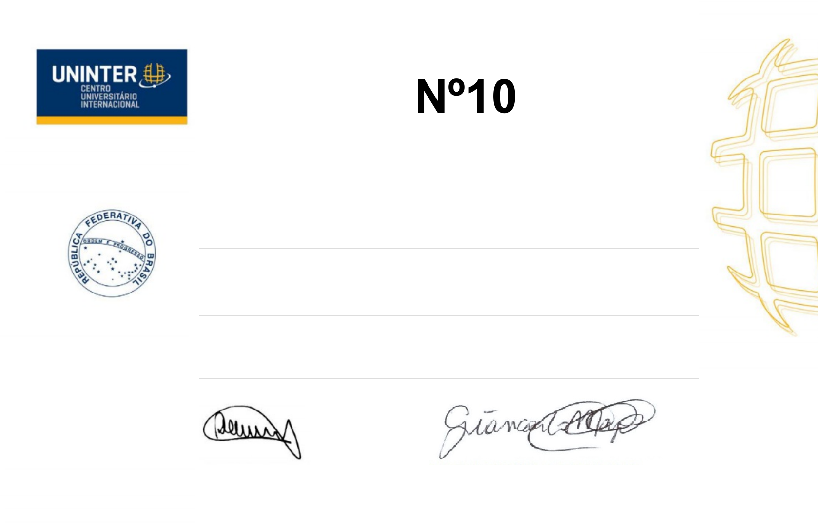 CERTIFICADOCERTIFICADO O Reitor do Centro Universitário Internacional UNINTER, confere aO Reitor do Centro Universitário Internacional UNINTER, confere a Adriana Souza ChalmeresAdriana Souza Chalmeres inscrito sob o CPF de número 898.827.680-91inscrito sob o CPF de número 898.827.680-91 o certificado de participação e aproveitamento no eventoo certificado de participação e aproveitamento no evento CURSO DE EXTENSÃO | BASES LEGAIS DO SUSCURSO DE EXTENSÃO | BASES LEGAIS DO SUS Ofertado na modalidade Ofertado na modalidade - EAD, com carga horária de 60 hora/aula ofertado no período de- EAD, com carga horária de 60 hora/aula ofertado no período de 16 de dezembro de 2023 A 25 de dezembro de 2023.16 de dezembro de 2023 A 25 de dezembro de 2023. Prof. Dr. Benhur Etelberto GaioProf. Dr. Benhur Etelberto Gaio ReitorReitor Prof. Esp. Celso Giancarlo Duarte De MazoProf. Esp. Celso Giancarlo Duarte De Mazo Coordenador de Extensão e Assuntos ComunitáriosCoordenador de Extensão e Assuntos Comunitários Nº10 Nome: Adriana Souza Chalmeres Curso: CURSO DE EXTENSÃO | BASES LEGAIS DO SUS Área: Saúde Registro Uninter: 4692041 Nível: Extensão Período da Realização: 16/12/2023 a 25/12/2023 COMPONENTES CURRICULARES C.H. NOTA FREQ.(%) DOCENTE CURSO DE EXTENSÃO | BASES LEGAIS DO SUS 60h 80 100 ELAINE GRACIA DE QUADROS NASCIMENTO TOTAL: 60h DISCIPLINAS BASES LEGAIS DO SUS Planejamento e Gestão em Saúde Políticas públicas de saúde Histórico vinculado ao Certificado registrado sob o n.º 2769274 no Livro Eletrônico de Registros de Certificados de cursos do Centro Universitário Internacional - UNINTER, inscrito sob o CNPJ 02.261.854/0001-57 em conformidade RESOLUÇÃO Nº 7 DE 18 DE DEZEMBRO DE 2018 do Ministério da Educação e Cultura. Validação eletrônica disponível em < https://extensaocommerce.uninter.com/certificado >, para validar o certificado utilize o CPF e a chave de acesso. Chave de acesso: c202312769274L4692041