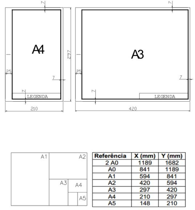 IFSC – São José - Engenharia de Telecomunicações – Desenho Técnico – jesuegraciliano.wordpress.com NORMAS, FORMATOS E ESCALAS Em desenho técnico utilizamos diversos formatos de papel. Os mais conhecidos são os formatos A4 e A3, conforme ilustrado na Figura 1. Figura 1 – Tamanho do papel com margem e legenda. Figura 2 – Obtenção dos diferentes formatos de papel. A legenda ou selos de desenhos comuns, ver Figura 3 deve ficar no canto inferior direito nos formatos A0, A1, A2, A3, ou ao longo da largura da folha de desenho no formato A4. Já as legendas nos desenhos industriais variam de acordo com as necessidades internas de cada empresa, mas devem conter, obrigatoriamente: Nome da repartição, firma ou empresa; Título do desenho; Escala; IFSC – São José - Engenharia de Telecomunicações – Desenho Técnico – jesuegraciliano.wordpress.com Número do desenho; Datas e assinaturas dos responsáveis pela execução, verificação e aprovação; Número da peça, quantidade, denominação, material e dimensão em bruto. Figura 3 - Ilustração de uma legenda para desenho. Ao imprimir um desenho, a folha deve conter margens externa, com linha fina onde será recortadas a folha, e margens internas com linha mais grossa. A margem da esquerda é maior para possibilitar a fixação em pastas de projetos. Logicamente, quando usamos uma folha A4 para imprimir um desenho em impressora comum, a margem externa não será impressa, pois a área de plotagem da impressora é sempre menor do que a folha A4. Neste caso a margem externa coincide com a borda da folha. A correta dobragem de um projeto também é fundamental após a plotagem. Na Figura 4 ilustramos a forma de se proceder a dobragem de um desenho. Figura 4– Procedimento para dobra de desenho e formato A4. IFSC – São José - Engenharia de Telecomunicações – Desenho Técnico – jesuegraciliano.wordpress.com ESCALAS As escalas permitem que representemos a natureza em tamanho reduzido. No Egito Antigo já eram construídos mapas detalhados utilizando-se de técnicas de proporcionalidade. Uma escala possibilita que a realidade seja representada de forma proporcional e que o desenho se adapte às dimensões do papel que temos disponível. Em desenho técnico, a escala indica a relação do tamanho do desenho da peça com o tamanho real da peça. A escala permite representar, no papel, peças de qualquer tamanho real. Nos desenhos em escala, as medidas lineares do objeto real ou são mantidas, ou então são aumentadas ou reduzidas proporcionalmente, porém as formas dos objetos reais são mantidas. Como consequências disso, as dimensões angulares do objeto permanecem inalteradas. Vejamos um exemplo. Observando a Figura 5, as medidas dos lados do quadrado B foram reduzidas proporcionalmente em relação às medidas dos lados do quadrado A. Cada lado de B é uma vez menor que cada lado correspondente do quadrado A, ou seja, o quadrado B sofreu uma redução em relação ao quadrado A. De forma contrária, os lados do quadrado C foram aumentados proporcionalmente, em relação aos lados do quadrado A. Cada lado de C é igual a duas vezes cada lado correspondente do quadrado A, o que indica que o quadrado C sofreu uma ampliação em relação ao quadrado A. Note que as três figuras apresentam medidas dos lados proporcionais e ângulos iguais. Então, podemos dizer que as figuras B e C estão representadas em escala em relação à figura A. Figura 5 - Escalas em desenho técnico. Diante do exposto acima, fica evidente que as escalas podem ser classificadas como escalas: de redução, de ampliação e natural. A escala natural é aquela em que o tamanho do desenho técnico é igual ao tamanho real da peça. Nesse caso diz-se que a escala é 1:1 (lê-se 1 para 1). A escala de redução é aquela em que o tamanho do desenho técnico é menor que o tamanho real da peça. Vejamos, por exemplo, um desenho técnico em que suas medidas gráficas são vinte vezes menores que as suas medidas reais correspondentes. Logo, diz-se que a escala é 1:20 (lê-se 1 para 20). IFSC – São José - Engenharia de Telecomunicações – Desenho Técnico – jesuegraciliano.wordpress.com A escala de ampliação é aquela em que o tamanho do desenho técnico é maior que o tamanho real da peça. Vejamos, por exemplo, o desenho técnico de uma agulha de injeção em escala de ampliação. As dimensões deste desenho são duas vezes maiores que as dimensões correspondentes da agulha de injeção real. Este desenho foi feito, portanto, na escala 2:1 (lê-se dois para um). Uma escala é construída a partir de uma relação entre a medida gráfica (D) do desenho e a sua medida natural (N), conforme normatizado pela norma NBR 8196. Como exemplo, imagine um terreno que mede 12m x 30m (distância natural = N), que foi desenhado em uma folha de papel A4. Optou-se em representar o retângulo representativo do terreno a partir de uma figura de medidas 12cm x 30cm. Nesse caso, cada 100 cm real foi representado por 1 cm no desenho. Chamamos essa escala de 1:100 (1 para 100). As escalas 1:100, 1:50, 1:25, 1:20 são muito comuns na área de projetos de refrigeração e ar condicionado e, como visto, anteriormente são escalas de redução. Na Tabela 7.1 ilustramos algumas escalas comuns. Tabela 1 - Escalas mais comuns em desenho técnico. Escala de Ampliação 2:1 5:1 10:1 20:1 50:1 100:1 Escala Natural 1:1 Escala de Redução 1:2 1:5 1:10 1:20 1:50 1:100 1:200 1:500 1:1000 1:2000 1:5000 1:10000 Todo desenho no papel deve indicar a escala utilizada na legenda. Caso em uma mesma folha sejam representados desenhos em escalas diferentes devemos indicar a escala abaixo de cada um deles. Apesar de muitos desenhos terem a indicação de suas escalas é importante ter cuidado para não se medir diretamente com o escalímetro, até que se tenha certeza de que o desenho está impresso na escala indicada. Como exemplo, se uma linha de 24 cm representa uma terreno