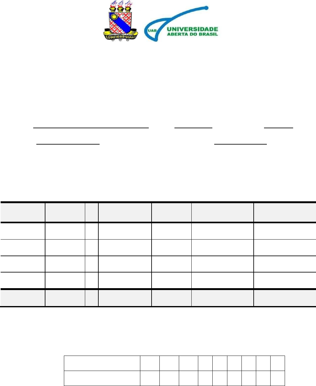 UNIVERSIDADE ESTADUAL DO CEARÁ - UECE SECRETARIA DE APOIO AS TECNOLOGIAS EDUCACIONAIS – SATE UNIVERSIDADE ABERTA DO BRASIL – UAB BACHARELADO EM CIÊNCIAS CONTÁBEIS Disciplina: Estatística AVALIAÇÃO PRESENCIAL Nome: Francisco Agostinho Medeiros Data 29.06.2024 Matricula: 1717246 Docente:Rosangela Nunes Polo: Quixeramobim 01) A tabela a seguir contém dados referentes a um estudo sobre a idade de crianças, jovens e adultos que deram entrada no pronto socorro público com fraturas provocadas por acidentes ocorridos durante prática esportiva em uma semana. (2,0 pontos). Variável ( i ) Classes fi fri Fi Fri Ponto Médio xi 1 0 | ------ 8 3 3/40=0,075 0+3=3 0+0,075=0,075 (0+8)/2 = 4 2 8 | ----- 16 8 8/40=0,2 3+8=11 0,075+0,2=0,275 (8+16)/2 = 12 3 16 | ---- 24 20 20/40=0,5 11+20=31 0,275+0,5=0,775 (16+24)/2 = 20 4 24 | ---- 32 9 9/40=0,225 31+9=40 0,775+0,225=1 (24+32)/2 = 28 Total 40 1 - - - OBS: Fi = freqüência acumulada Fri = freqüência relativa acumulada 02) A distribuição abaixo indica o número de acidentes ocorridos com 80 motoristas de uma empresa de ônibus. Nº de acidentes 0 1 2 3 4 5 6 7 8 Nº de motoristas 30 15 10 9 6 4 3 2 1 Determine: a) O número de motoristas que não sofreram nenhum acidente: (0,5 ponto) R:30 b) O número de motoristas que sofreram pelo menos 7 acidentes: (0,5 ponto) R: 2+1=3 c) o número de motoristas que sofreram menos de 2 acidentes: (0,5 ponto) R:30+15=45 d) a percentagem dos motoristas que sofreram no máximo 4 acidentes: (0,5 ponto) R:30+15+10+9+6=70 70/80 = 0,875 = 87,5% 03) Uma urna contém 60 bolas, numeradas de 1 a 60. Uma bola é retirada, aleatoriamente, desta urna. Qual a probabilidade do número da bola retirada ser primo? ( 2.0 pontos ) R: Entre 1 e 60 tem 17 números primos que são eles { 2, 3, 5, 7, 11, 13, 17, 19, 23, 29, 31, 37, 41, 43, 47, 53, 59} Então, 17/60 = 0,28 = 28% 04) O que são eventos? Cite pelo ao menos 3 deles: ( 2.0 pontos ) R: Na Estatistica, evento é um conjunto especifico de resultado e geralmente representado por letra maiscula. Um evento é um subconjunto do espaço amostral Considerando o espaço amostral {1,2,3,4,5,6,...,60} irei exemplicar três tipos de eventos Exemplos de eventos: A=Obter um número primo; B=Obter um número par; C=Obter um número multiplo de 4. 05) Complete o esquema de cálculo do coeficiente de correlação para os valores das variáveis Xi e Yi. (2,0 pontos) 𝑋𝑖 4 6 8 10 12 𝑌𝑖 12 10 8 12 14 𝑋𝑖 𝑌𝑖 𝑋𝑖𝑌𝑖 𝑋𝑖² 𝑌𝑖² 4 12 4*12=48 4*4=16 12*12=144 6 10 6*10=60 6*6=36 10*10=100 8 8 8*8=64 8*8=64 8*8=64 10 12 10*12=120 10*10=100 12*12=144 12 14 12*14=168 12*12=144 14*14=196 Σ = 40 Σ = 56 Σ = 460 Σ = 360 Σ = 648