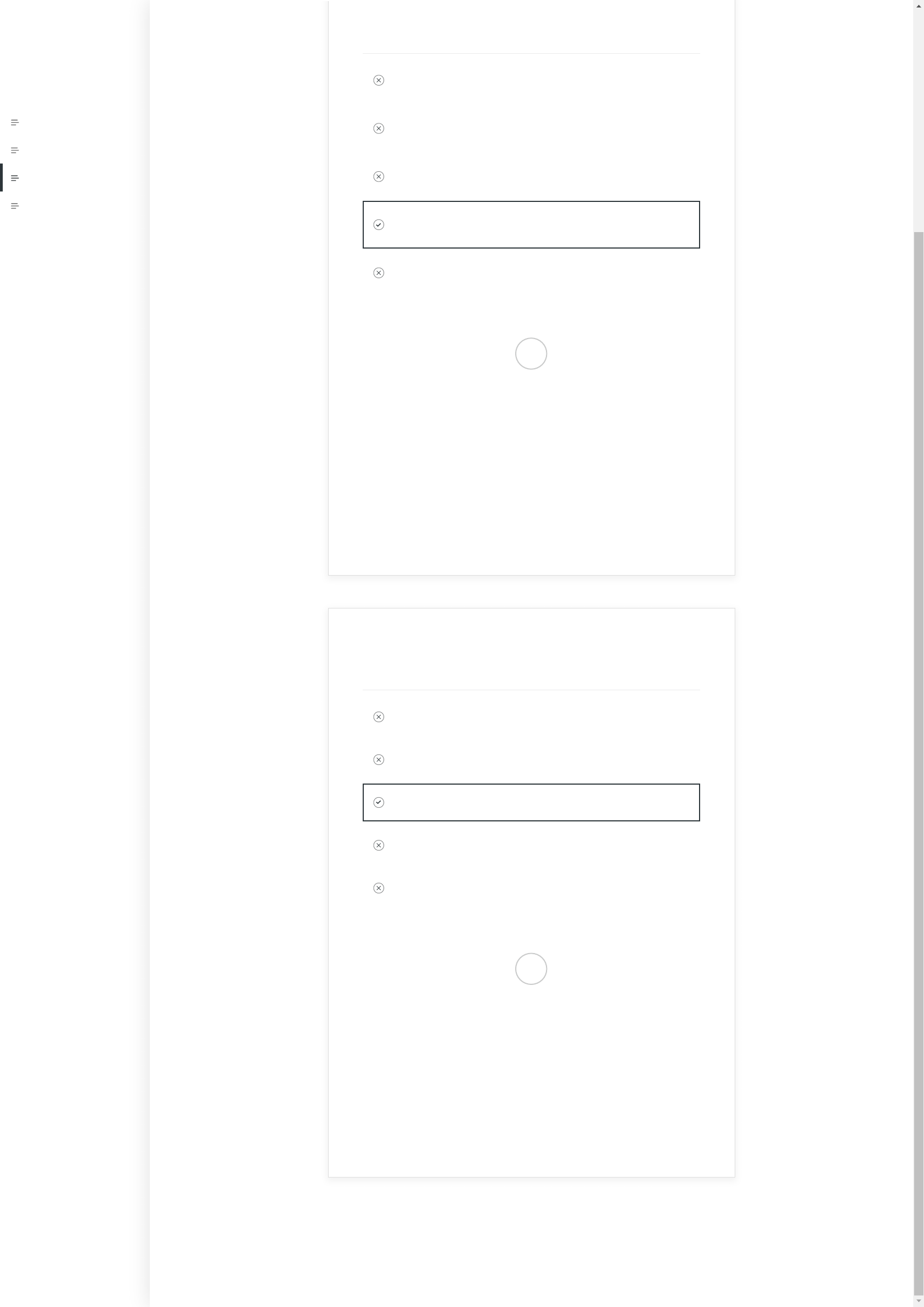 Aquecimento Conteúdo didático Quiz Referências C O N T I N U E Aula 1 - Estrutura de dados linear (vetor) FAZER NOVAMENTE 01. O que é um vetor? Correto Um vetor é uma estrutura com várias posições em que cada uma armazena um valor, porém, todas essas posições devem armazenar o mesmo tipo de dado (todas as posições irão armazenar int, ou double, ou String, ou boolean, etc.). Além disso, esses dados possuem relação, por exemplo, todos representando notas, ou uma determinada medida, ou nomes, etc. E mais: nem todas as posições precisam ser preenchidas no momento de declaração (criação) do vetor. Podem ser preenchidas posteriormente. a) Um conjunto de diversos tipos de dados diferentes. b) Uma sequência de posições em que todas possuem valores armazenados. c) Uma relação de índices para guardar valores numéricos. d) Uma estrutura que pode armazenar diversos valores do mesmo tipo. e) Um agrupamento de dados que não possuem relação alguma. FAZER NOVAMENTE 02. Um vetor de inteiros, chamado valores, foi criado com cinco posições. Qual a instrução correta para armazenar o valor 10 na posição central desse vetor? Correto Como o vetor já foi criado, ao apontar uma posição para receber um valor, não é mais necessário indicar o tipo de dado. A indicação da posição é feita com o nome do vetor seguido de colchetes, e dentro dos colchetes deve-se indicar o índice a ser acessado. A primeira posição começa pelo índice 0, portanto, a posição central de um vetor com tamanho 5, que começa pelo índice 0 e termina no índice 4, é o índice 2. a) int[3] valores = 10 b) int valores[3] = 10 c) valores[2] = 10 d) int[2] valores = 10 e) valores[3] = 10
