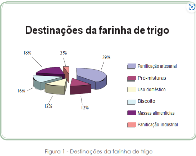 1.1 O trigo O trigo (Triticum sativum) é uma gramínea originada do sudoeste da Ásia. No Brasil, as primeiras sementes de trigo foram trazidas por Martim Afonso, em 1534, para a capitania de São Vicente. O trigo é o cereal mais consumido pelo homem e no Brasil tem procedência nacional e importada. De acordo com a USDA (United States Departament of Agriculture), o consumo atual está em 10,9 milhões de toneladas de trigo/ano (tabela 2 – Consumo mundial de trigo). Os estados brasileiros de maior produção são Paraná, Rio Grande do Sul, Mato Grosso do Sul e São Paulo. As principais importações provêm dos Estados Unidos, Argentina, Canadá e Alemanha. É transportado para o Brasil por navios; chegando aos portos, o trigo é descarregado e seu transporte é feito por carretas ou trens. Atualmente, de acordo com a ABITRIGO (Associação Brasileira da Indústria do Trigo), existem 207 moinhos responsáveis pela distribuição de toda a farinha de trigo comercializada no Brasil (tabela 1 da aula 1.4 – Moinhos em atividade por região). Essa quantidade, que atualmente corresponde a 53 kg de consumo per capita de farinha de trigo, é distribuída da seguinte forma no mercado: De acordo com a USDA, a produção mundial de trigo para a safra 2009/10 ficou em torno de 650 milhões de toneladas (anexo C – Produção mundial de trigo). O maior produtor mundial do grão é União Europeia, com 135,9 milhões de toneladas. No Brasil, a produção é de aproximadamente 6 milhões de toneladas. Classificação do trigo O trigo possui 30 tipos geneticamente diferenciados, mas somente três são produzidos comercialmente: o Aestivum vulgaris, o Turgidum durum e o Compactum. O Aestivum vulgaris é responsável por boa parte da produção mundial de trigo por ser adequado à panificação, o durum é utilizado na produção de macarrão e outras massas e o Compactum é um trigo de baixo teor de glúten, produzido em pequena proporção, e é mais indicado para fabricação de biscoitos. A Associação Brasileira da Indústria do Trigo (ABITRIGO) dá outros nomes para esses tipos de trigos, baseados na instrução normativa nº 7 (está sendo revogada pela Portaria 91/2010 – Anexo D), do Ministério da Agricultura, Pecuária e Abastecimento, e classifica como: •Trigo Brando - usado para fabricação de bolos, bolachas (biscoitos doces), produtos de confeitaria, pizzas e massas do tipo caseira fresca. •Trigo tipo pão - fabricação de pães tipo francês ou d’água, massas alimentícias secas, folhados e uso doméstico. •Trigo Melhorador - usado em panificação massas alimentícias, biscoito tipo crackers e pães industriais (pão de forma e pão para hambúrguer). •Trigo Durum - utilizada para massas alimentícias secas.Trigo para outros usos destinados para alimentação animal ou outro uso industrial. Estrutura do grão de trigo O grão de trigo tem formato oval, extremidades arredondadas, onde encontramos o germe, e na outra, cabelos finos; possui tamanhos e cor variáveis. Perceba que na região ventral observa-se uma reentrância, conhecida como “crease”. É esse sulco que dificulta a limpeza e a moagem do grão. Agora você vai conhecer as três partes destacadas da figura e que compõem o grão. •Pericarpo Consiste na nomenclatura da parte externa (casca). Recobre toda semente; é formado por 6 camadas (epiderme, hipoderme, células finas, células intermediárias, células cruzadas e células tubulares); representa 5% do peso do grão e é rico em pentosanas, celulose e cinzas. •Endosperma Corresponde a aproximadamente 82% do grão. É composto de amido, mas a parte mais externa – subaleurona – contém mais proteína. •Germe O germe corresponde a 3% do peso do grão. É rico em proteína, lipídios, açúcares redutores e cinzas. •Semente Formada pelo endosperma e o germe, que são recobertos por 3 camadas: •testa (pigmentos que dão cor ao grão); •camada hialina; •aleurona (7% do grão), que é rica em cinza (fósforo ,fitato), proteína, lipídios, vitaminas (niacina,tiamina,riboflavina) e enzimas. Composição média do grão de trigo: Na tabela abaixo, é apresentada a composição média do grão e da farinha. Curiosidades Você sabe qual o consumo mundial de trigo? Para saber mais sobre este assunto, confira os dados da tabela abaixo. 1.2 Moagem do trigo A farinha de trigo que conhecemos é o principal ingrediente dos alimentos fabricados com o trigo. Ela é obtida através da moagem do grão de trigo, cujo objetivo é separar o endosperma para que ele possa ser moído e transformado em farinha sem o germe e o farelo, os quais são comercializados separadamente. Estágios da moagem do trigo A moagem do trigo é dividida em estágios. A divisão dessas etapas se constitui desde a chegada do grão até a sua embalagem, formando assim a moagem do trigo. Aqui estão os estágios que serão estudados um a um logo a seguir. Descrição da imagem: fluxograma que mostra as etapas da moagem do trigo: Descarga do trigo (porto), Recepção do trigo, ensilagem, 1ª limpeza, Umidificação/descanso, 2ª limpeza, Separação magnética, moagem, peneriamento, Adição da farinha, Pesagem transporte pneumático, Ensilagem, Peneiramento de segurança, ensacamento, transporte distribuição. Recepção do trigo Chegando ao moinho, o trigo passa pelo controle de qualidade, onde são realizados testes do trigo a partir da retirada de várias amostras antes de descarregar o trigo de todas as carretas no moinho. Por que esses testes de controle de qualidade são importantes antes do descarregamento? Para: •garantir que o trigo seja de qualidade; •assegurar que não esteja contaminado por corpos estranhos ou infestados; •garantir que será armazenado com trigos de qualidade semelhante. Testes de qualidade do trigo Esses testes variam de acordo com o tipo de moinho e da farinha a ser produzida. A seguir, você verá os oito passos que, em seu resultado, dizem 