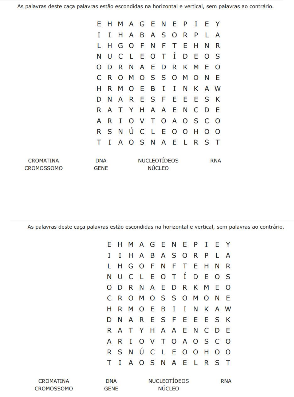 Nome: CAÇA PALAVRAS – MATERIAL GENÉTICO Nome: CAÇA PALAVRAS – MATERIAL GENÉTICO