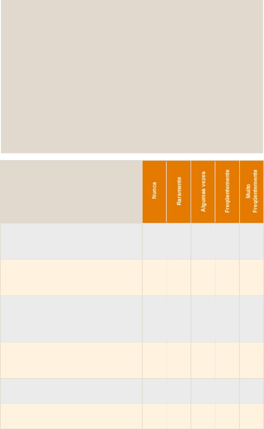 O questionário abaixo é denominado ASRS-18 e foi desenvolvido por pesquisadores em colaboração com a Organização Mundial de Saúde. Esta é a versão validada no Brasil. A referência é: Mattos P, Segenreich D, Saboya E, Louzã M, Dias G, Romano M. Adaptação Transcultural para o Português da Escala Adult Self-Report Scale (ASRS- 18, versão1.1) para avaliação de sintomas do Transtorno de Déficit de Atenção / Hiperatividade (TDAH) em adultos. Revista Brasileira de Psiquiatria (in press). IMPORTANTE: Lembre-se que o diagnóstico definitivo só pode ser fornecido por um profissional. Por favor, responda as perguntas abaixo se avaliando de acordo com os critérios do lado direito da página. Após responder cada uma das perguntas, circule o número que corresponde a como você se sentiu e se comportou nos últimos seis meses. 1. Com que freqüência você comete erros por falta de atenção quando tem de trabalhar num projeto chato ou difícil? 2. Com que freqüência você tem dificuldade para manter a atenção quando está fazendo um trabalho chato ou repetitivo? 3. Com que freqüência você tem dificuldade para se concentrar no que as pessoas dizem, mesmo quando elas estão falando diretamente com você? 4. Com que freqüência você deixa um projeto pela metade depois de já ter feito as partes mais difíceis? 5. Com que freqüência você tem dificuldade para fazer um trabalho que exige organização? 6. Quando você precisa fazer algo que exige muita concentração, com que freqüência você evita ou adia o início? 7. Com que freqüência você coloca as coisas fora do lugar ou tem de dificuldade de encontrar as coisas em casa ou no trabalho? 8. Com que freqüência você se distrai com atividades ou barulho a sua volta? 9. Com que freqüência você tem dificuldade para lembrar de compromissos ou obrigações? Parte A 1. Com que freqüência você fica se mexendo na cadeira ou balançando as mãos ou os pés quando precisa ficar sentado (a) por muito tempo? 2. Com que freqüência você se levanta da cadeira em reuniões ou em outras situações onde deveria ficar sentado (a)? 3. Com que freqüência você se sente inquieto (a) ou agitado (a)? 4. Com que freqüência você tem dificuldade para sossegar e relaxar quando tem tempo livre para você? 5. Com que freqüência você se sente ativo (a) demais e necessitando fazer coisas, como se estivesse “com um motor ligado”? 6. Com que freqüência você se pega falando demais em situações sociais? 7. Quando você está conversando, com que freqüência você se pega terminando as frases das pessoas antes delas? 8. Com que freqüência você tem dificuldade para esperar nas situações onde cada um tem a sua vez? 9. Com que freqüência você interrompe os outros quando eles estão ocupados? Parte B Como avaliar: Se os itens de desatenção da parte A (1 a 9) E/OU os itens de hiperatividade-impulsividade da parte B (1 a 9) têm várias respostas marcadas como FREQUENTEMENTE ou MUITO FREQUENTEMENTE existe chances de ser portador de TDAH (pelo menos 4 em cada uma das partes). O questionário ASRS-18 é útil para avaliar apenas o primeiro dos critérios (critério A) para se fazer o diagnóstico. Existem outros critérios que também são necessários. IMPORTANTE: Não se pode fazer o diagnóstico de TDAH apenas com os sintomas descritos na tabela! Veja abaixo os demais critérios. CRITÉRIO A: Sintomas (vistos na tabela acima) CRITÉRIO B: Alguns desses sintomas devem estar presentes desde precocemente (antes dos 7 ou 12 anos). CRITÉRIO C: Existem problemas causados pelos sintomas acima em pelo menos 2 contextos diferentes (por ex., no trabalho, na vida social, na faculdade e no relacionamento conjugal ou familiar). CRITÉRIO D: Há problemas evidentes por conta dos sintomas. CRITÉRIO E: Se existe um outro problema (tal como depressão, deficiência mental, psicose, etc.), os sintomas não podem ser atribuídos exclusivamente a ele. - See more at: http://www.tdah.org.br/br/sobre-tdah/diagnostico- adultos.html#sthash.6SE0yHlR.dpuf