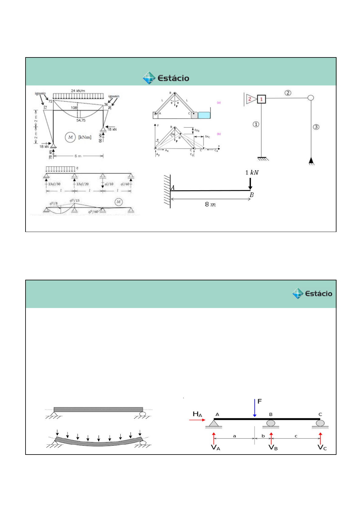 03/03/2023 TEORIA DAS ESTRUTRAS II Prof. Nilton Batista AULA 01 TEORIA DAS ESTRUTURAS II Apresentação da Disciplina Ementa - Deformações em estruturas isostáticas; - Princípio dos Trabalhos Virtuais; - Método da Carga Unitária; - Método das Forças - Estruturas hiperestáticas; - Método dos Deslocamentos (Método da Deformação) Estruturas hiperestáticas; - Processo de Cross (Método da Distribuição de Momentos) - Estruturas hiperestáticas; - Método Matricial – Estruturas hiperestáticas 03/03/2023 TEORIA DAS ESTRUTURAS II Apresentação da Disciplina Objetivos Gerais - Estudar a distribuição de esforços em estruturas hiperestáticas submetidas a carregamentos; - As variações de temperatura e recalque de apoio. Com isso entender o procedimento manual de cálculo de uma estrutura hiperestática ( métodos clássicos ), proporcionando o desenvolvimento para um sentimento de comportamento estrutural para a análise de resultados fornecidos por sistema computacional. TEORIA DAS ESTRUTURAS II Apresentação da Disciplina Objetivos Específicos - Conhecer uma estrutura hiperestática, seu grau de hiperestaticidade e com isso determinar as reações de apoios e seus desenhar seus diagramas de esforços internos. Esses conhecimentos são fundamentais para as disciplinas de Estruturas de Concreto I, II, III, Fundações e Contenções, Estruturas de Aço , Estruturas de Madeira e Estruturas de Pontes, quando o aluno aprenderá dimensionar elementos estruturais atendendo aos critérios para esforços e deformações estabelecidos pelas normas técnicas. 03/03/2023 TEORIA DAS ESTRUTURAS II Apresentação da Disciplina Conteúdos Unidade 1 • Introdução à Disciplina; • Deformações em estruturas isostáticas; • Princípio dos Trabalhos Virtuais; • Método da Carga Unitária; TEORIA DAS ESTRUTURAS II Apresentação da Disciplina Conteúdos Unidade 2 • Determinação do grau hiperestático interno, externo e total; •.Apresentação do método clássico para análise de estruturas hiperestáticas, o Método das Forças; •.Cálculo de reações de apoio e traçado dos diagramas de esforços para estruturas submeti das a cargas; recalques de apoio e variações de temperatura. 03/03/2023 TEORIA DAS ESTRUTURAS II Apresentação da Disciplina Conteúdos Unidade 3 • Apresentação do método clássico para análise de estruturas hiperestáticas, o Método dos deslocamentos; •. Deslocabilidades internas (placas) e externas (apoio adicional); •.Cálculo das reações de apoio e traçado dos diagramas solicitantes internos baseados nas ações de extremos calculadas. TEORIA DAS ESTRUTURAS II Apresentação da Disciplina Conteúdos Unidade 4 •Apresentação do método clássico para análise de estruturas hiperestáticas, o Processo de Cross (Método da Distribuição de Momentos); •. Deslocabilidades internas (placas) e externas (apoio adicional); •. Cálculo do Coeficiente de distribuição; •.Cálculo das reações de apoio e traçado dos diagramas solicitantes internos baseados nas ações de extremos calculadas. 03/03/2023 TEORIA DAS ESTRUTURAS II Apresentação da Disciplina Conteúdos Unidade 5 •. Apresentação do Método Matricial para análise de estruturas hiperestáticas; • Cálculo de uma matriz dos deslocamentos e nodais; • Introdução aos Métodos de Rigidez e Flexibilidade; •.Calcular reação de apoio a uma estrutura hiperestática aplicando a matriz de flexibilidade e rigidez; •. Matriz de Rigidez Direta; •. Coordenada Local e Coordenada Global. TEORIA DAS ESTRUTURAS II Apresentação da Disciplina Procedimentos de Avaliação As avaliações serão presenciais e compreenderão três etapas: Avaliação 1 (AV1), Avaliação 2 (AV2) e Avaliação 3 (AV3). As avaliações poderão ser realizadas por meio de provas teóricas, provas práticas, e realização projetos ou outros trabalhos, representando atividades acadêmicas de ensino, de acordo com as especificidades de cada disciplina. Para aprovação na disciplina o aluno deverá: 1. Atingir resultado igual ou superior a 6,0; 2. Obter grau igual ou superior a 4,0 em, pelo menos, duas das três avaliações; 3. Frequentar, no mínimo, 75% das aulas ministradas. 03/03/2023 TEORIA DAS ESTRUTURAS II Apresentação da Disciplina Bibliografia EDMUNDO, Douglas Andrini ... [et al.]. Teoria das estruturas. Porto Alegre: Sagah, 2018. Disponível em: https://integrada.minhabiblioteca.com.br /#/books/9788595023550/cfi/0!/4/4@0.00:0.00 TEORIA DAS ESTRUTURAS II Apresentação da Disciplina Bibliografia HIBBELER, R. C. Análise das Estruturas (Biblioteca Virtual). São Paulo: Pearson, 2013. Disponível em: https://plataforma.bvirtual.com.br/Acervo/ Publicacao/3819 03/03/2023 TEORIA DAS ESTRUTURAS II Apresentação da Disciplina Bibliografia MCCORMAC, J. C. Análise Estrutural: Usando métodos clássicos e métodos matriciais. 4. ed. Rio de Janeiro: Livros Técnicos e Científicos, 2009 Disponível em: https://integrada.minhabiblioteca.com.br/#/ books/978852162496 7/cfi/0!/4/2@100:0.00 TEORIA DAS ESTRUTURAS II Bibliografia Complementar 03/03/2023 TEORIA DAS ESTRUTURAS II Apresentação da Disciplina a realizar o download do programa Ftoll e respectivo manual na página https://web.tecgraf.pucrio.br/ftool/. TEORIA DAS ESTRUTURAS II PRÉDIOS MAIS ALTOS DO BRASIL: DESAFIOS DESSAS CONSTRUÇÕES Carregamentos de vento causam efeitos importantes na estrutura desse tipo de edificação Tour Geneve – João Pessoa – PB Altura: 182 m – 51 andares Conclusão: 2018 Construtora: TWS empreendimentos Kingdom Park – Goiânia Altura: 181 m – 52 andares Conclusão: 2020 Construtora: Sim Engenharia Edifícios altos são aqueles em que os carregamentos de vento causam efeitos importantes na estrutura. Porém, nessa análise, a altura do edifício não é o único fator analisado. “As dimensões em planta dos andares também têm grande importância. Prof. Marcos Monteiro, do curso de Engenharia Civil 