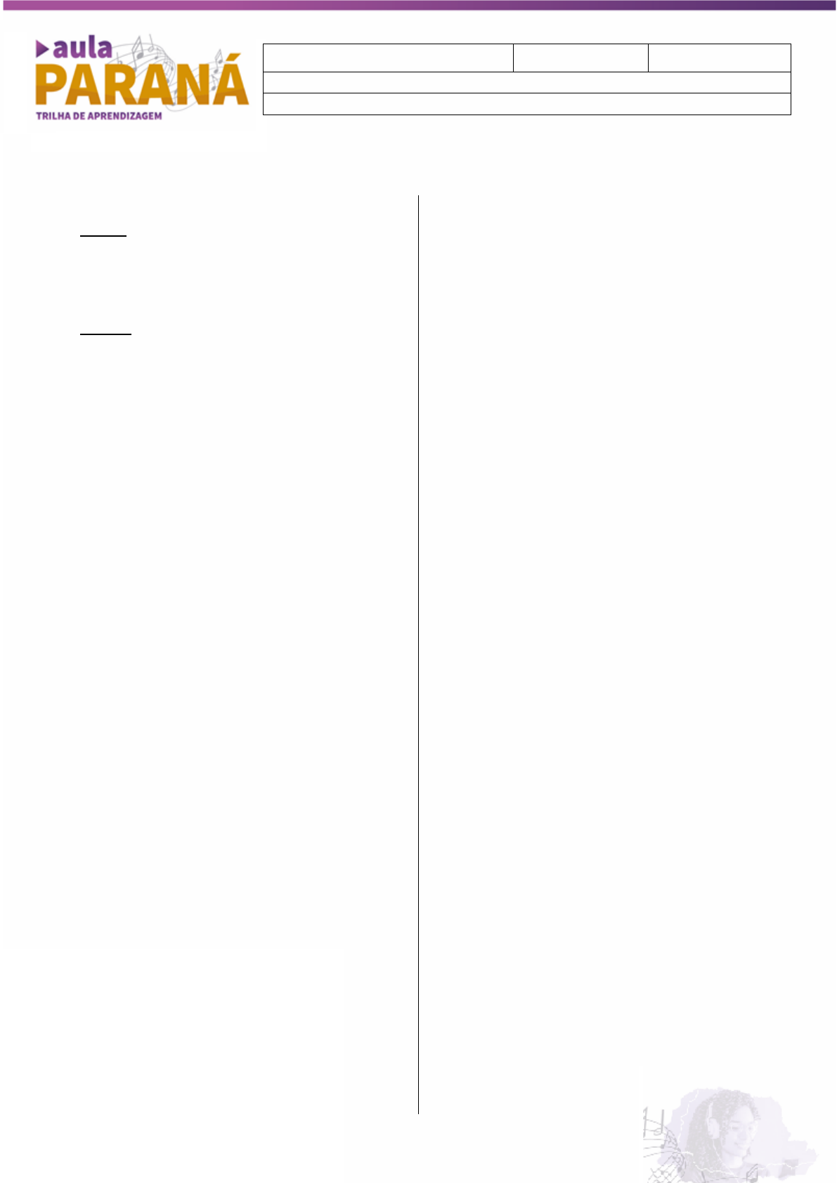 Olá, estudante! Para ajudar em seus estudos, você está recebendo o resumo dos conteúdos das aulas N1 e N2. Então, nas trilhas de hoje vamos retomar os principais temas de História que você viu no 6º ano. Bons estudos! GRÉCIA • Atenas: fundada pelos jônios, por volta do século X a.C. A região, com bons portos naturais, favoreceu a pesca, a navegação e o comércio marítimo. Sua forma de governo era a Aristocracia, porém, depois tornou- se uma Democracia. Na educação, estava voltada à cultura e às aptidões dos meninos. • Esparta: fundada pelos dórios, situava-se entre altas montanhas e não tinha saída para o mar. Sua forma de governo era a Oligarquia. Na educação, estava voltada ao militarismo. ROMA Roma possui duas versões sobre o seu surgimento: a lendária e a histórica. Segundo a mitologia romana, na versão lendária, dois irmãos gêmeos, Rômulo e Remo, filhos do deus Ares, foram jogados no rio Tibre, salvos e amamentados por uma loba. Ao crescerem, Rômulo fundou Roma e se tornou o seu primeiro rei. A versão histórica demonstra que, por volta de 600 a.C, os etruscos se estabeleceram em Roma como comerciantes e aos poucos ganharam poder até conquistarem o governo da cidade. A história política de Roma pode ser dividida em três períodos distintos: Monarquia (753 a.C. – 509 a.C.), República (509 a.C. – 27 a.C.) e Império (27 a.C. – 476). Durante a Monarquia, a sociedade romana estava dividida em: • Patrícios: nobres romanos, donos de terras e os únicos a possuir direitos políticos. • Plebeus: sem direito a participar das decisões políticas e podendo ser escravizados por dívidas, constituíam a maioria da população. • Clientes: servidores ou protegidos de um patrício; quanto mais clientes um patrício possuísse, maior o seu prestígio social e político. • Escravizados: prisioneiros de guerra ou pessoas que não conseguiam saldar suas dívidas. Na política, O rei era a maior autoridade, mas governava em conjunto com o Senado (chefes das principais famílias patrícias) e a Assembleia (soldados com até 45 anos). Quando um rei morria, o Senado escolhia seu sucessor e a Assembleia se manifestava contra ou a favor da escolha. Em 509 a.C., os patrícios, que dominavam o Senado e não se conformavam com o domínio etrusco sobre Roma, derrubaram o rei Tarquínio, o Soberbo, e fundaram a República. Na República, os patrícios passaram a controlar o poder, possuindo os mais altos cargos do governo e a República Romana passou a ser governada por magistrados, Senado e Assembleias. Durante o império, Roma adquiriu certa estabilidade política, econômica e social, a partir do reforço nas fronteiras, da redução do expansionismo militar, da construção de estradas e obras públicas e a reorganização da cobrança de impostos. Esse período de relativa tranquilidade ficou conhecido como Pax Romana. Em sua extensão máxima, o Império Romano ia desde a Península Ibérica (oeste) até a Mesopotâmia (leste) e desde a Britânia (norte) até o Egito (sul). FEUDALISMO As principais características do feudalismo eram: relações baseadas na dependência e na fidelidade; poder político descentralizado (dividido entre diversos senhores e não concentrado no rei); predomínio do cristianismo; produção econômica voltada para a subsistência. O feudo era, muitas vezes, uma grande extensão de terra, mas podia ser também um direito de cobrar impostos, receber um cargo ou uma quantia paga em dinheiro, gado ou cereais. Aquele que doava um feudo era chamado suserano e o que recebia era denominado vassalo. Assim se um duque doava um feudo a um conde, tornava-se suserano do conde e este, seu vassalo. No ano 1000 (século X), a sociedade da Europa ocidental era formada basicamente por três ordens ou grupos sociais: clérigos (os que oram); nobres (os que guerreiam); trabalhadores (que, com seu serviço, sustentavam a todos). A economia feudal baseava-se na agricultura e no pastoreio. A unidade de produção era o senhorio. Suas terras eram divididas em três grandes áreas: o manso senhorial (terras onde tudo o que se produzia era do senhor), o manso servil (terras que os camponeses usavam para sobreviver e cumprir as obrigações para com o senhor) e as terras comunais (floresta e pastagens, usadas por todos os habitantes do feudo). Vamos agora memorizar os conteúdos com as seguintes atividades: 1. Os patrícios passaram a controlar o poder, possuindo os mais altos cargos do governo e a República Romana passou a ser governada por: a) Magistrados, Senado e Assembleias. b) Burgueses, reis e Senhores Feudais. c) Magistrados e Parlamento. d) Senado e Soldados. 2. “Aquele que doava um feudo era chamado _____________ e o que recebia era denominado __________”. Assinale a alternativa que completa corretamente a frase anterior. a) Suserano e Vassalo. b) Vassalo e Suserano. c) Rei e Servo. d) Rei e Senhor Feudal. HISTÓRIA 7O Ano SEMANA 1 ESCOLA/COLÉGIO: ESTUDANTE:
