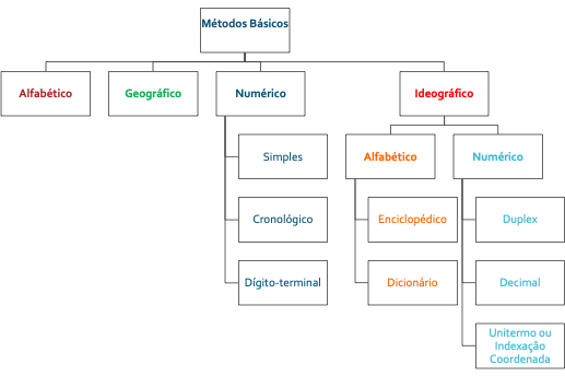 Métodos Básicos Alfabético Geográfico Numérico Simples Alfabético Numérico Enciclopédico Duplex Digito-terminal Decimal Unitermo ou Indexação Coordenada