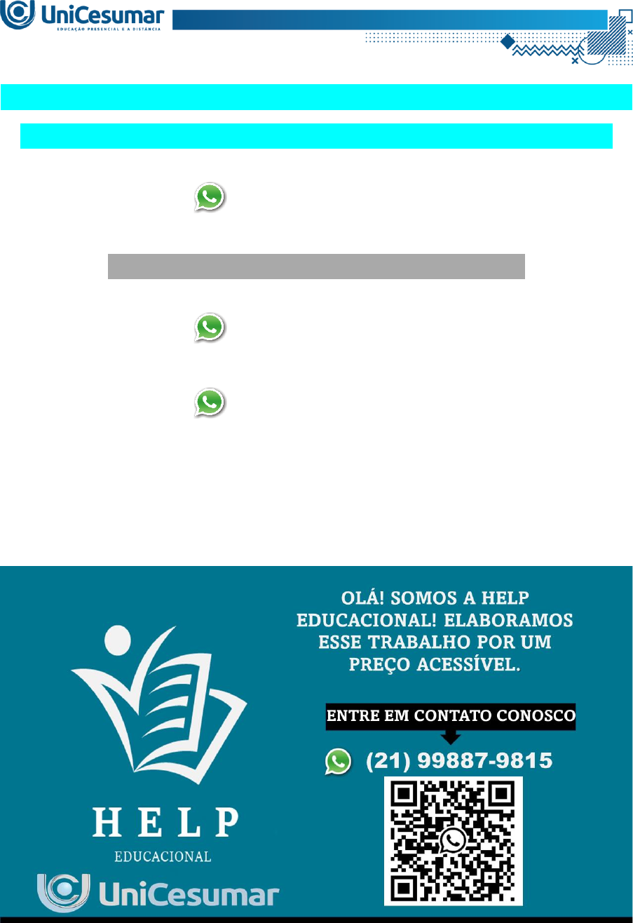 ATIVIDADE 1 – AGRO - NOÇÕES DE GESTÃO FINANCEIRA E COMÉRCIO EXTERIOR NO AGRONEGÓCIO - 53_2024 (21) 99887-9815 ASSESSORIA NOS SEUS TRABALHOS (21) 99887-9815 (21) 99887-9815 A capitalização consiste no cálculo de juros e na incorporação desses juros ao capital inicial aplicado ou emprestado. Existem duas formas distintas de capitalizar um capital: a simples e a composta. Os regimes de juros simples e composto diferem no modo como os juros são calculados e incorporados ao principal e isso tem implicações importantes nas formas de cálculo. Nos regimes de capitalização simples e composto, tanto o prazo da operação como a taxa de juros devem necessariamente estar expressos na mesma unidade de tempo. Por exemplo, admita que um fundo de poupança esteja oferecendo juros de 2% ao mês e os rendimentos sejam creditados mensalmente. Nesse caso, o prazo a que se refere a taxa e o período de capitalização são coincidentes, atendendo à regra básica. Contudo, muitas ve- zes nos deparamos com situações nas quais a taxa de juros apresentada é diferente do pe- ríodo de capitalização. Por exemplo, taxa de juros de 6% a.a. aplicada durante seis meses Nesse caso, teremos juros anuais, mas a aplicação será apenas de seis meses. Quando não há coincidência nos prazos, devemos necessariamente realizar a conversão. Fonte: BOECHAT, A. M. da F.; LOPES, J. C. de J.; ALVES, Y. B. Noções de gestão finan- ceira e comércio exterior no agronegócio. Maringá - PR.: UniCesumar, 2020 De acordo com as informações apresentadas, apresente a diferença entre a equivalência de juros no regime simples e no regime composto. Exemplifique com a conversão de uma taxa de juros de 1,5% a.m. para uma taxa equivalente ao ano. OLÁ! SOMOS A HELP EDUCACIONAL! ELABORAMOS ESSE TRABALHO POR UM PREÇO ACESSÍVEL. ENTRE EM CONTATO CONOSCO (21) 99887-9815