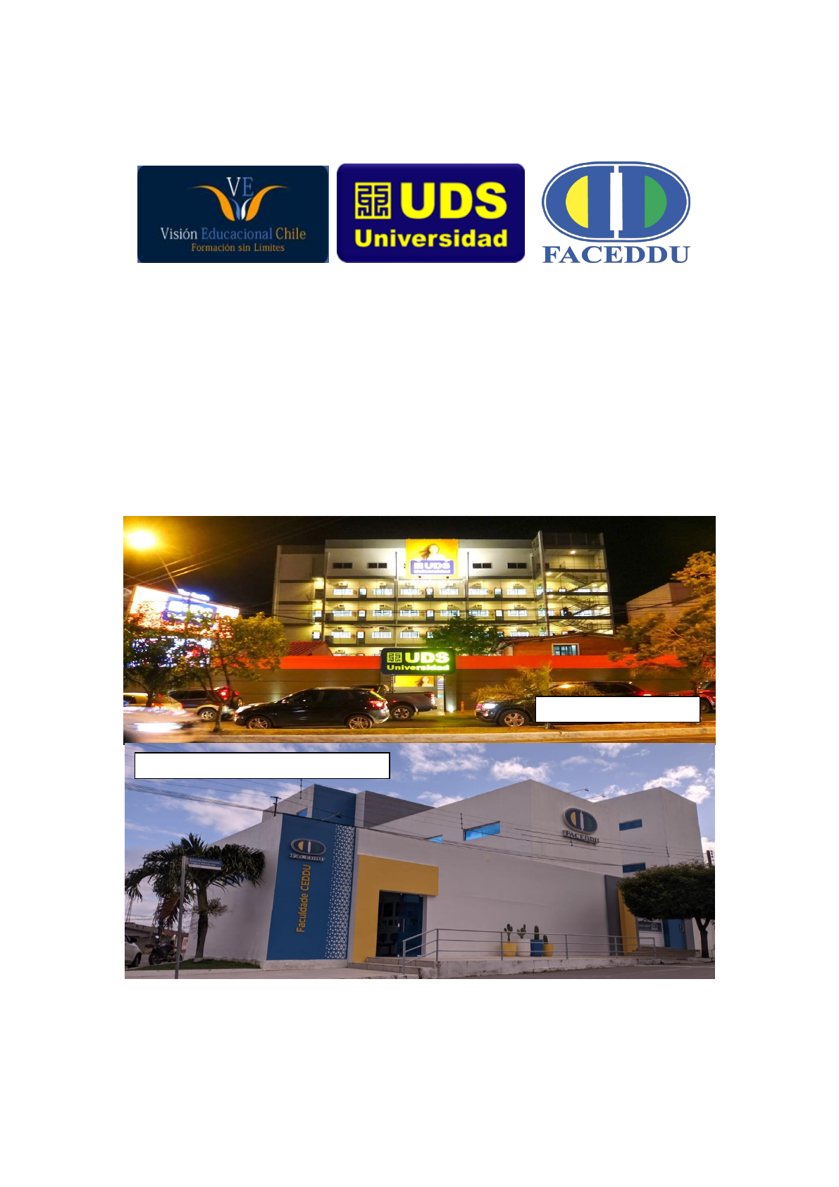 . VISION EDUCACIONAL CHILE UNIVERSIDAD DE DESARROLLO SUSTENTABLE/UDS FACULDADE CEDDU – FACEDDU PROGRAMA DE PÓS-GRADUAÇÃO MESTRADOS - DOUTORADOS - POSDOC EDUCAÇÃO – ADMINISTRAÇÃO – SAÚDE – DIREITO – TEOLOGIA - PSICOLOGIA UDS – Assunção/PY FACEDDU – Cacimbinhas/AL A Equipe Diretiva do Programa de Pós-graduação • Prof. Dr. Leopoldo Briones Salazar Diretor Geral da Pós-graduação E-mail: leopoldobriones@gmail.com WhatsApp: +595 982 648 861 • Prof. Dr. Luis Ayala Silvera Coordenador Acadêmico E-mail: es.de.luis@gmail.com WhatsApp: +595 981 712987 • Lic. Marisol Caballero Secretaria Administrativa E-mail: marisolauxcaballero@gmail.com WhatsApp: +595 981 713 614 • Prof. Dr. Euds Antônio Tenório Bulhões Diretor Administrativo – FACEDDU E-mail: eudstenoriobulhoes@hotmail.com WhatsApp: (82) 99627-7885 • Prof. Dr. Emanuel Tenório de Bulhões Diretor Pedagógico – FACEDDU E-mail: profebulhoes@hotmail.com WhatsApp: (82) 99982-7777 • Prof. Dr. Sóstenes Ericson (PdD) Orientador de pesquisa – UFAL PORTARIA NACIONAL UNIVERSIDADE UDS, Py A UNIVERSIDAD DE DESARROLLO SUSTENTABLE, de Assunção/Paraguai www.uds.edu.py Portaria Nacional nº 3334/07/PY. Endereço Avda. Mariscal López 2929, Assunção. OBJETIVO DOS CURSOS CURSOS DE MESTRADO CURSOS DE DOUTORADO Os Cursos de Mestrado procuram formar Mestres com alto nível de competências e autonomia profissional em processos de gestão, de pesquisa, gerando um espaço de reflexão, discussão e aprendizagem, fortalecendo a análise crítica do saber no campo específico, das práticas e estabelecendo propostas para atender os desafios atuais. Os Curso de Doutorado procuram formar Doutores com alto nível de competências e autonomia profissional em processos de liderança organizacional e de pesquisa, gerando um espaço de reflexão, discussão e análise crítica do seu campo profissional, seus discursos e suas práticas e possibilitando a produção de novos conhecimentos e inovações. Os Cursos de POSDOC procuram outorgar uma Certificação Internacional aos Doutores com alto nível de competências e autonomia profissional em processos de liderança organizacional e de pesquisa, reconhecendo sua própria experiência e trajetória académica e investigativa. RECONHECIMENTO DO DIPLOMA Em alguns casos, o estudante não terá necessidade de reconhecimento do Diploma dos cursos stricto sensu de Mestrado e Doutorado entre países integrantes do Mercosul. Havendo necessidade de reconhecimento do Diploma o estudante solicita o reconhecimento em universidades brasileiras que possuam curso de pós-graduação na mesma área de conhecimento e em nível equivalente ou superior. OS DIPLOMAS EXPEDIDOS NO ESTRANGEIRO DE GRADUAÇÃO E PÓS-GRADUAÇÃO, DEVEM FAZER O RECONHECIMENTO E REVALIDAÇÃO CONSIDERANDO AS NORMAS E PROCEDIMENTOS GERAIS DE TRAMITAÇÃO DE PROCESSOS, SEGUNDO A RESOLUÇÃO CES/CNE nº 3, de 22/06/2016 E PORTARIA NORMATIVA Nº 22, DE 13 DE DEZEMBRO DE 2016, DO MINISTÉRIO DA EDUCAÇÃO. Uma Equipe do Programa integrada por Doutores do Brasil faz gestões de apoio para organizar a melhor apresentação dos documentos académicos e a apresentação da Dissertação ou Tese. Seguindo as indicações estabelecidas pela Resolução e Normativa brasileiras, a estratégia é trabalhar considerando todas as informações legais disponíveis. SUGESTÕES DE UNIVERSIDADES QUE FAZEM RECONHECIMENTO DE TÍTULOS Segue lista de Universidades com Resoluções sobre revalidação de diplomas, verificar se a Universidade escolhida tem um curso compatível com o curso feito no exterior. UNIVERSIDADE FEDERAL DE ALAGOAS UNIVERSIDADE FEDERAL DE RIO DE JANEIRO UNIVERSIDADE FEDERAL DE PARANÁ UNIVERSIDADE FEDERAL DE PERNAMBUCO UNIVERSIDADE ESTADUAL DE SANTA CATARINA UNIVERSIDADE FEDERAL DE UBERLÂNDIA UNIVERSIDADE DE UBERABA UNIVERSIDADE METROPOLITANA DE SAMTOS ENTRE OUTRAS. Segundo a Normativa e a Resolução, todas as Universidades do Brasil que tenham Cursos de Mestrado e Doutorado devem informar nos seus sites dos processos de Revalidação e possibilitar que os alunos possam dar entrada. PERFIL Os Cursos de Mestrado e Doutorado, com modalidade presencial em Assunção, na Sede Central da UDS, destinam-se a profissionais, pesquisadores e/ou pessoas que tenham especial interesse no seu desenvolvimento profissional ou acadêmico para atuar com maiores ferramentas, conhecimentos e um sentido ético no mundo público e privado. Os POSDOC são Cursos que funcionam com modalidade presencial, em Assunção na Sede Central da UDS, e destinam-se a Doutores que pretendem uma Certificação Internacional a sua própria trajetória acadêmica e investigativa na sua área de interesse. METODOLOGIA DO PROGRAMA Aulas e Seminários Presenciais Intensivos Aulas e Seminários presenciais em janeiro e julho Tutoria de Dissertação e Tese Atividades guiadas com Tutores desde o início do Curso Tese e Defesa em português Atividade feita na língua portuguesa Trabalhos com Normas ABNT Trabalhos e Tese com Normas ABNT Uso de Plataforma Moodle Com materiais e bibliotecas virtuais Uso de Vídeo Conferência Atividades permanentes de atenção para o desenvolvimento da Dissertação e Tese Trabalhos Científicos por Módulos Tutoria para publicações cientificas Análises de Casos Internacionais Oficinas para análise de Casos Comparados Avaliações múltiplas Elaboração de artigos, resolução de problemas, análises de casos, projetos, debates, trabalhos individuais e grupais. Leituras Guiadas de Textos Especializados Trabalho Tutorado pela Plataforma DIFERENCIAL E EXCELÊNCIA DOS CURSOS Diplomas Internacionais Diplomas do Paraguai da Universidad de Desarrollo Sustentable (UDS). Também temos Diplomas do Chile e Espanha dependendo do Curso. Professores 100% Doutores com Experiência Internacional Reconhecida Aulas com Excelência Acadêmica Qualificada Participação em Seminários Internacionais Seminários Certificados pela UDS como as