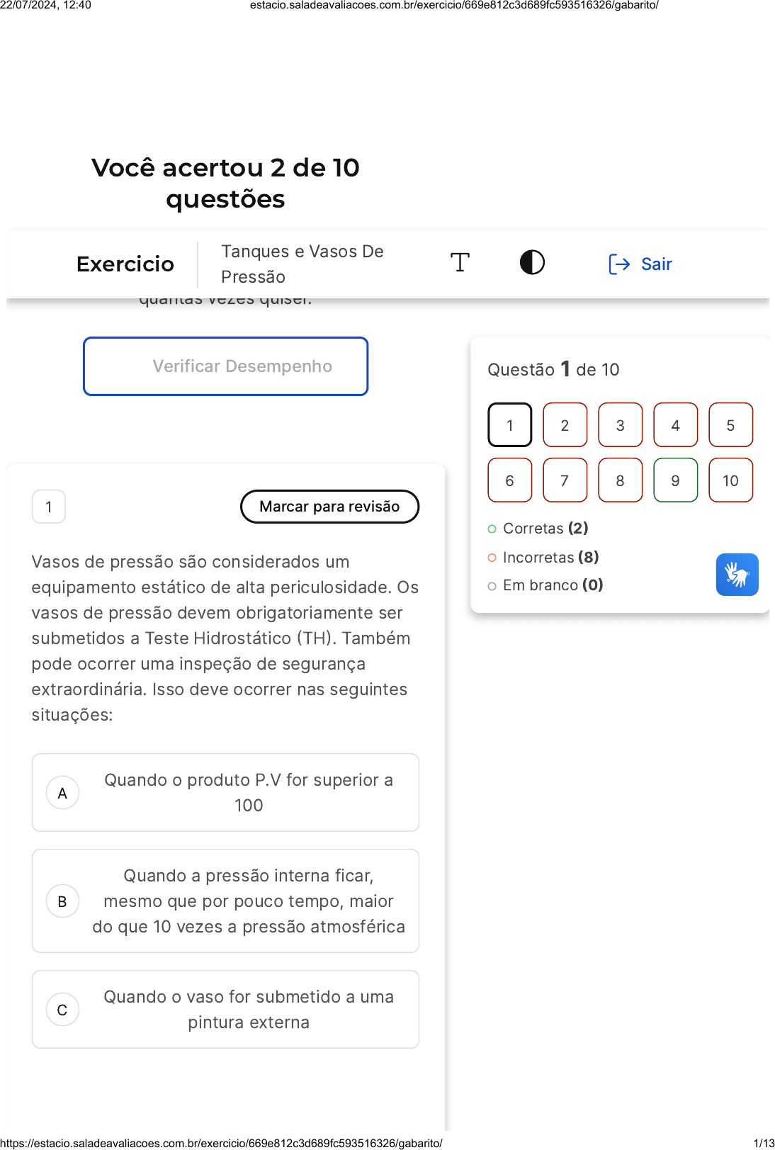 https://estacio.saladeavaliacoes.com.br/exercicio/669e812c3d689fc593516326/gabarito/ 1/13