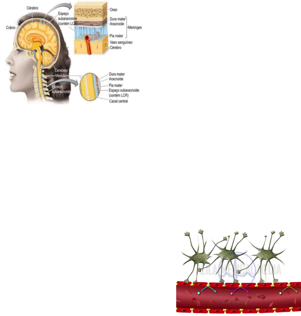Caso 4 Estrutura e função das meninges As meninges são três revestimentos de tecido conjuntivo que envolvem e protegem amedula espinal e o encéfalo, principais componentes do SNC. Dura-máter: amais superficial das três meninges, é uma camada espessa e resistente de tecido conjuntivo denso não modelado. É ricamente vascularizada e, ao contrário das outras, é inervada. → Por sermais espessa, pode ser chamada de paquimeninge. → Entre as duas membranas da dura-máter há o espaço (virtual) epidural/extradural. Aracnoide: é ameninge média, um revestimento avascular de tecido conjuntivo. → Entre a dura-máter e a aracnoide, existe um espaço (virtual) subdural estreito que contém liquido intersticial. Pia-máter: é ameninge mais interna, uma camada fina e delicada de tecido conjuntivo que é bem vascularizada. → Entre a aracnoide e a pia-máter há o espaço (real) subaracnóideo, que contém LCR (que tem função de amortecimento, protegendo o SNC de impactos). A aracnoide e a pia-máter constituem a leptomeninge (meninge fina). LCR: líquido semelhante ao sangue que oferece proteção física ao SNC (amortecendo contra impactos), ajuda a manter a pressão intracraniana, proporciona um ambiente químico adequado para a sinalização entre os neurônios, fornece nutrientes para as células nervosas e ajuda a transportar resíduos metabólicos para excreção. → Produzido pelo plexo coroide dos quatro ventrículos do encéfalo, são células com junções apertadas, mas que possuem poros mais abertos do que os da BHE, permitindo a passagem de, p. exemplo, componentes do sistema imunológico e fármacos. Barreira hematoencefálica As células endoteliais dos vasos sanguíneos do sistema nevoso ficam super coladas por junções oclusivas, fazendo com que essa barreira funcione de forma semipermeável altamente seletiva. Sua principal função é proteger o sistema nervoso, impedindo que, p. ex, microrganismos emoléculas potencialmente tóxicas entrem e causem danos às células nervosas, que são vitais para o nosso corpo, mas tambémmuito frágeis. Moléculas essenciais, como água e oxigênio, conseguem passar por essas células coladas. Outras conseguem passar através de difusão passiva, se forem pequenas, não-ionizadas e lipossolúveis. → Se umamolécula tóxica possuir essas características favoráveis, ela pode conseguir. Ex: álcool. → Moléculas grandes, ionizadas e hidrossolúveis que são essenciais para o tecido nervoso precisam de proteínas transportadoras ou receptores que ajudem elas a passarem. Ex: glicose. A barreira também não permite a entrada de anticorpos, células imunes e citocinas, por isso é chamado de sítio imunoprivilegiado. Existem partes do cérebro que são intencionalmentemais fáceis de serem acessadas, onde a BHE é menos rígida, principalmente aquelas que participam do sistema endócrino. Ex: hipófise. Meningite É o processo inflamatório das leptomeninges e do espaço subaracnóideo preenchido por LCR, geralmente causado por uma infecção. A inflamação se espalha rapidamente por causa da circulação de LCR em torno do encéfalo e da medula espinal. A sazonalidade da doença caracteriza- se pelo predomínio das meningites bacterianas no inverno e das meningites virais no verão. As crianças, na faixa etária de ummês aos cinco anos de idade, respondem por cerca de 90% dos casos. Contudo, a meningite bacteriana pode se apresentar em qualquer idade, incluindo os idosos. Classificação Meningite infecciosa: pode ser dividida em piogênica aguda/purulenta aguda (bacteriana), asséptica/linfocítica aguda (viral) e crônica (tuberculosa, por espiroqueta ou criptocócica). → Pode ser causada também por parasitas (Toxoplasma gondii, Taenia solium) e fungos. Meningite não infecciosa: pode ocorrer em resposta a um agente irritante não bacteriano introduzido no espaço subaracnóideo. Ex: fármacos, vacinas, etc. → Cada tipo é acompanhado por alterações característica do LCR. Fisiopatologia Os fatores responsáveis pela gravidade da meningite incluem fatores de virulência do patógeno e fatores do hospedeiro. Os fatores de risco associados à contração da doença são traumatismo craniano com fratura de base de crânio, otite média, sinusite oumastoidite, neurocirurgia, fístula dérmica, septicemia sistêmica ou imunossupressão. As vias de infecção são três: → Hematogênica: é a mais comum, ocorre através do sangue de áreas como orofaringe, pulmões ou pele até o SNC. → Acesso direto: pode ocorrer em procedimentos cirúrgicos sem a devida esterilização domaterial e em traumatismos cranianos. → Contiguidade: foco bacteriano em áreas próximas ao SNC, como em otites médias, mastoidites e sinusites. Meningite bacteriana Bactérias distintas causam a doença em diferentes faixas etárias: Streptococcus pneumoniae e Listeria monocytogenes (idosos), Escherichia coli e estreptococos do grupo B (recém-nascidos) e Neisseria meningitidis (adolescentes e adultos). → A Haemophilus influenzae foi durante décadas a principal causadora, principalmente em crianças, mas sua incidência diminuiu por causa da vacinação. As bactérias se replicam e são submetidas à lise no LCR, liberando endotoxinas ou fragmentos da parede celular. Essas substâncias promovem a liberação de mediadores inflamatórios, que aumentam a permeabilidade da BHE, permitindo o movimento de patógenos, neutrófilos e albumina através dos capilares até o LCR. À medida que os agentes patogênicos entram no espaço subaracnoide, causam uma inflamação que se caracteriza por um exsudato purulento. Pode haver tromboflebite (trombose venosa superficial) nas veias da ponte ou a destruição das arteríolas por conta da inflamação, provocando congestão vascular e infarto nos tecidos circundantes. Asmeninges se tornam espessas e formam aderências, que podem acabar invadindo os nervos cranianos, resultando em paralisia dos nerv